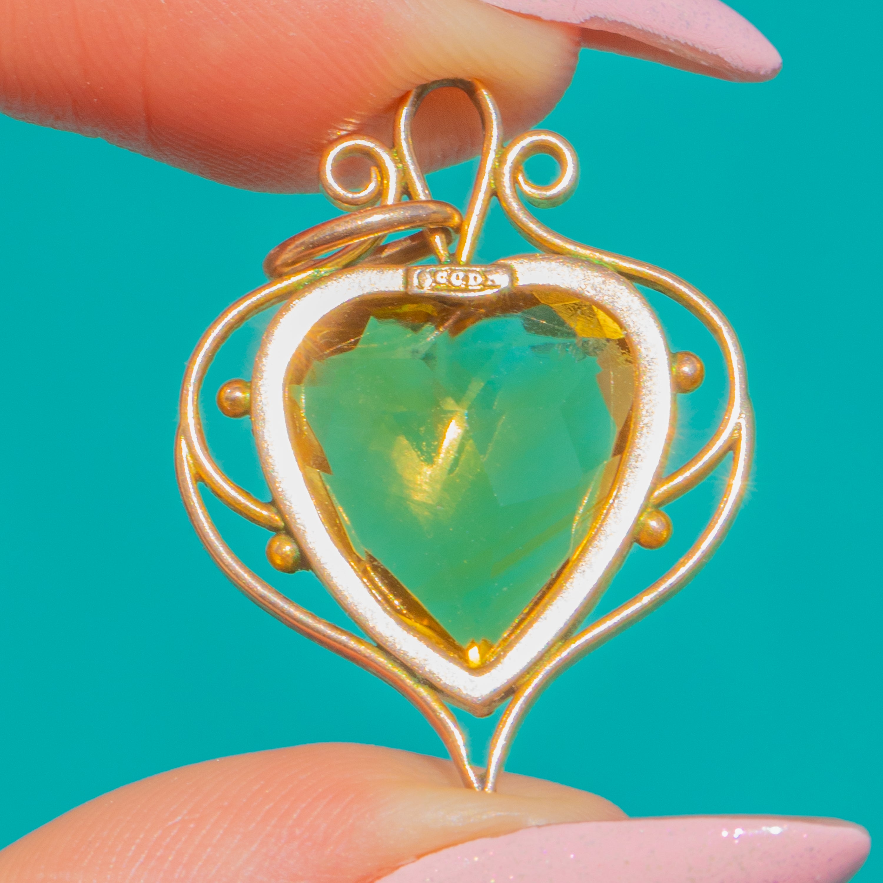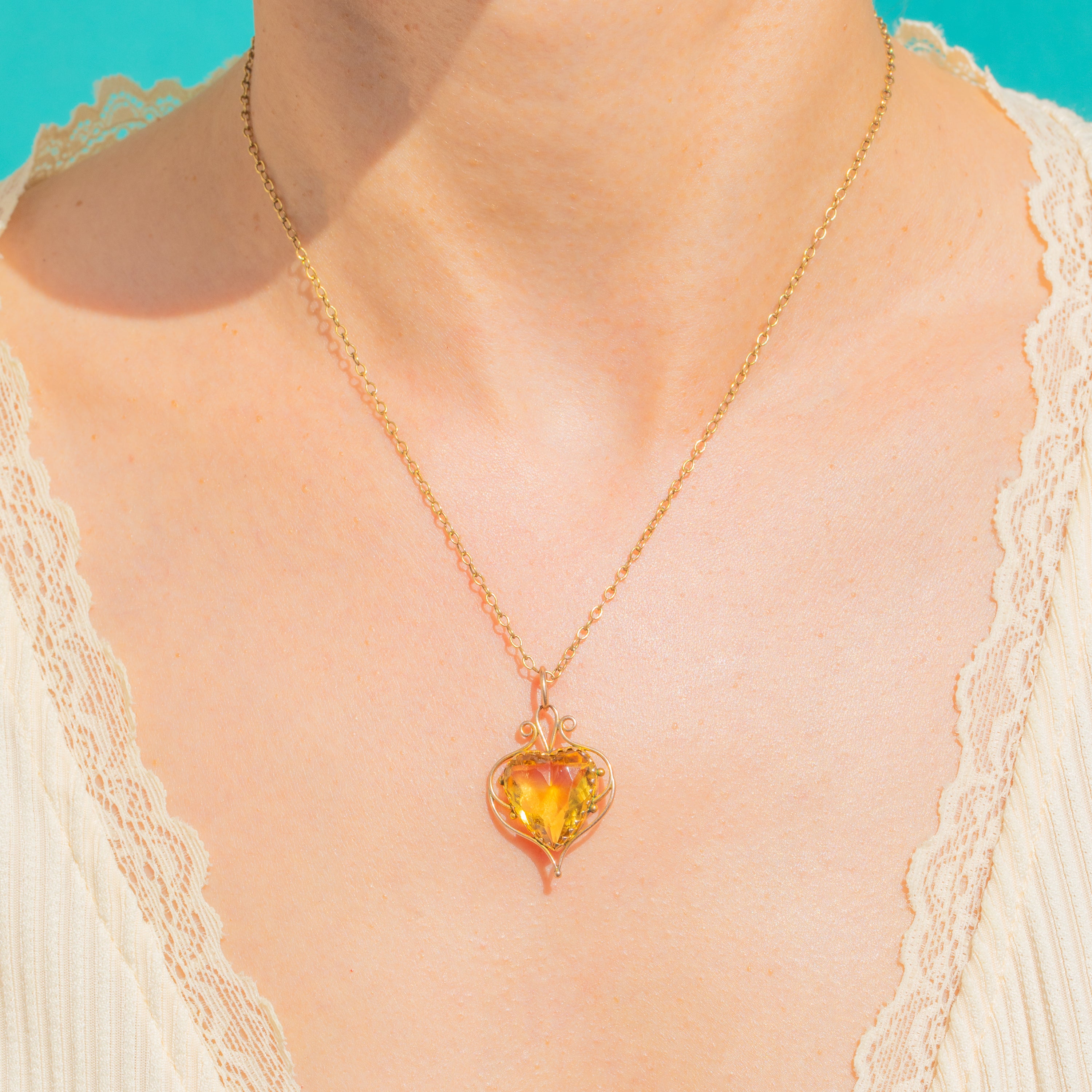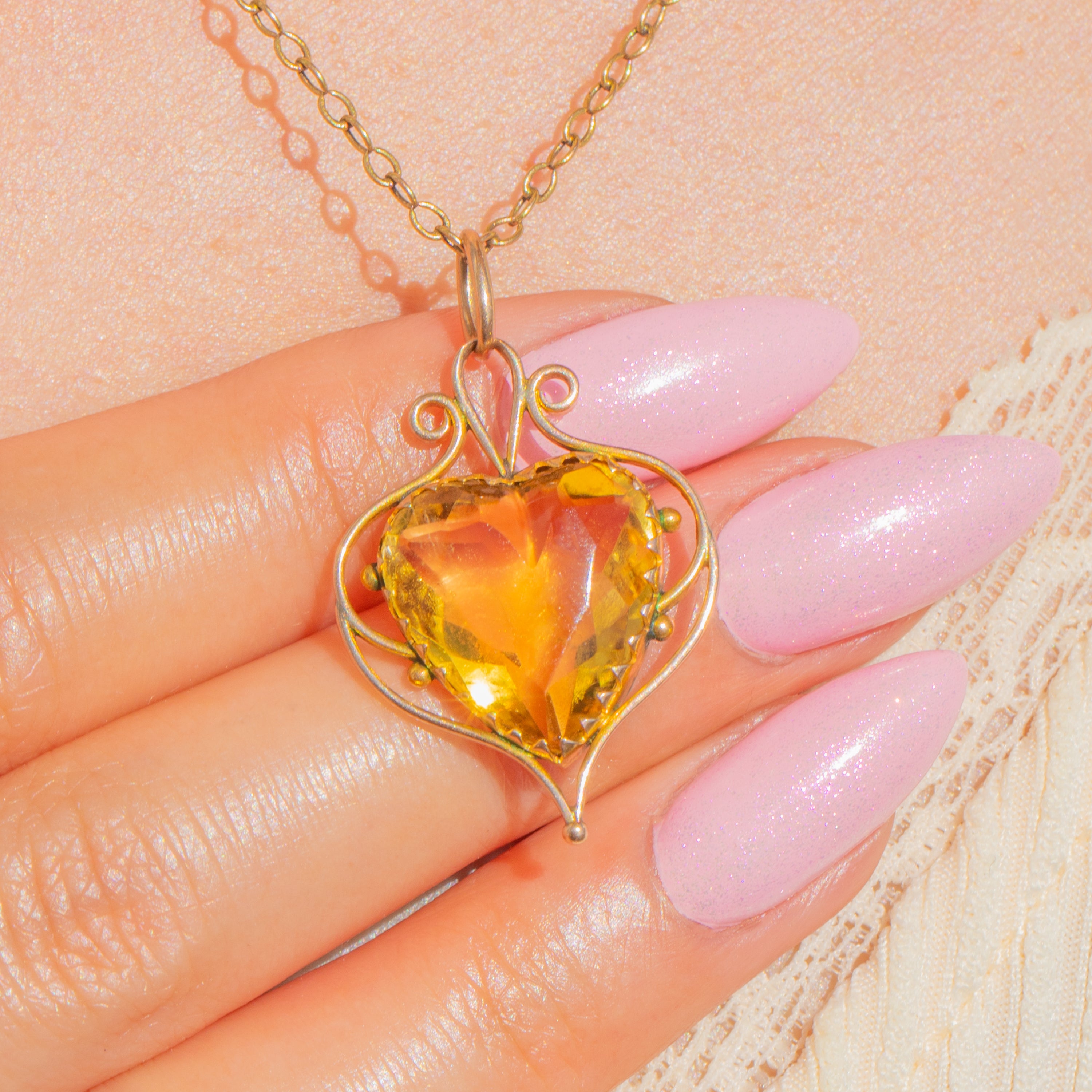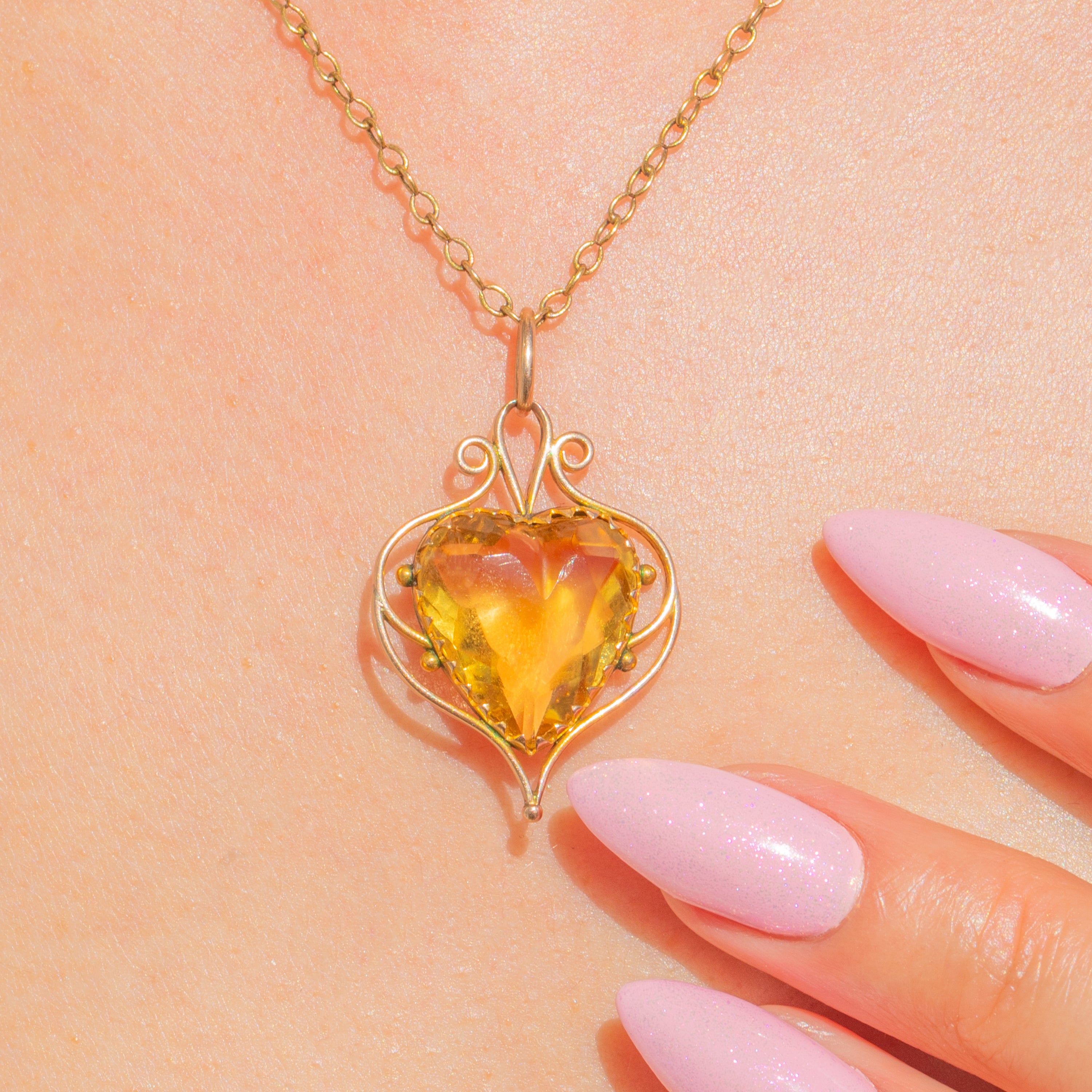 Art Nouveau 9ct Gold Citrine Heart Pendant, 10.00ct