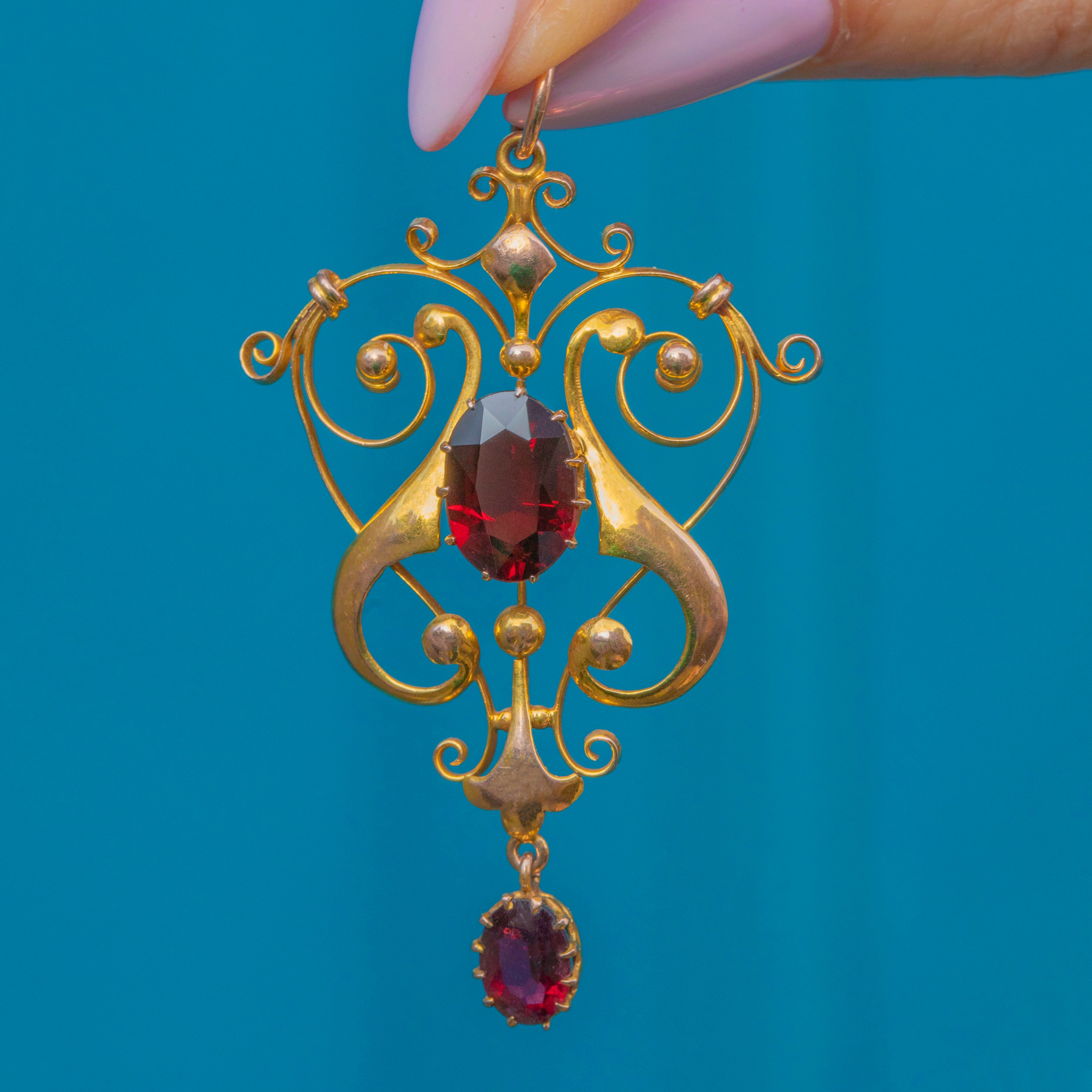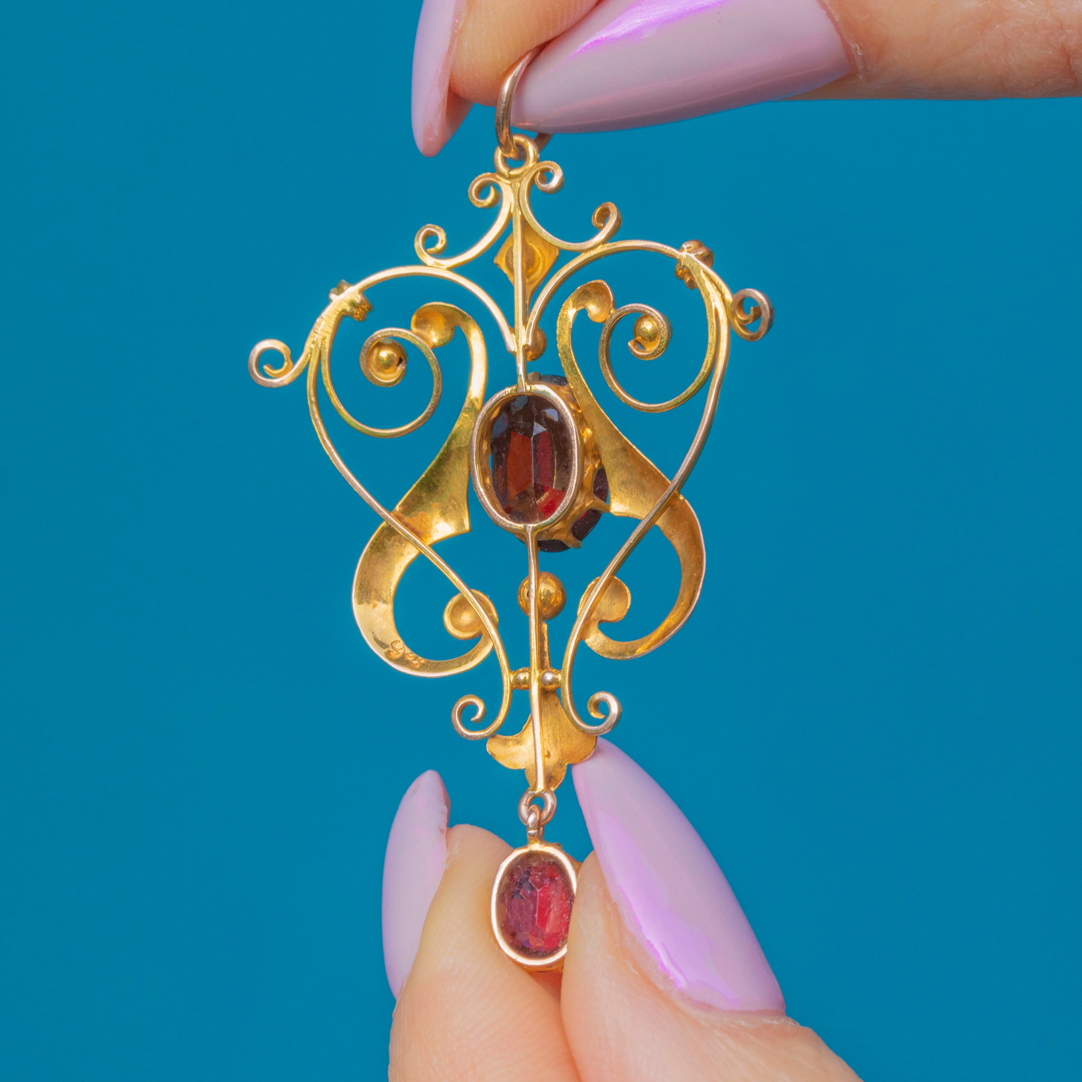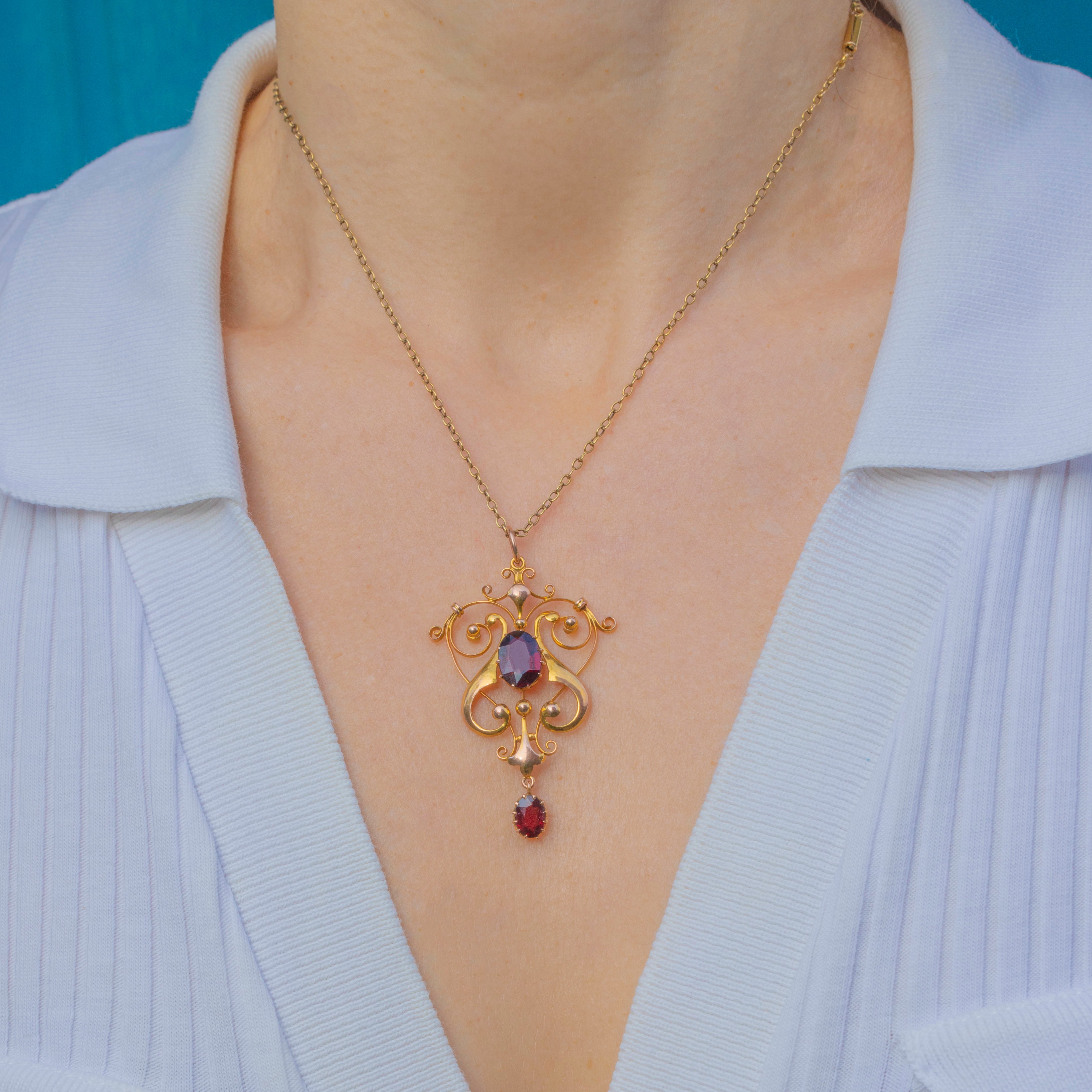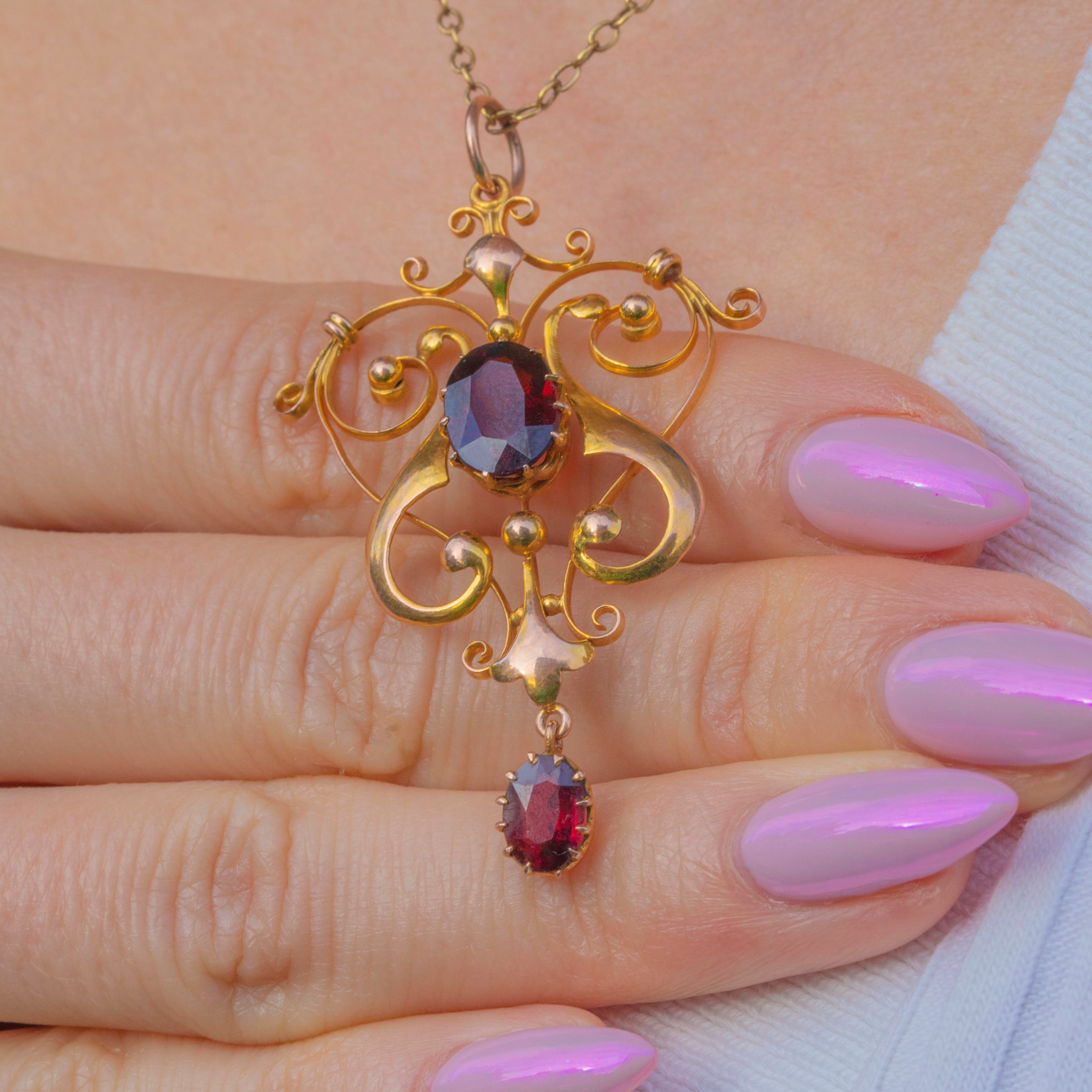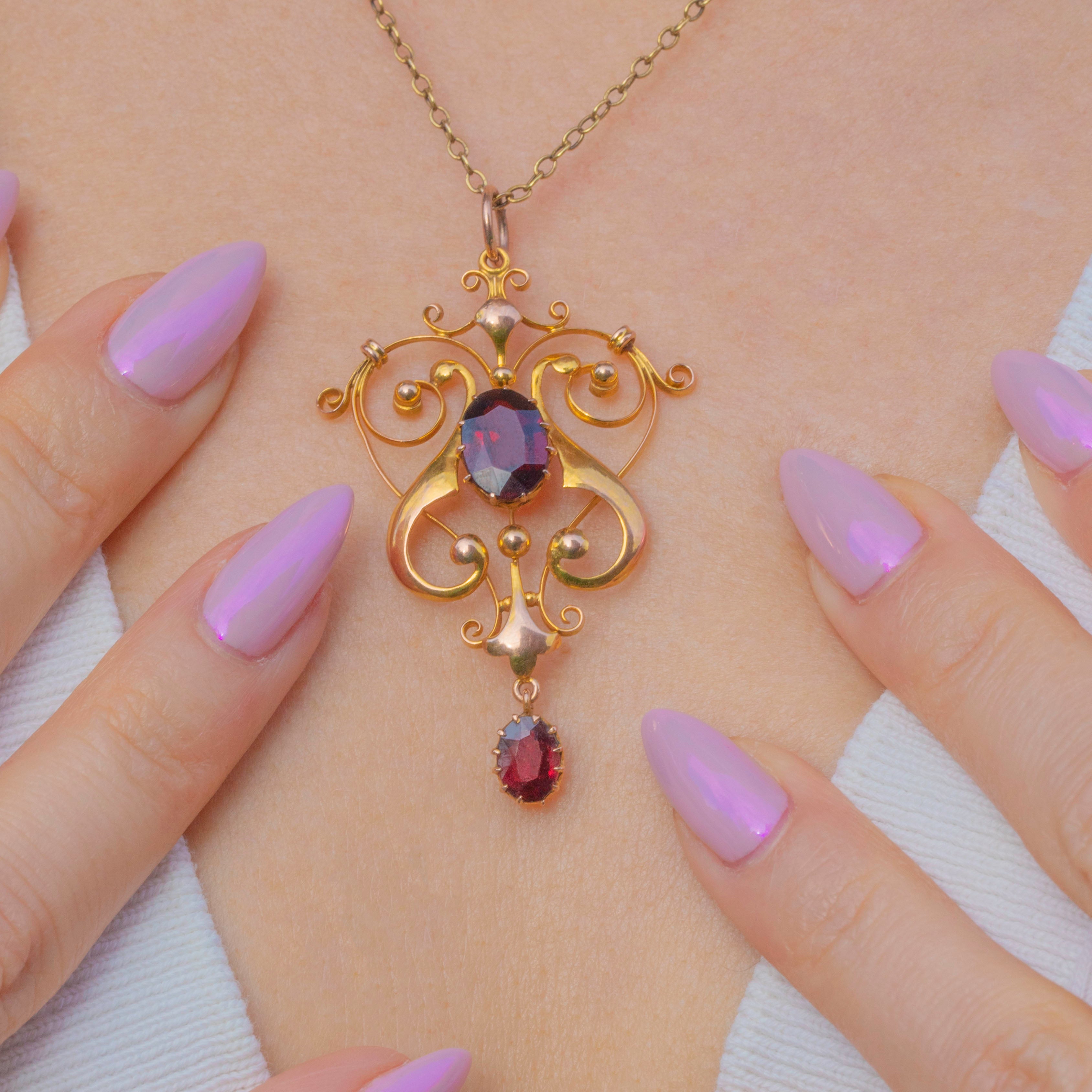 Art Nouveau 9ct Gold Garnet Lavalier Pendant c.1905