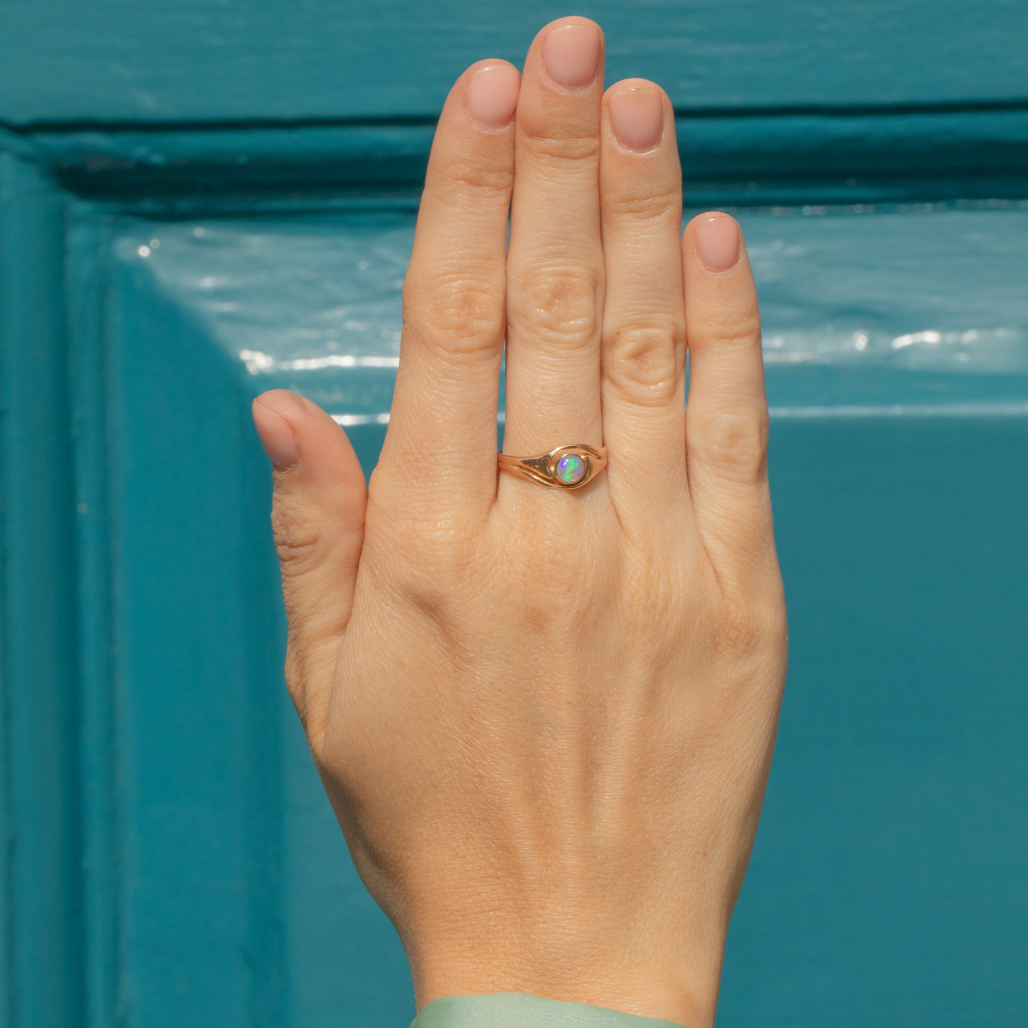 EXCELLENT. This Art Nouveau 9ct Gold Opal twist ring is in excellent condition. Her 9ct Gold is beautifully preserved and glossy with her Opal securely set and free from wear. It is safe to say that this ring is just as beautiful today as when it was first created in the 1900s!