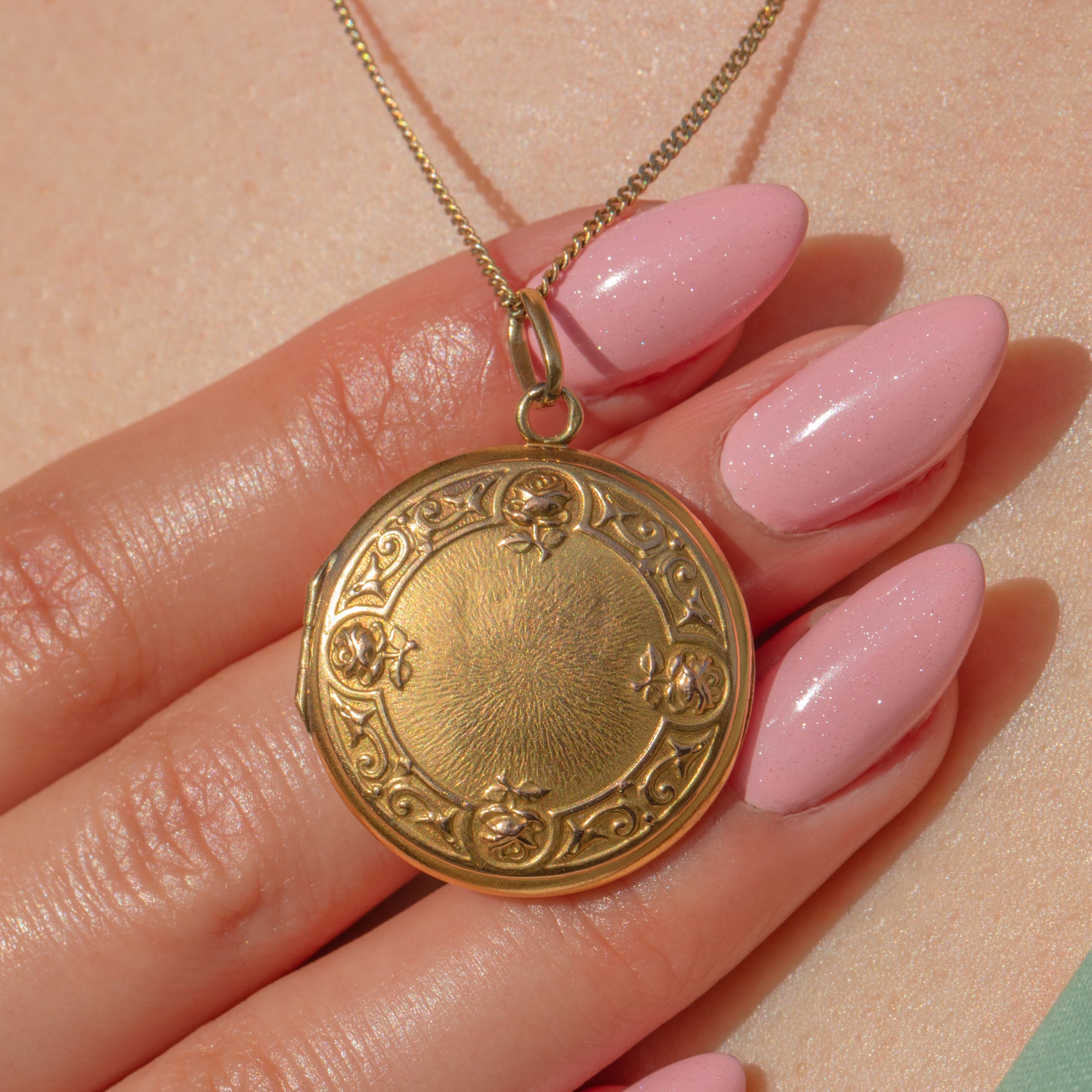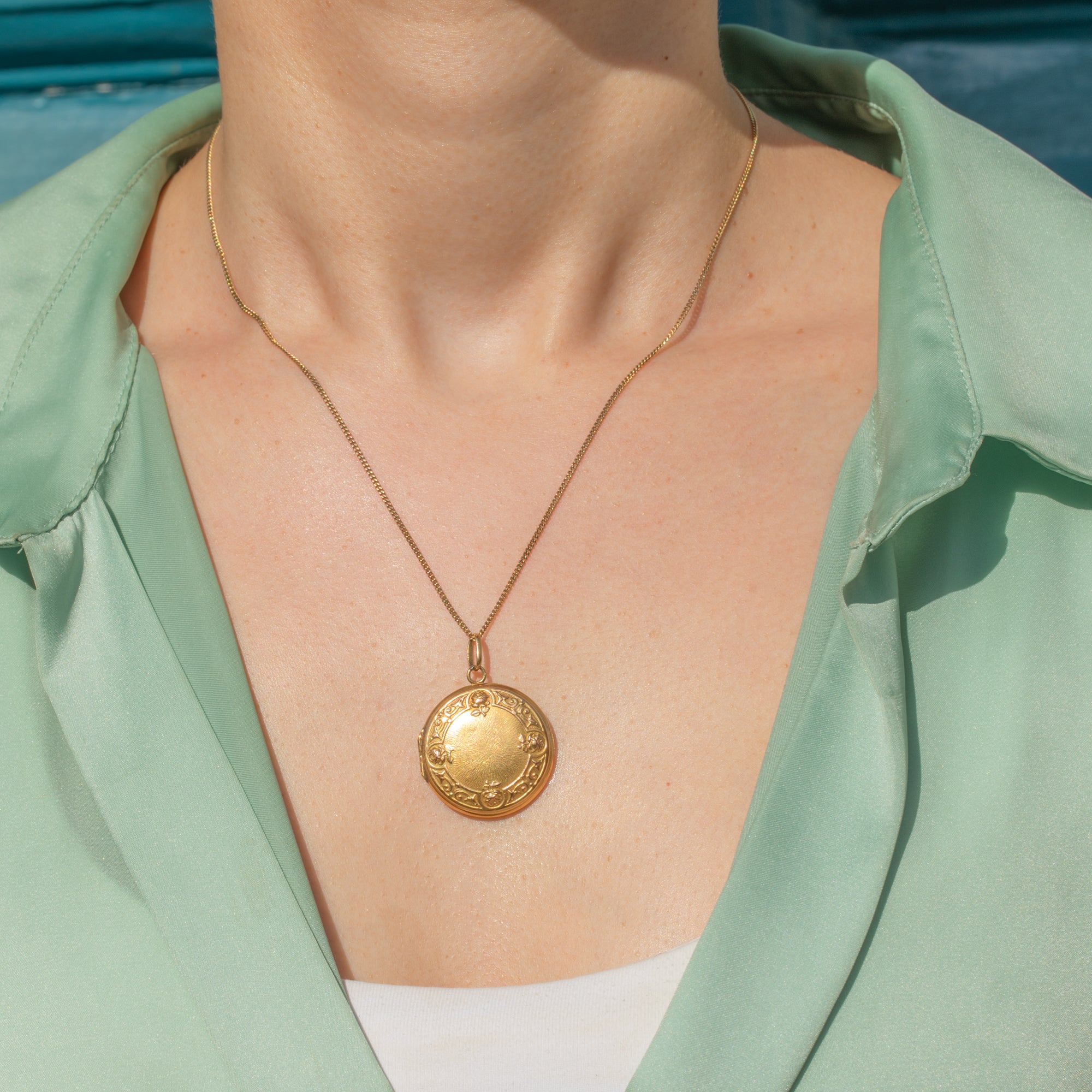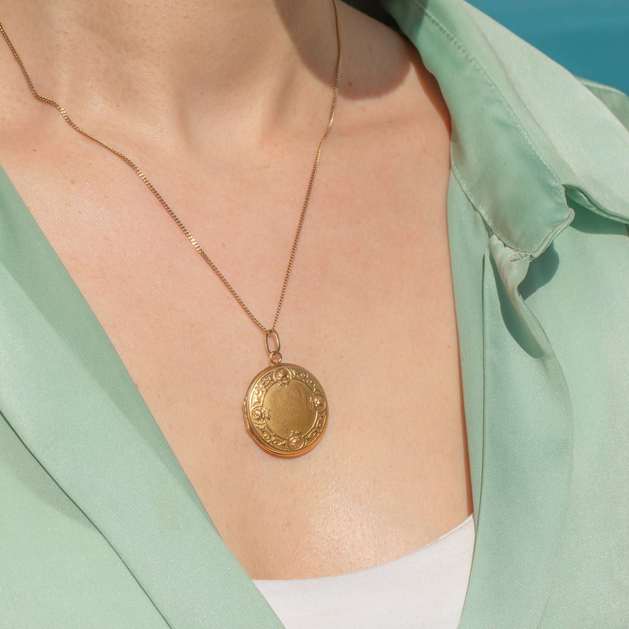 This Art Nouveau French 18ct Gold rose garland locket is a gorgeous piece for your collection! Crafted entirely from gloriously saturated 18ct Gold, with a sumptuous satin finish, the front of this antique locket has been decorated with an ornate repoussé rose garland that perfectly captures the whimsical designs of the Art Nouveau era.