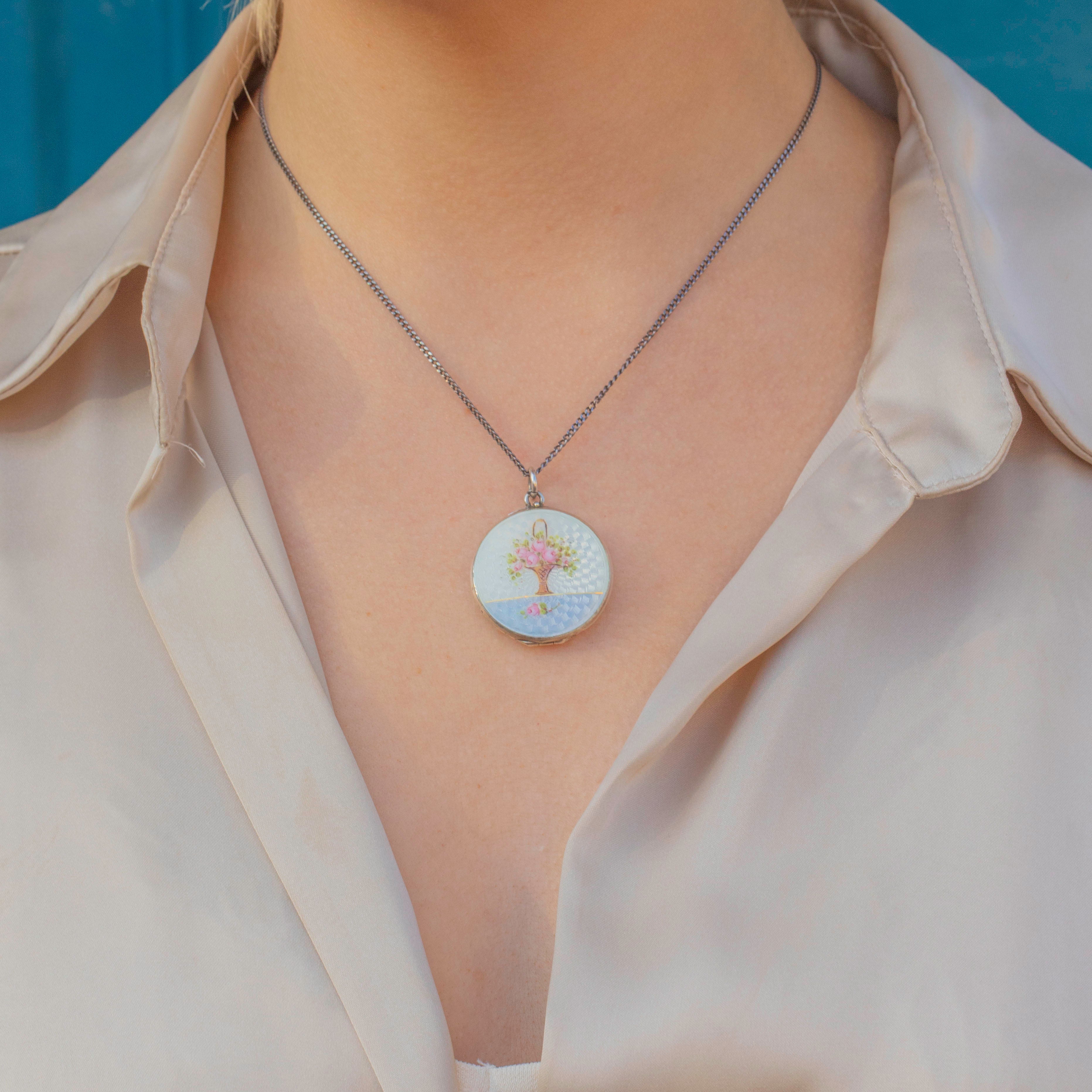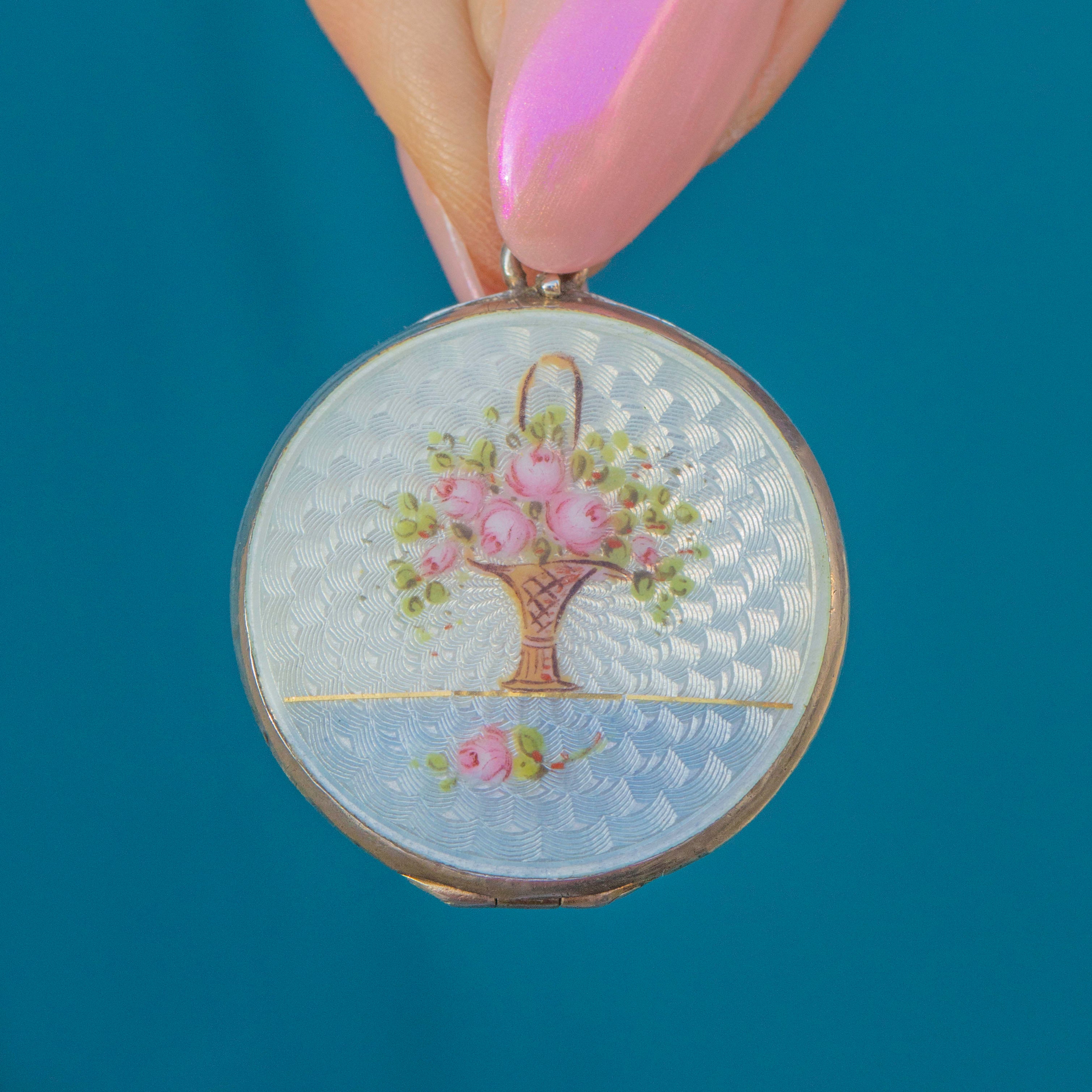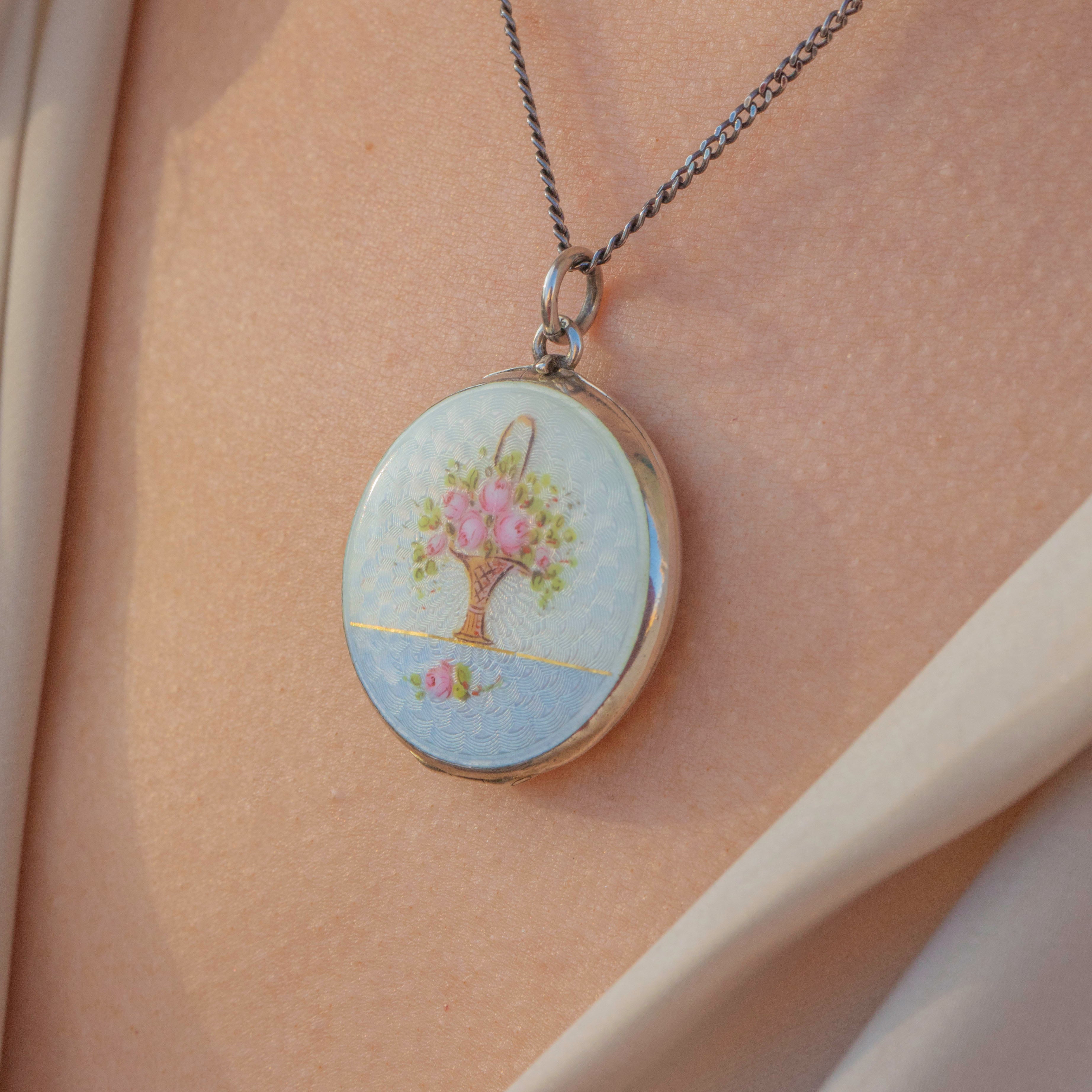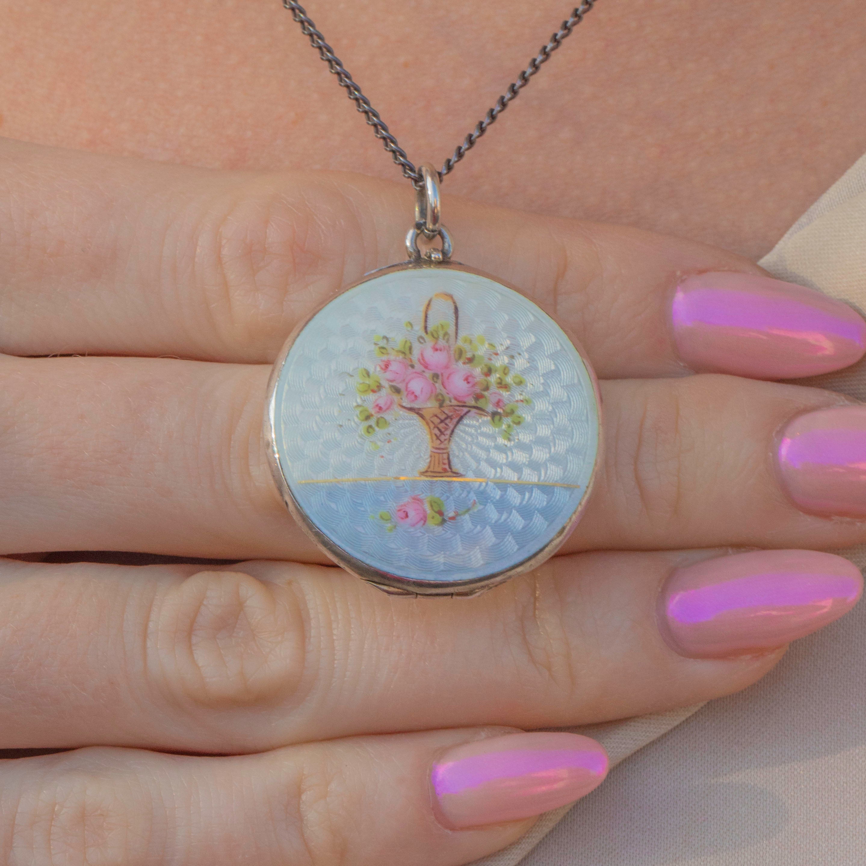 Art Nouveau Guilloche Enamel Bouquet of Flowers Locket