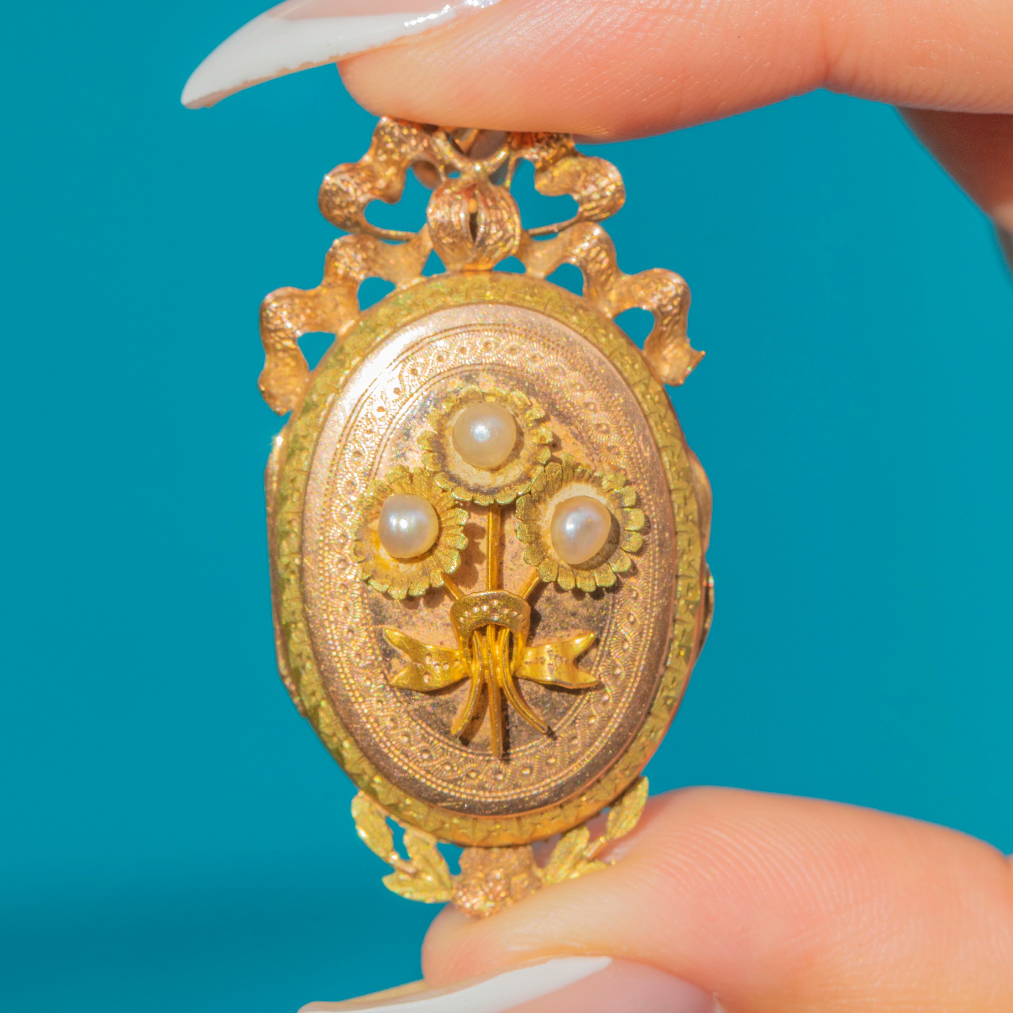 Belle Époque French 18ct Gold Pearl Locket Pendant, c.1900 Item added