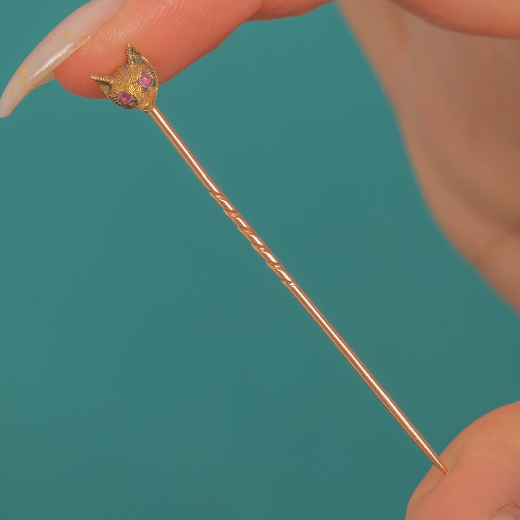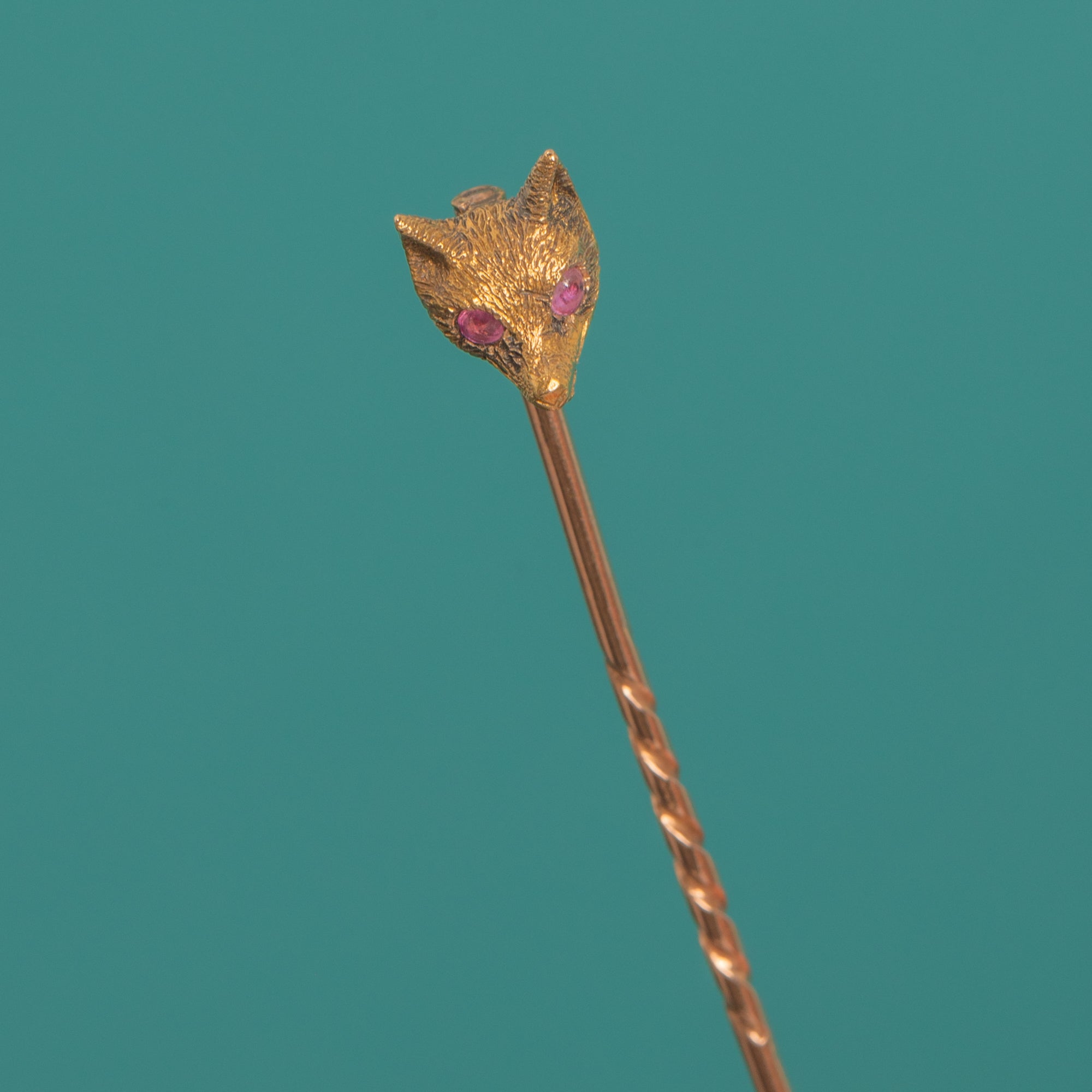 Charming Original Late Victorian 15ct Gold Fox Stick Pin with Ruby Eyes
