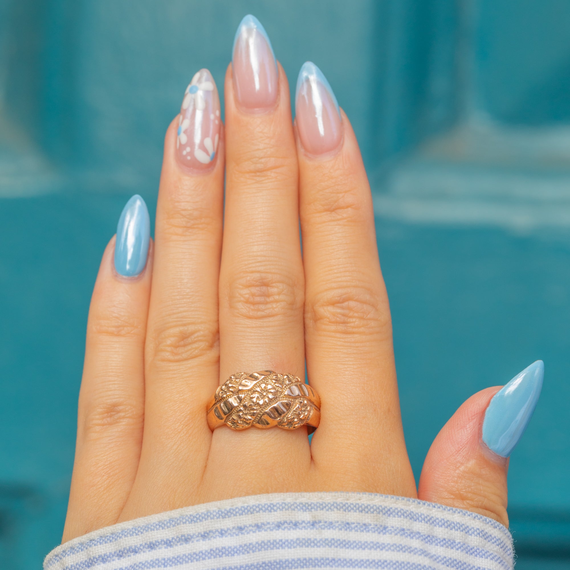 We love the floral detailing of this ring, as well as the chunky finish, providing impressive finger coverage!