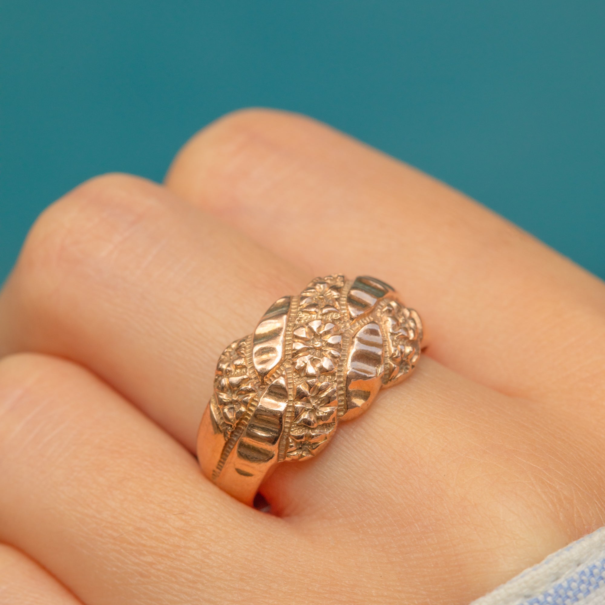 Chunky Antique 9ct Gold Engraved Floral Ring, c.1914