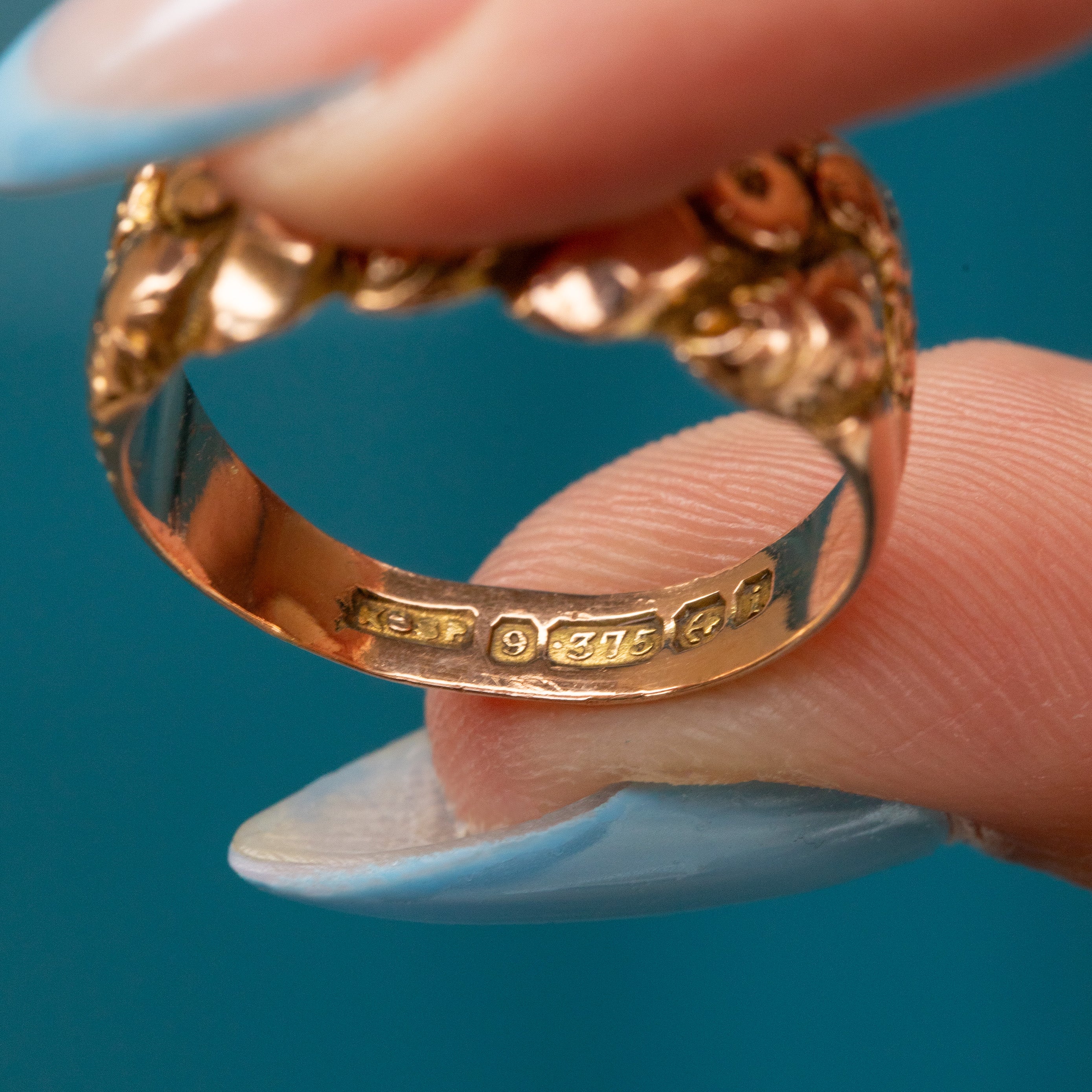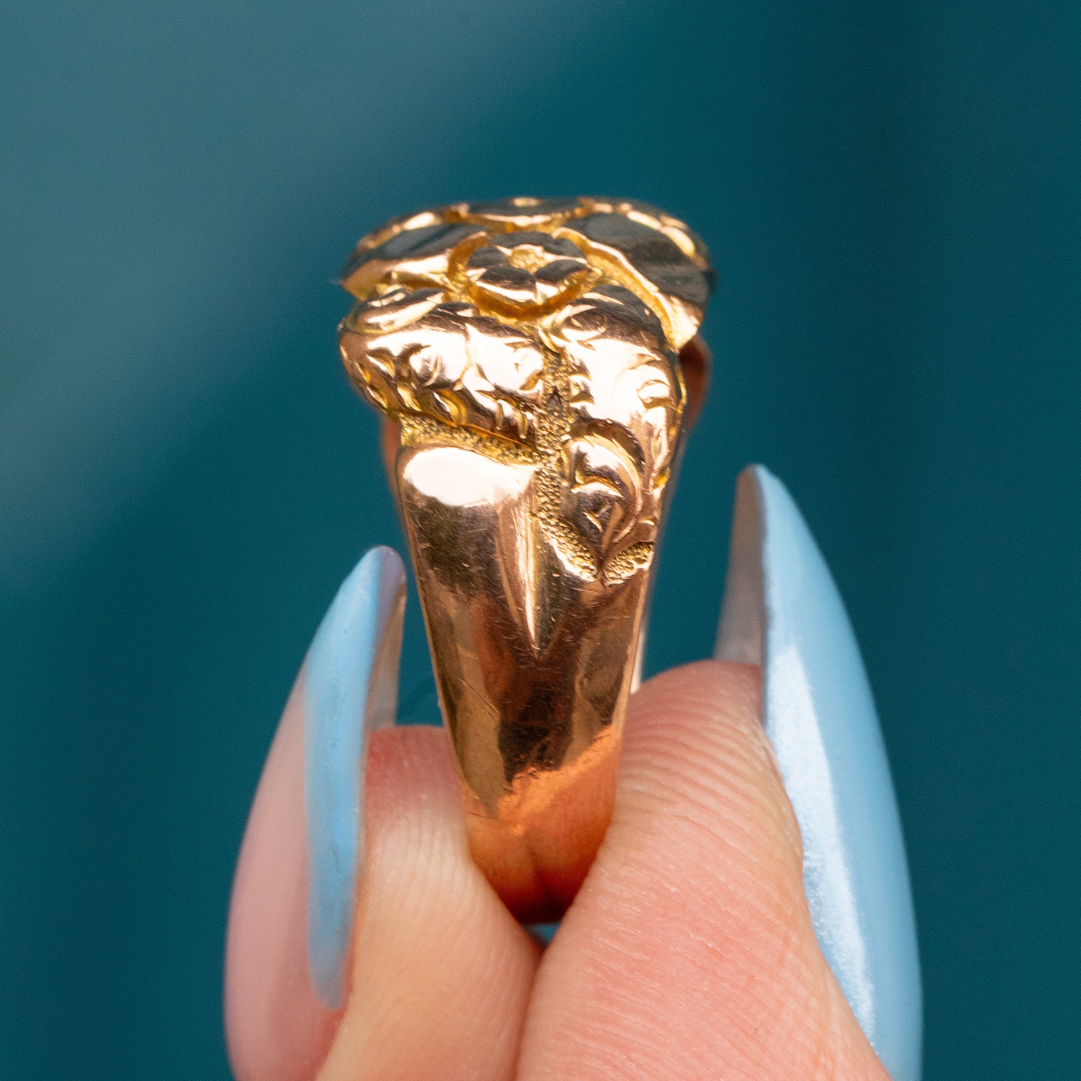 Chunky Edwardian 9ct Gold Engraved Floral Ring, c.1908