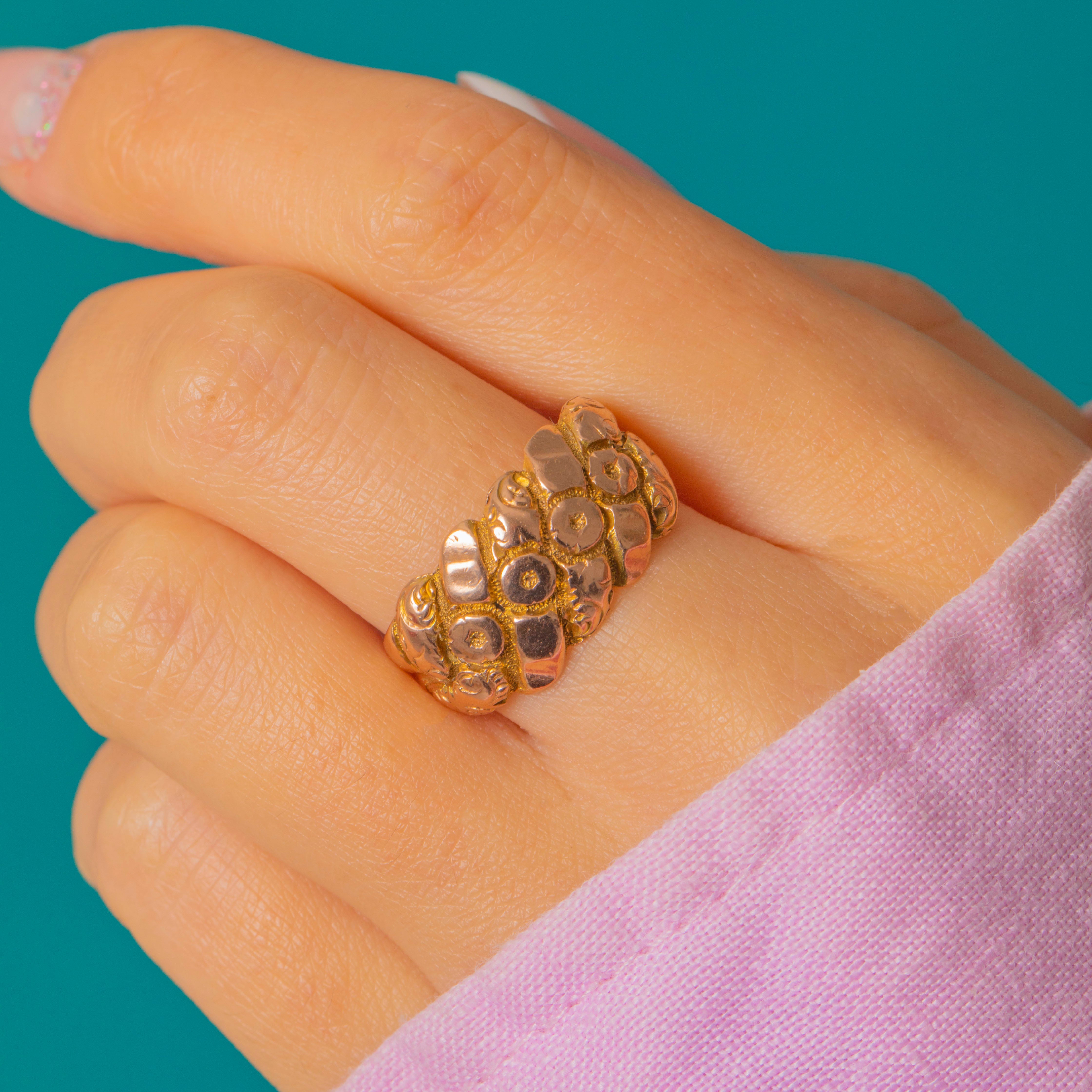 Chunky Edwardian 9ct Gold Engraved Floral Ring, c.1908 Item added
