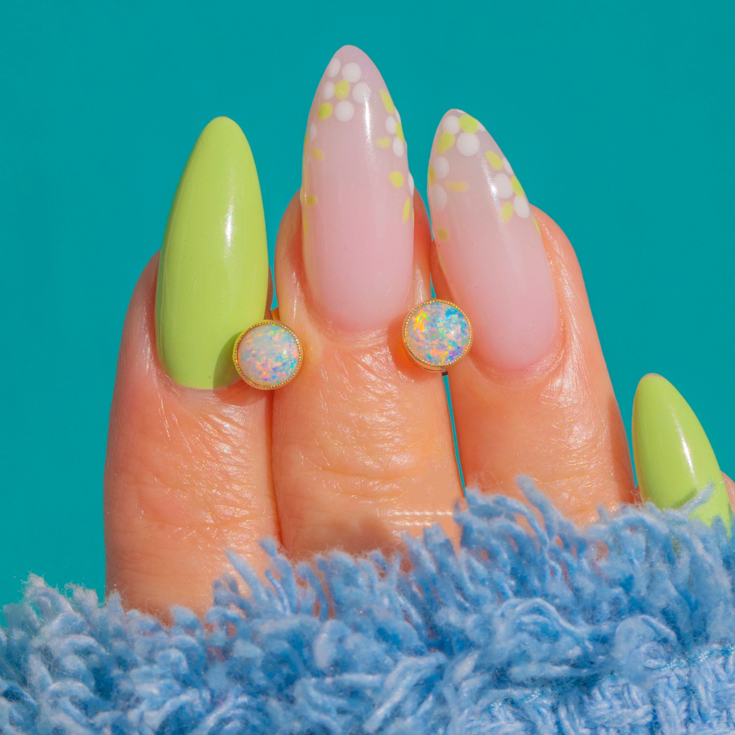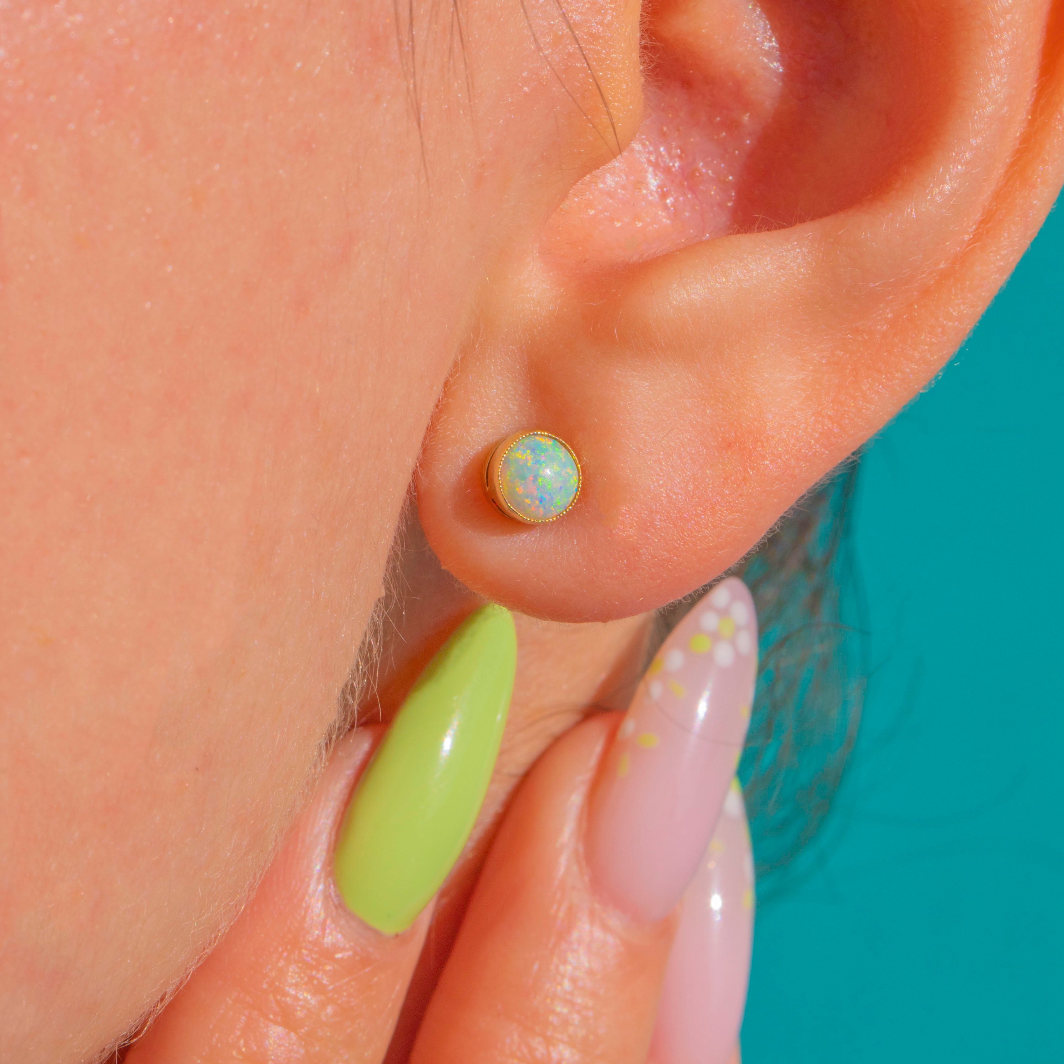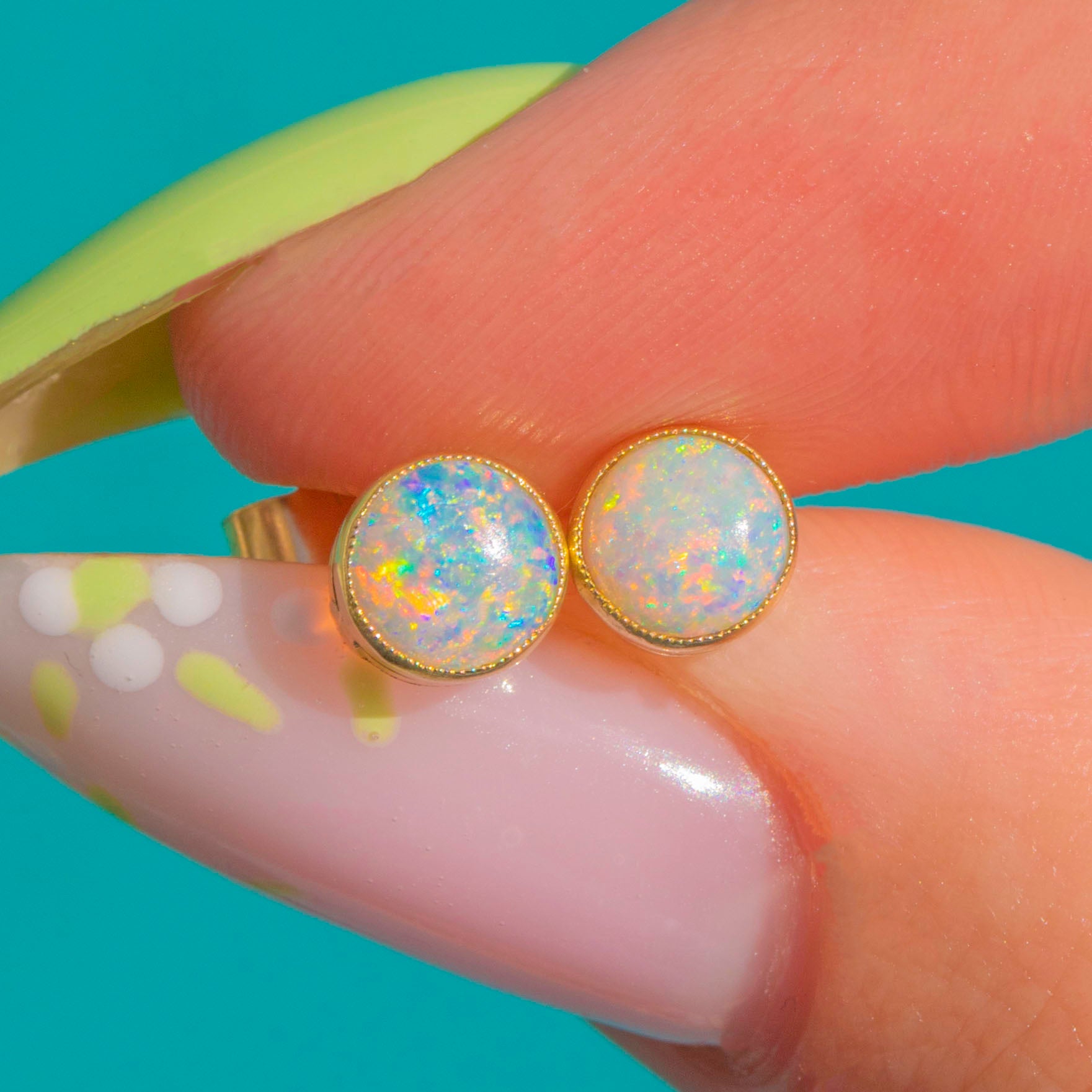 Dainty 18ct Gold Bezel-Set Opal Stud Earrings