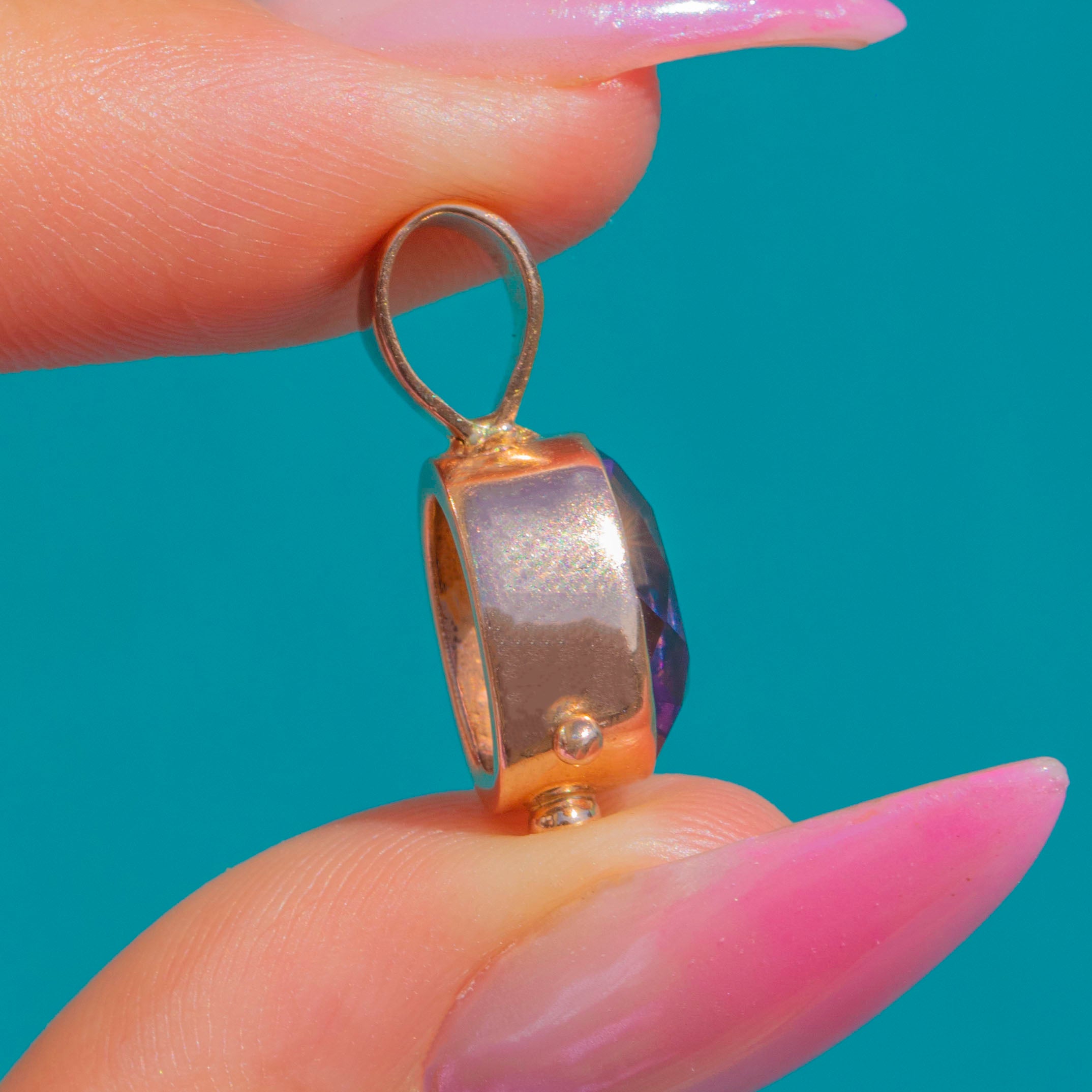 EXCELLENT: The Amethyst is bright with crisp facets and no chips or notable abrasions visible under close inspection. The 9ct Gold bezel and bail are smooth, secure and retain a lovely polish with only minimal light wear consistent with age.