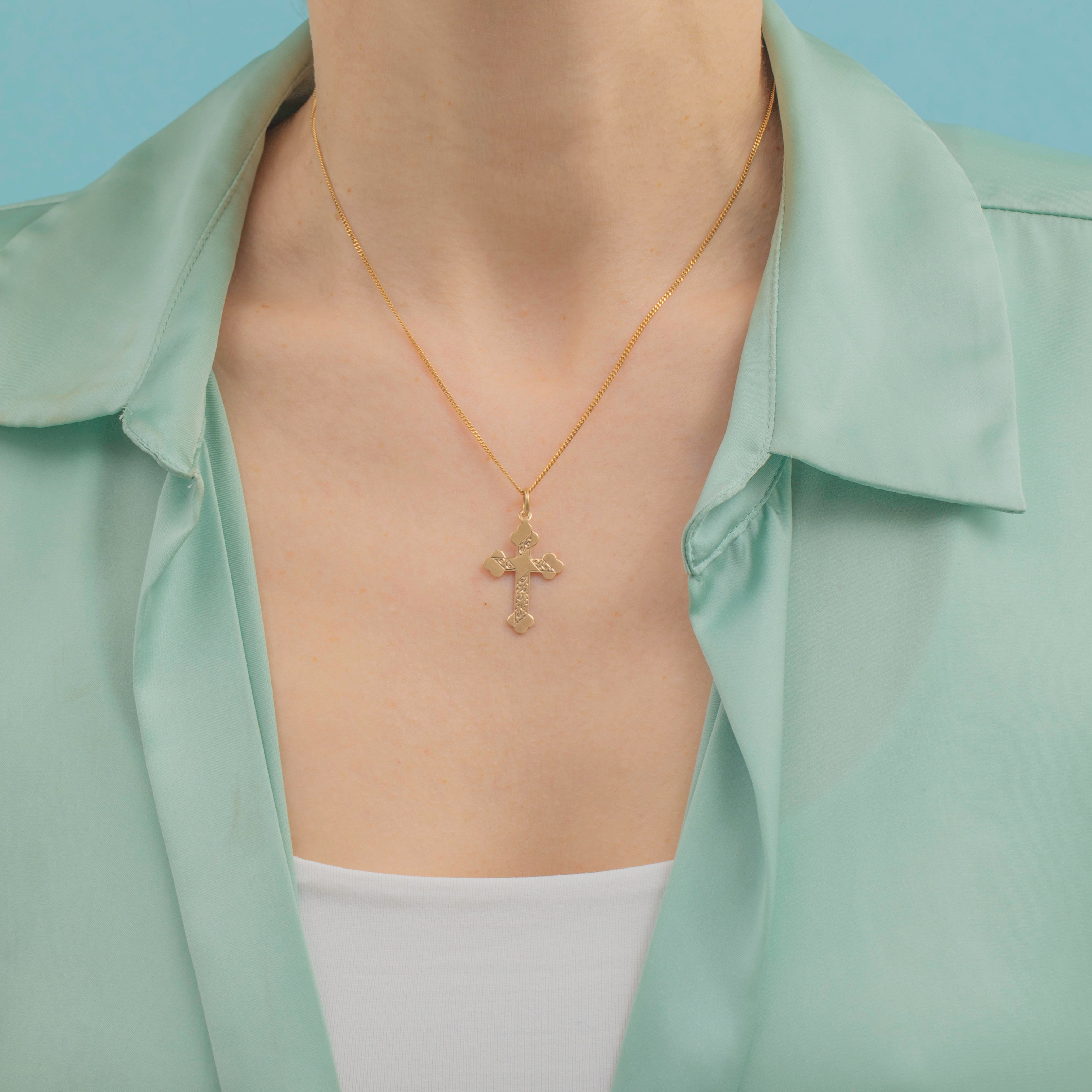 EXCELLENT: This antique 9ct Gold engraved cross pendant is in excellent condition. The Gold is bright and the engraved details have remained crisp with no signs of wear, and is fully hallmarked to 1979. You can enjoy this 9ct Gold cross pendant for years to come!