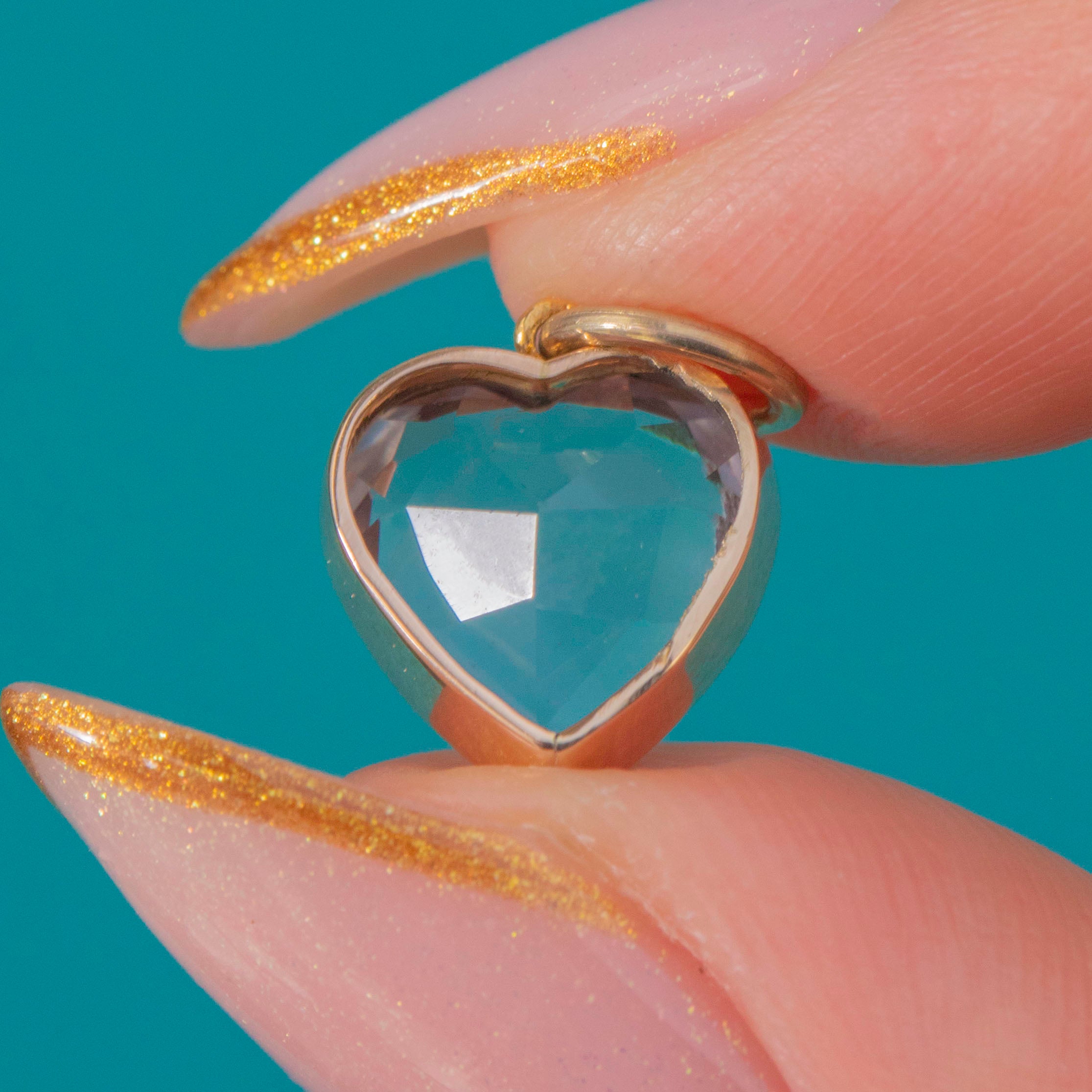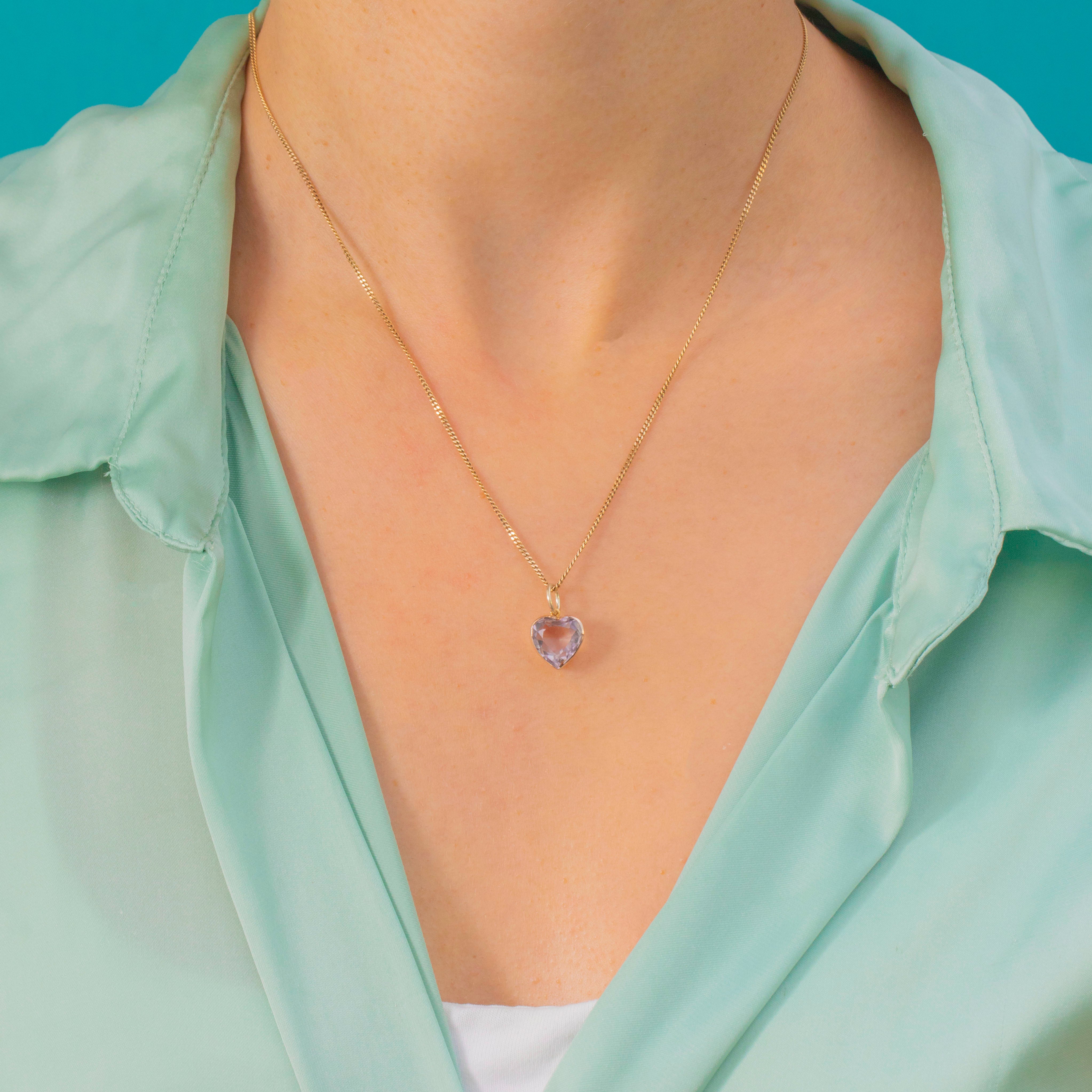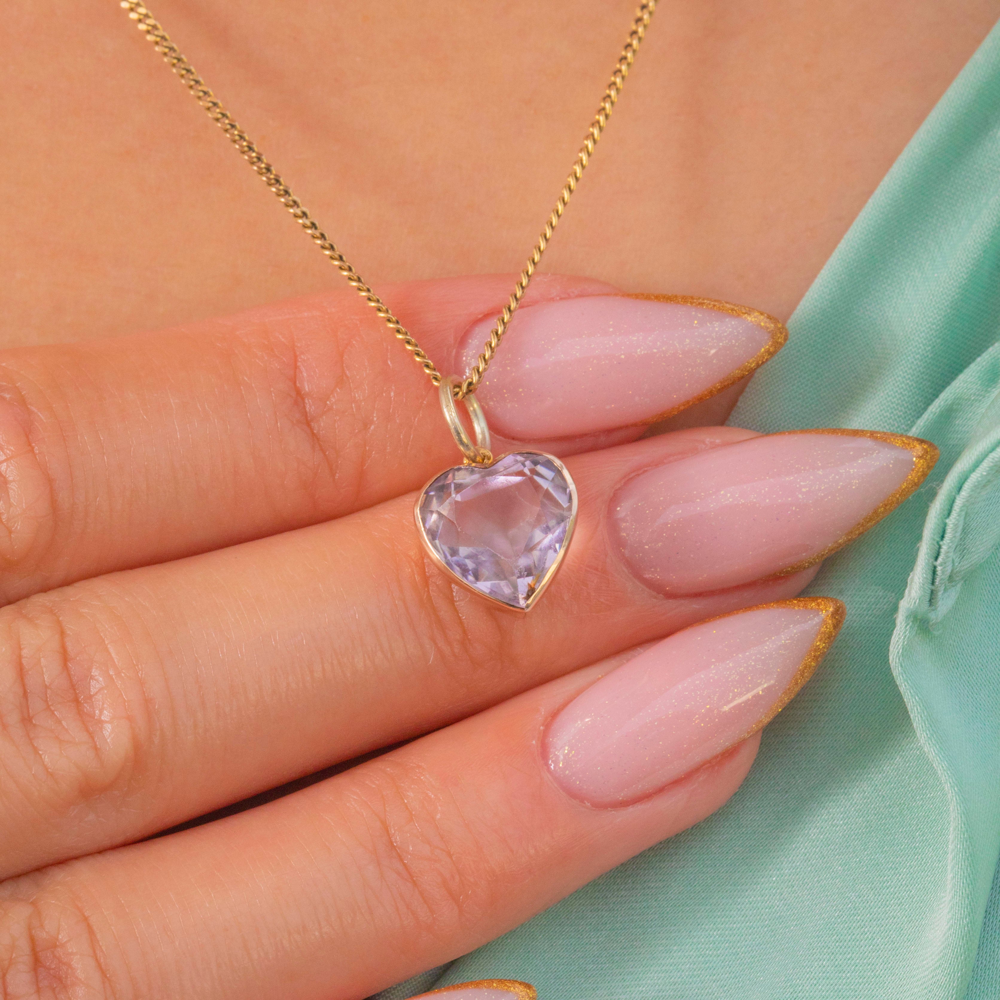 A sweet antique heart charm set with a delicate lilac-pink Amethyst, with crisp facets that catch the light beautifully. The gem displays a lovely glow with a natural internal inclusion that adds depth and character — a hallmark of genuine antique stones. Estimated at approximately 1.00ct, it’s a sweet and romantic keepsake, perfect for layering or gifting.