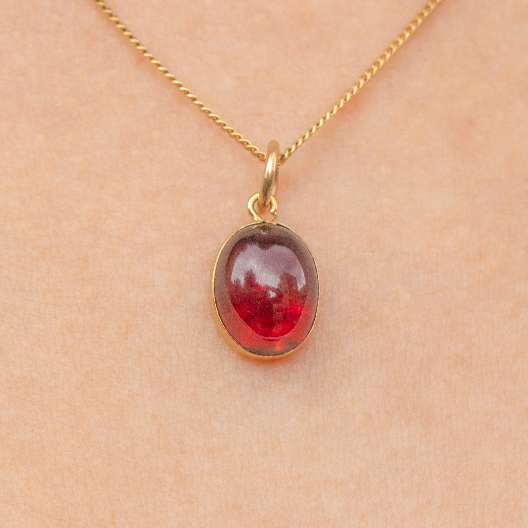 Transport yourself to the Victorian era with this exquisite antique 18ct Gold Garnet cabochon charm! The deep and richly saturated 3.15ct Garnet is accentuated by the warm glow of the Gold, creating a captivating piece that almost looks good enough to eat!