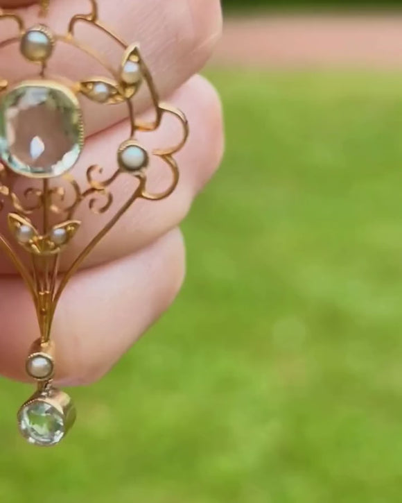 Edwardian 15ct Gold Aquamarine & Pearl Lavalier Pendant, 2.30ct