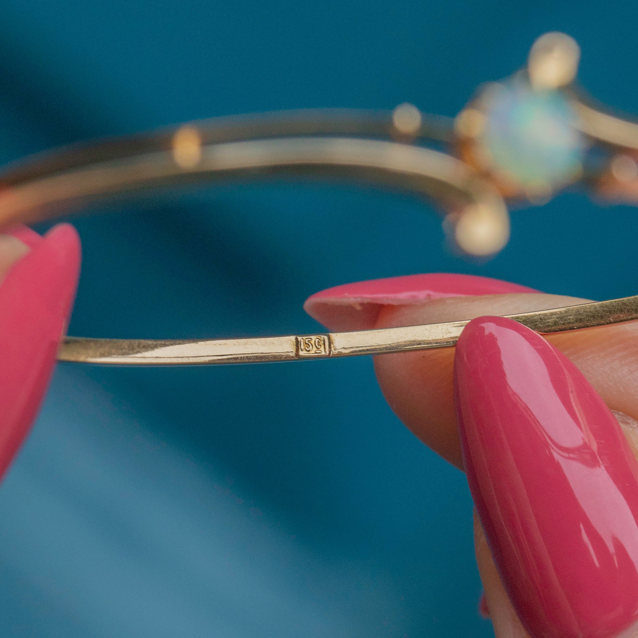 This Edwardian Gold bangle wears like a dream, with a dainty and buttery smooth band that easily slots into place, secured by a subtle clasp. Opals make for a sophisticated and luxurious touch to any attire, you'll want to wear this striking piece every day!