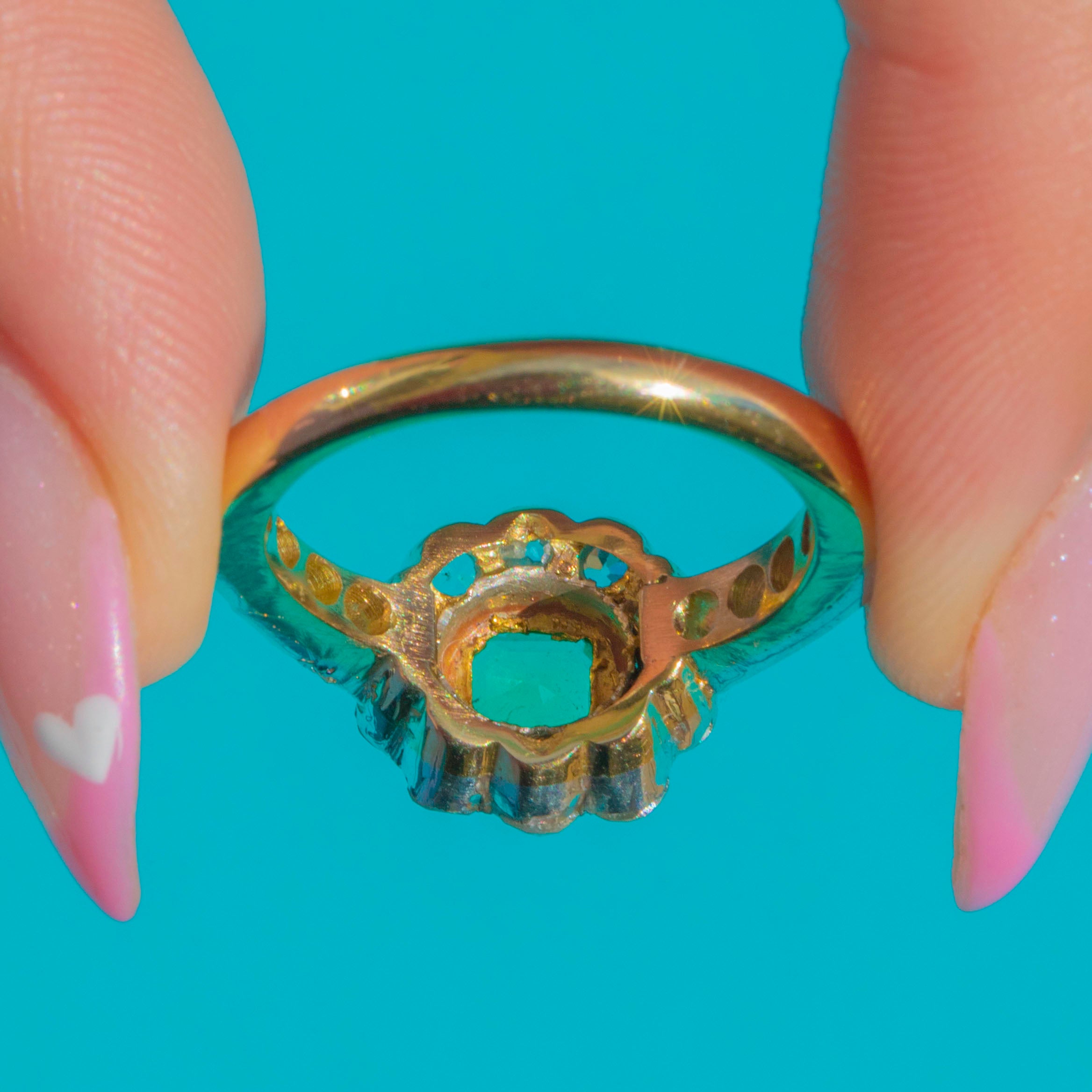 Antique 18ct Gold Emerald Ring with Diamond Halo Item added