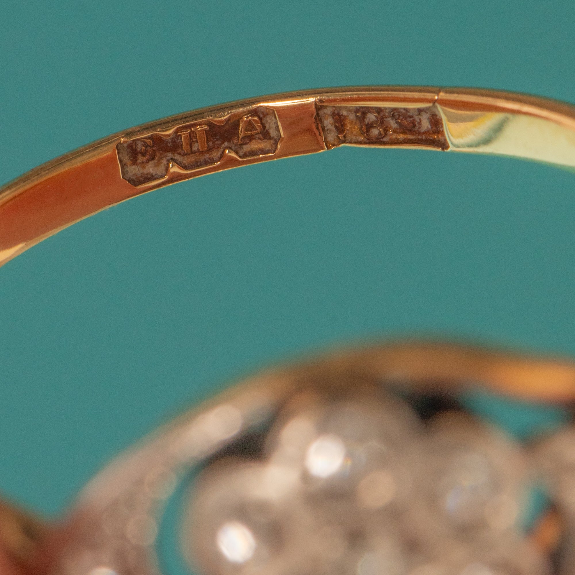 Edwardian 18ct Gold Platinum Diamond Cluster Twist Engagement Ring