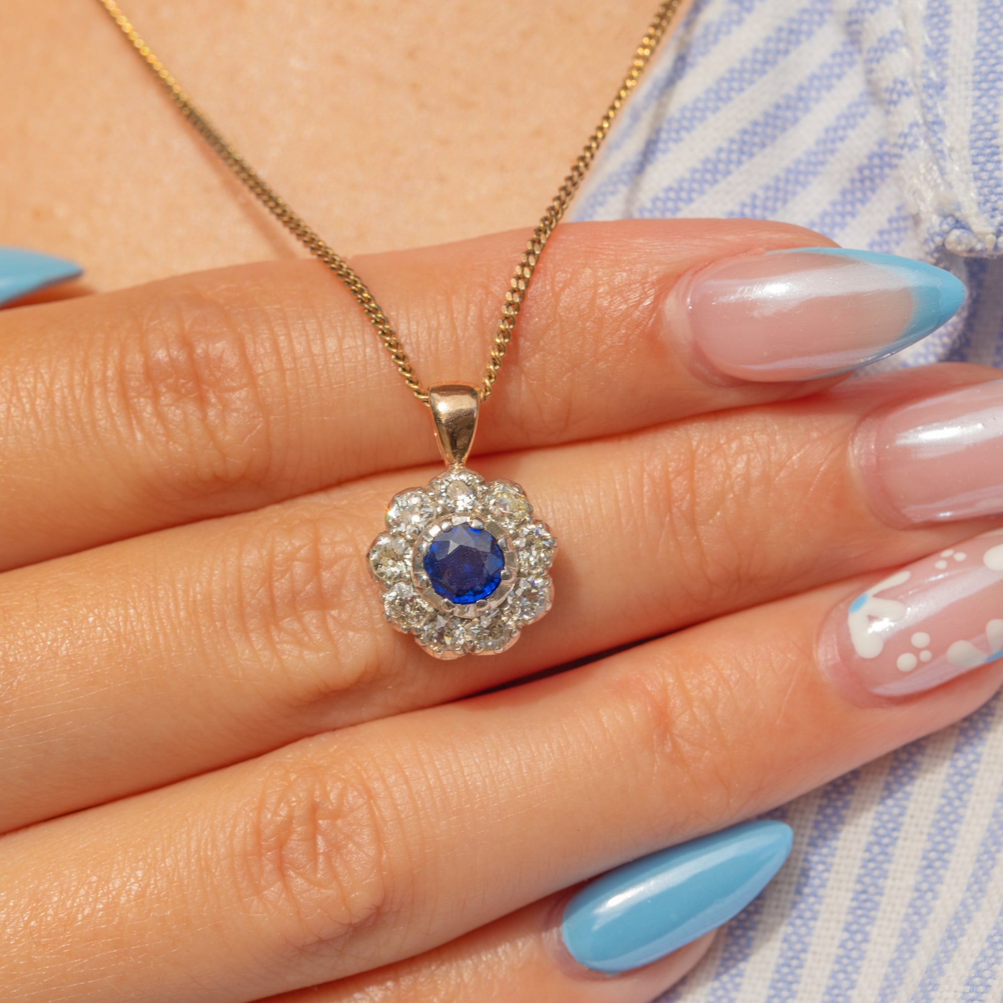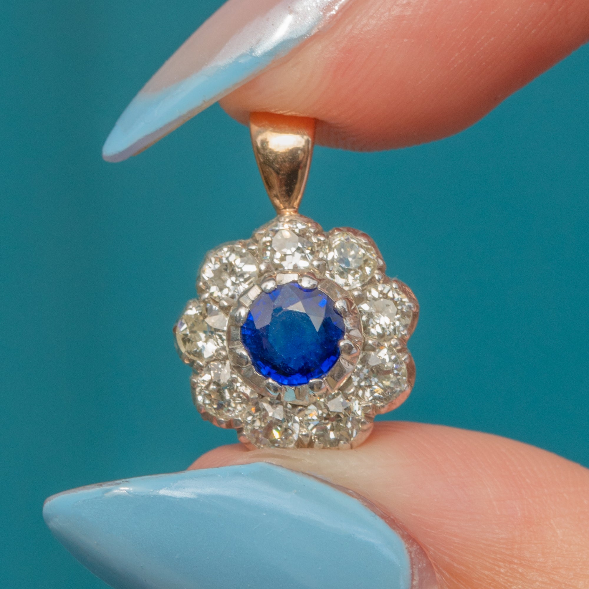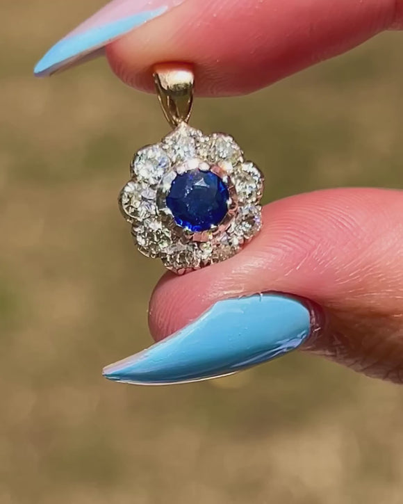 Edwardian 18ct Gold Sapphire Diamond Flower Cluster Pendant