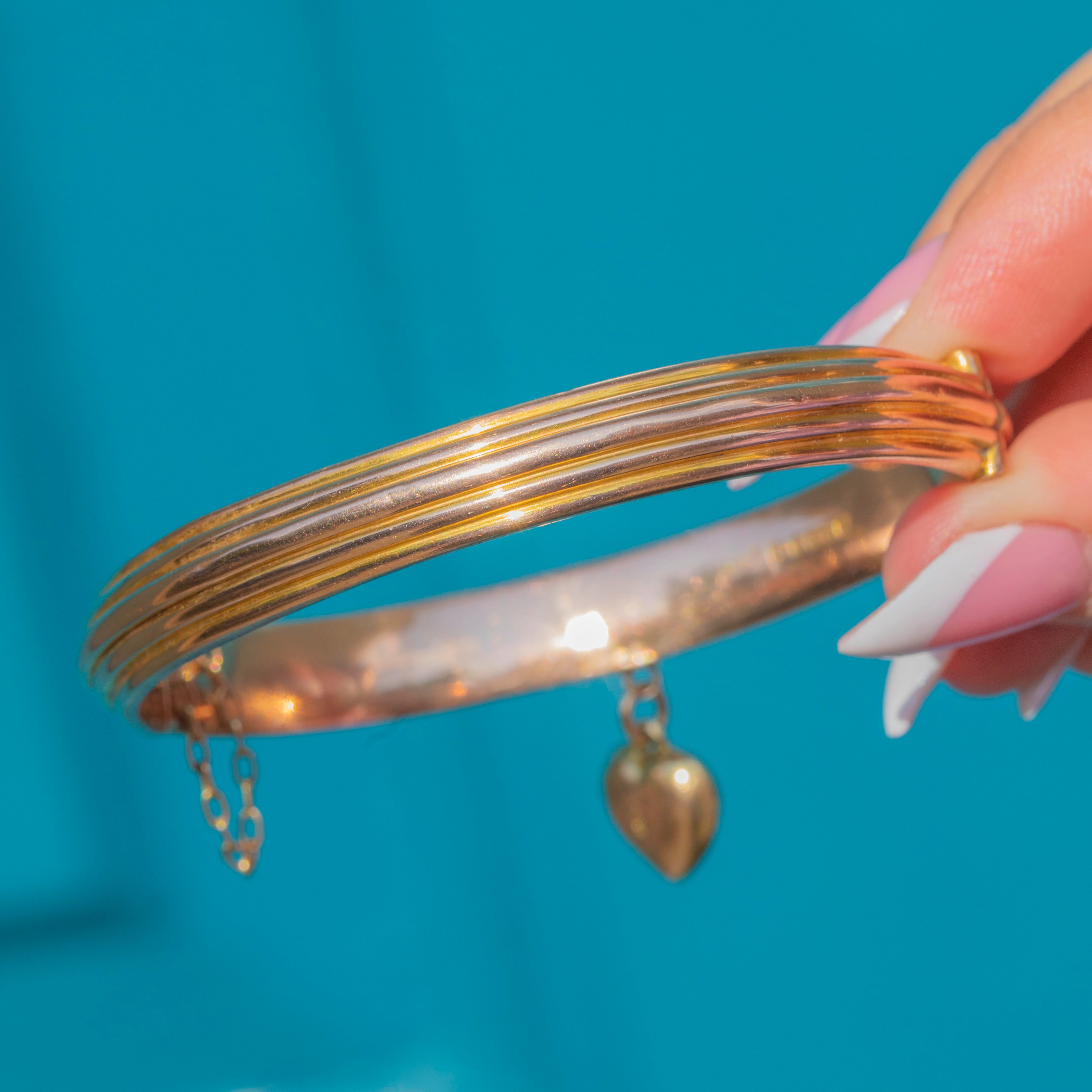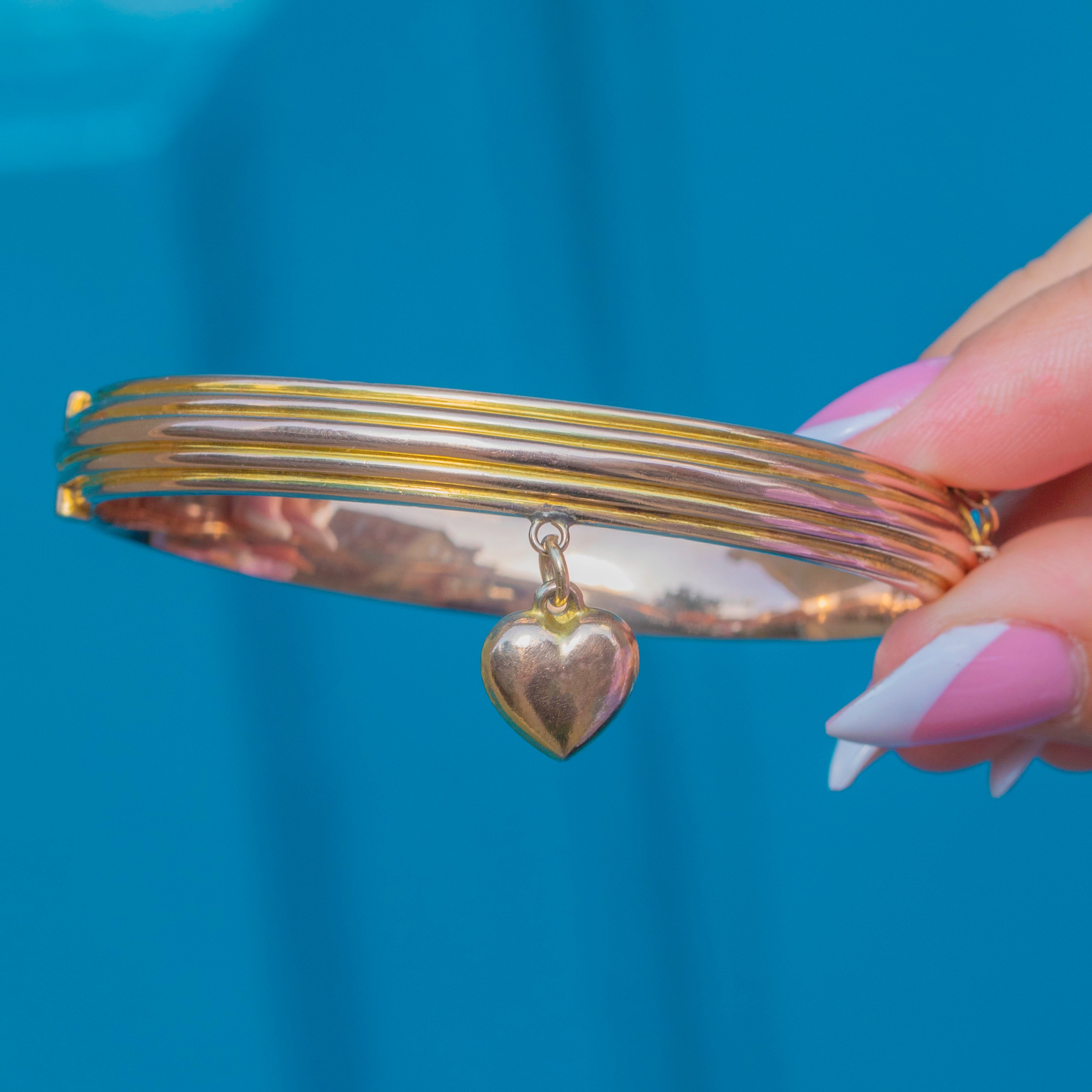 Edwardian 9ct Gold Bangle with Puffy Heart Charm