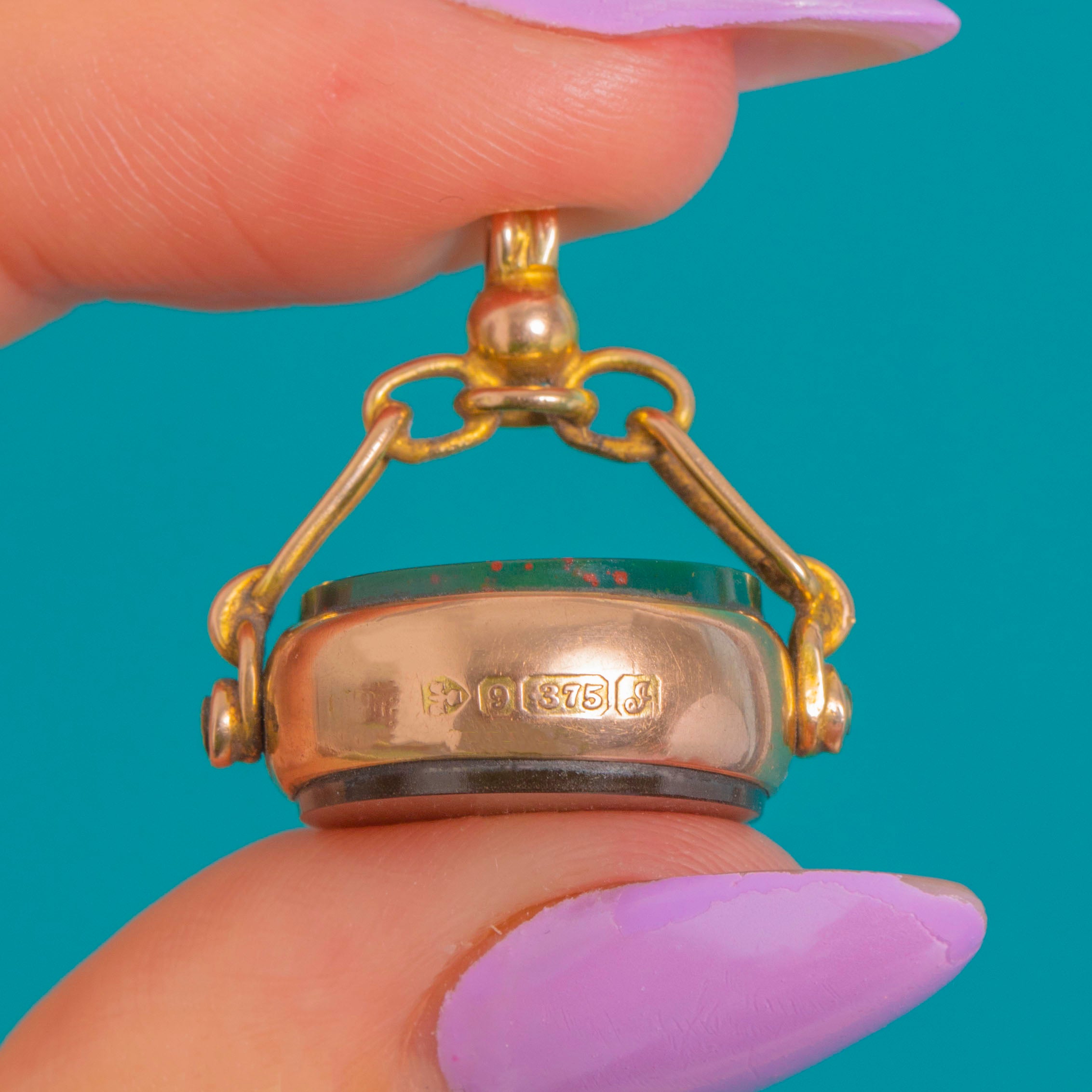 MATERIALS: Tests as 9ct Gold, Bloodstone, Onyx.