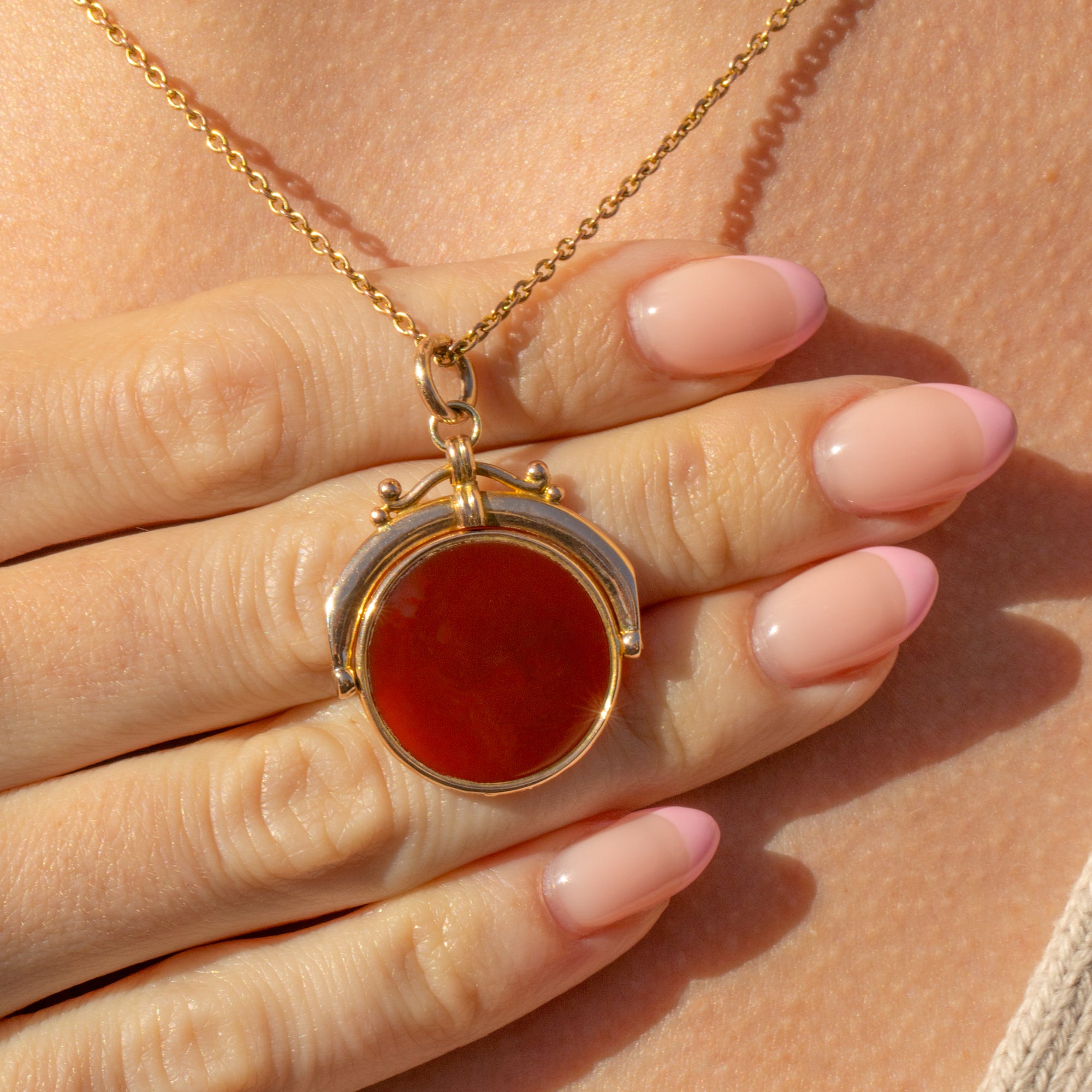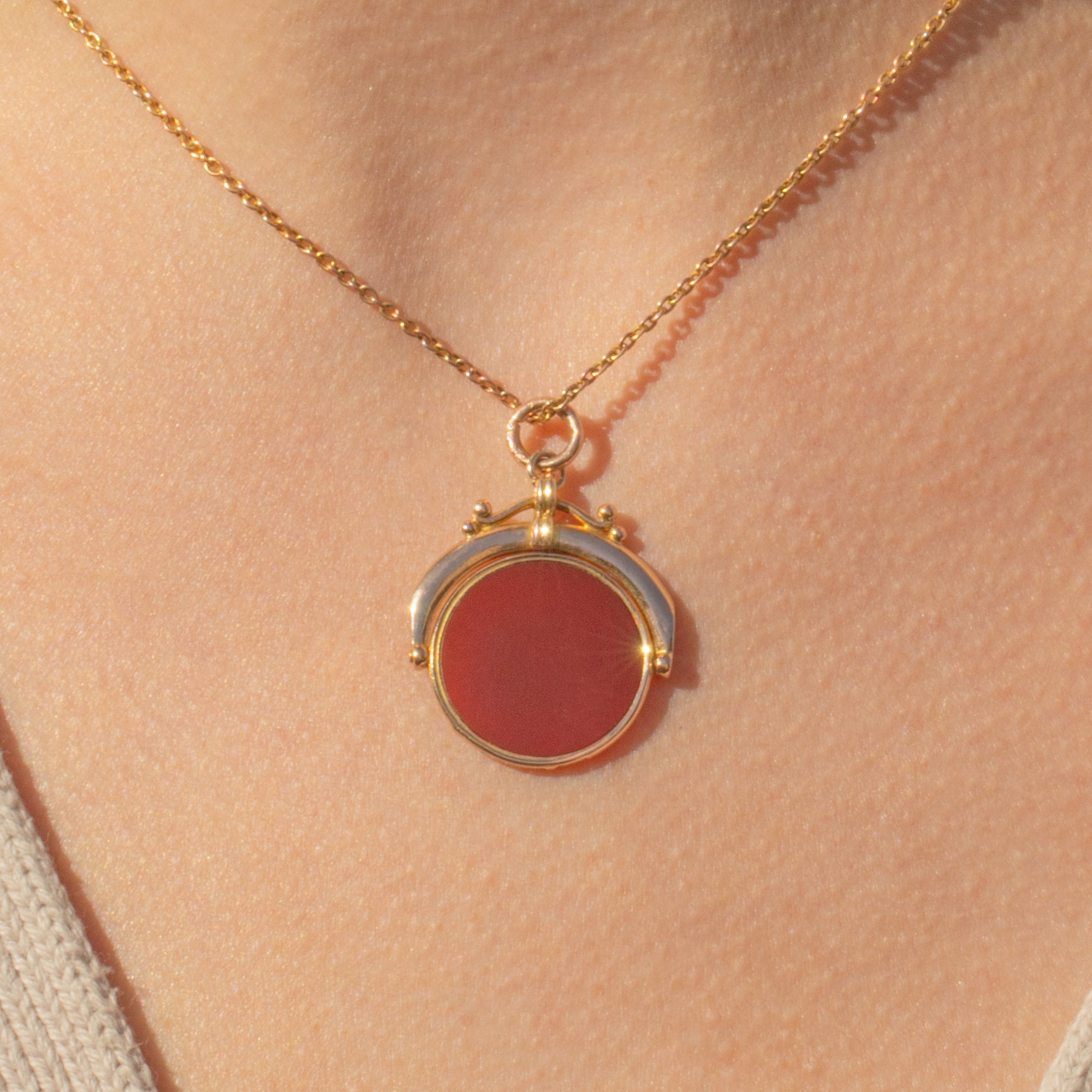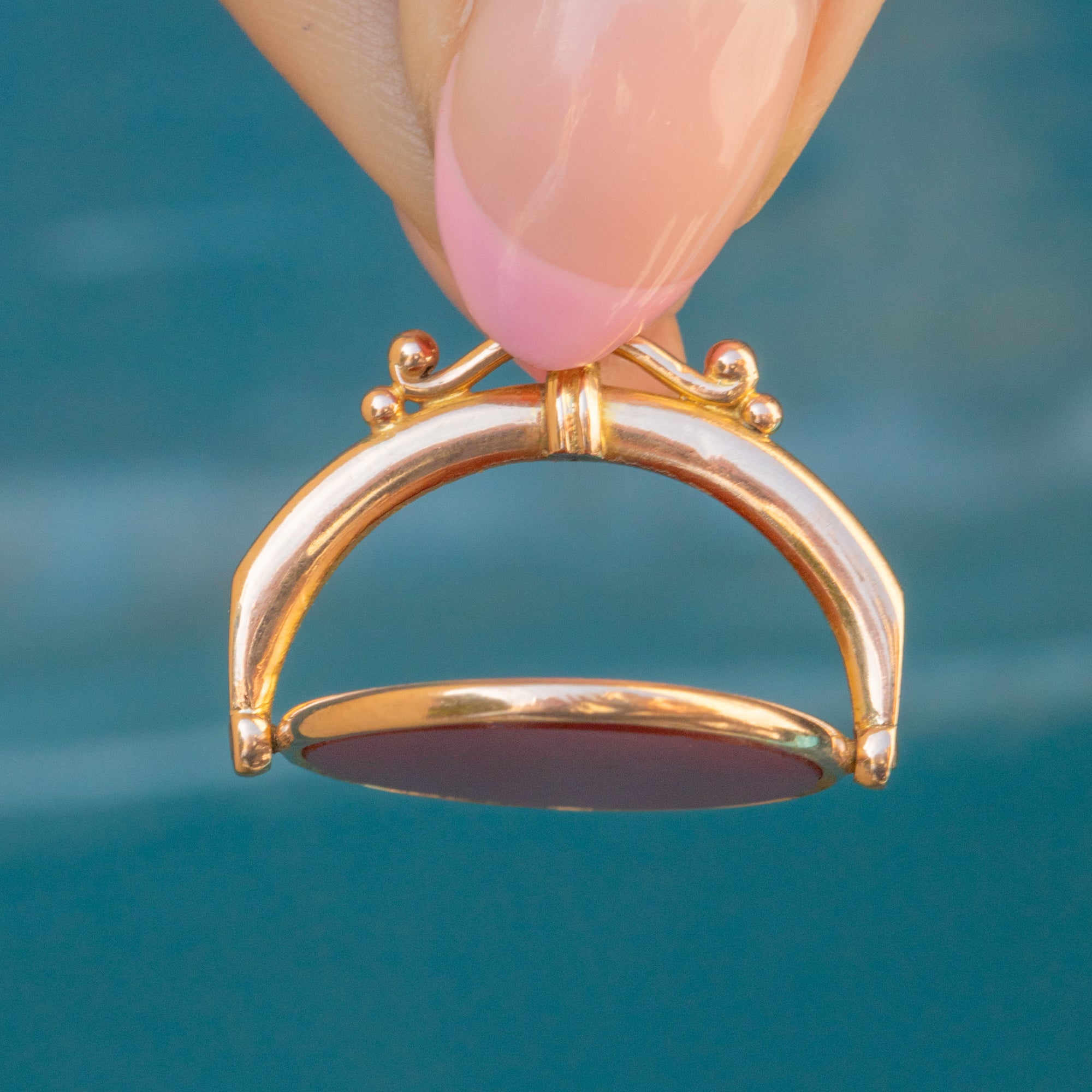 Edwardian 9ct Gold Carnelian Spinner Fob Pendant