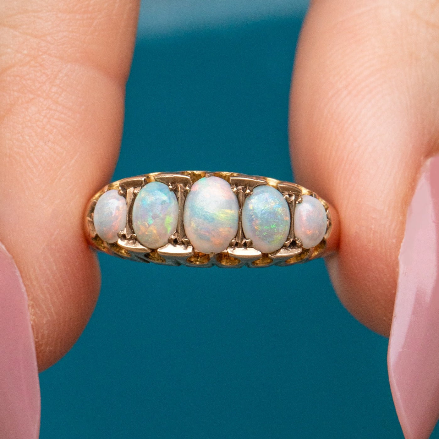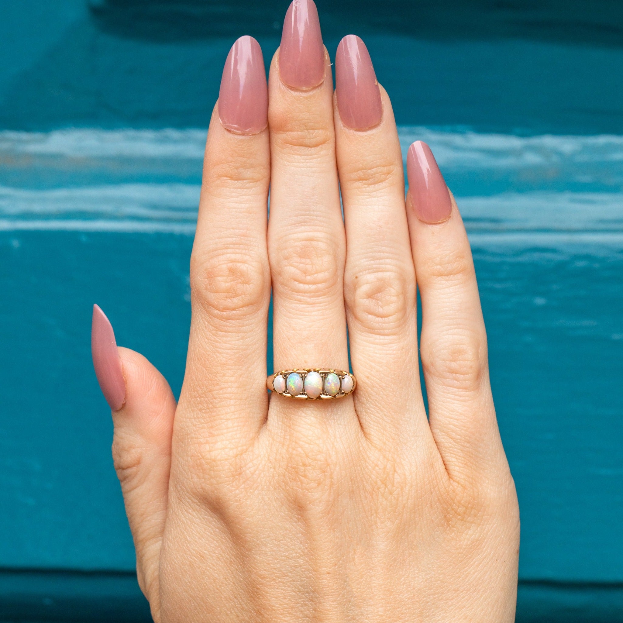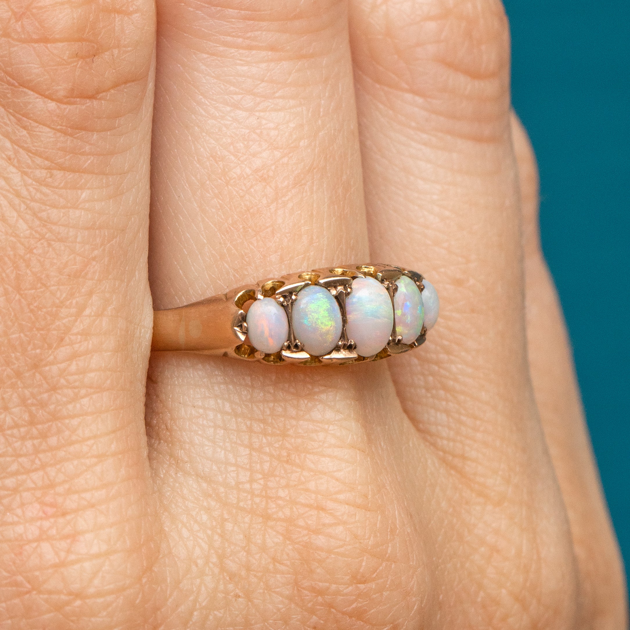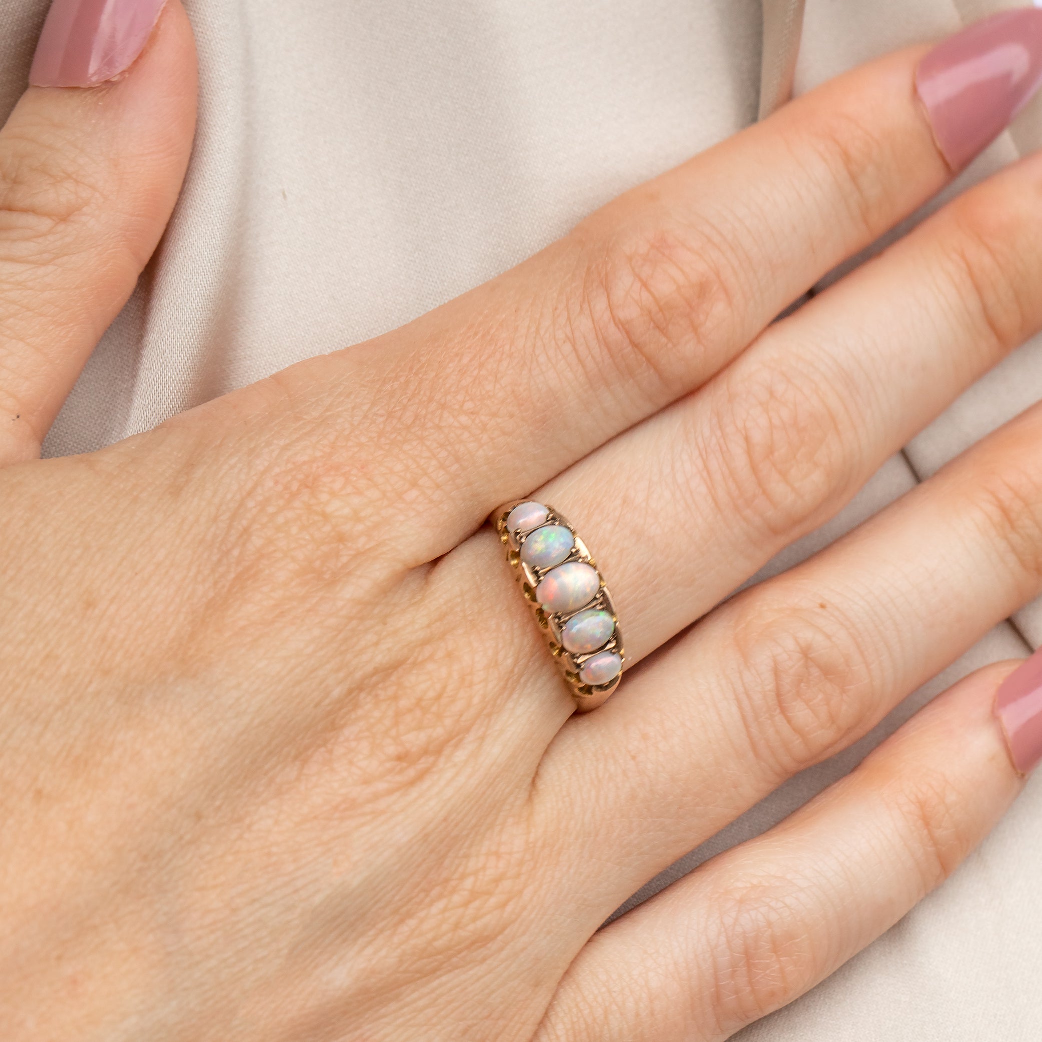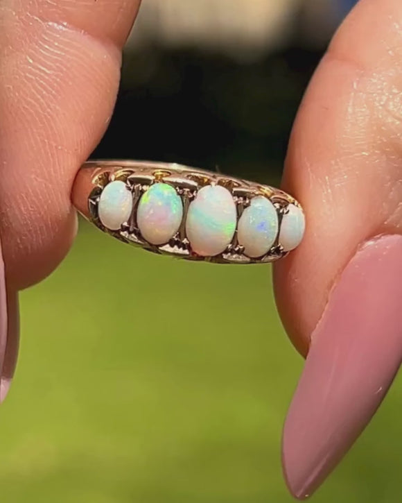 Edwardian 9ct Gold Opal Five Stone Ring