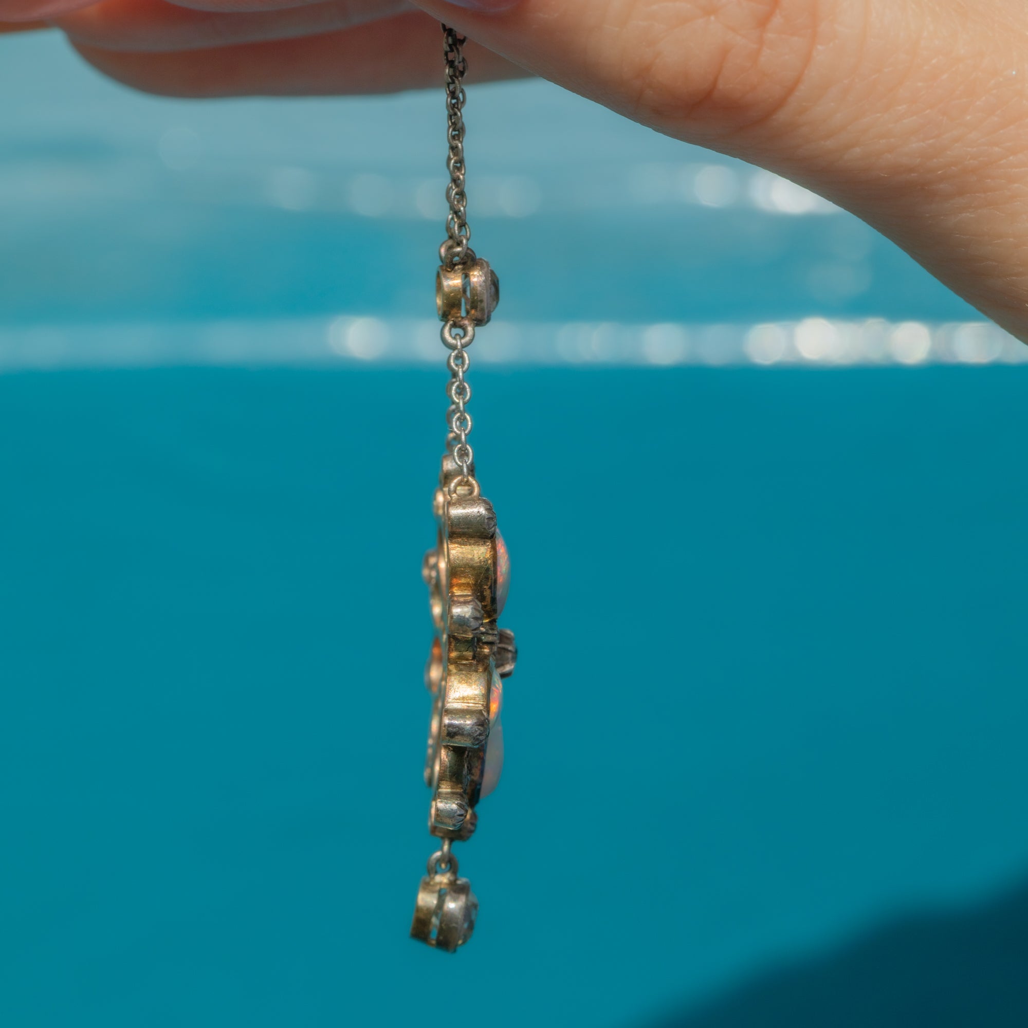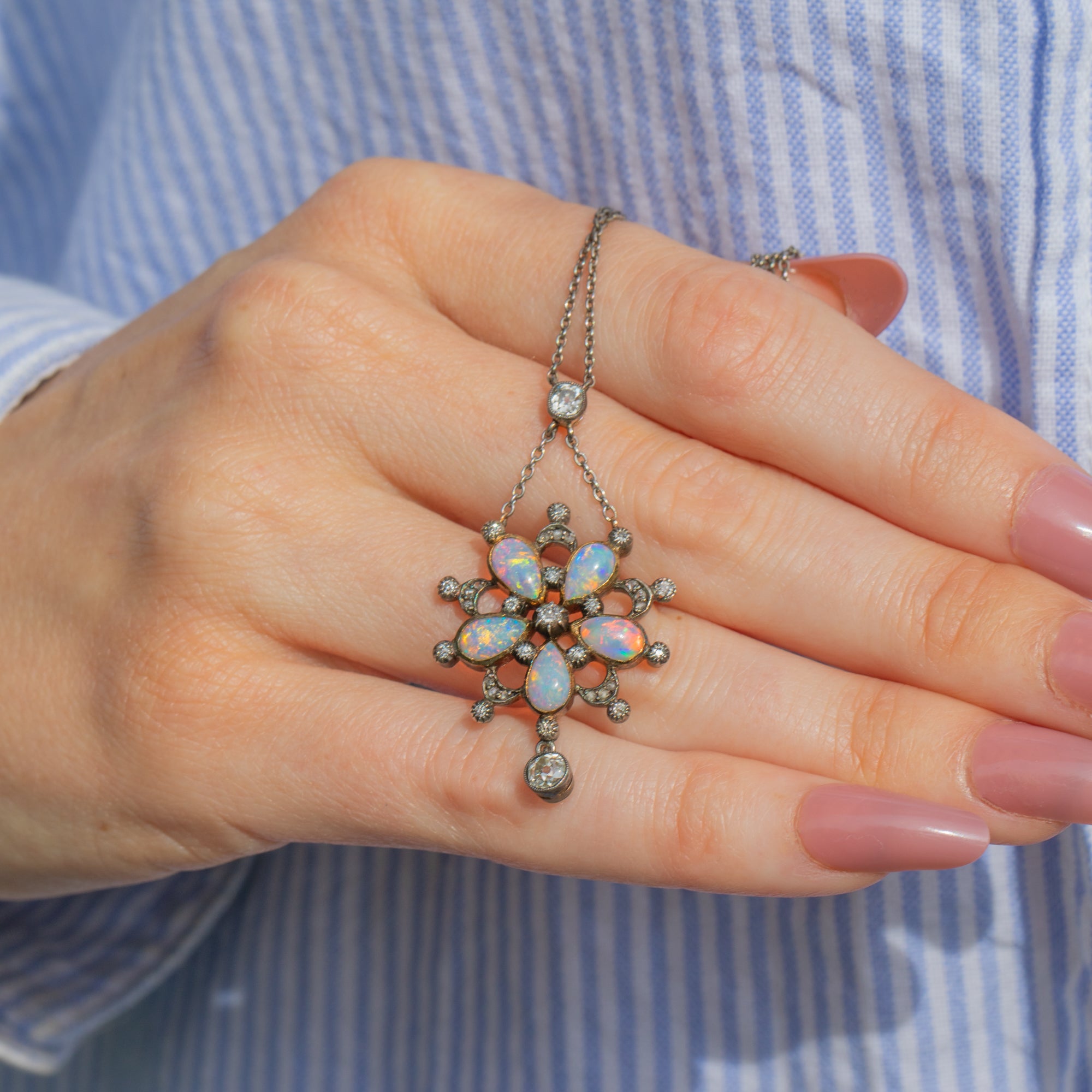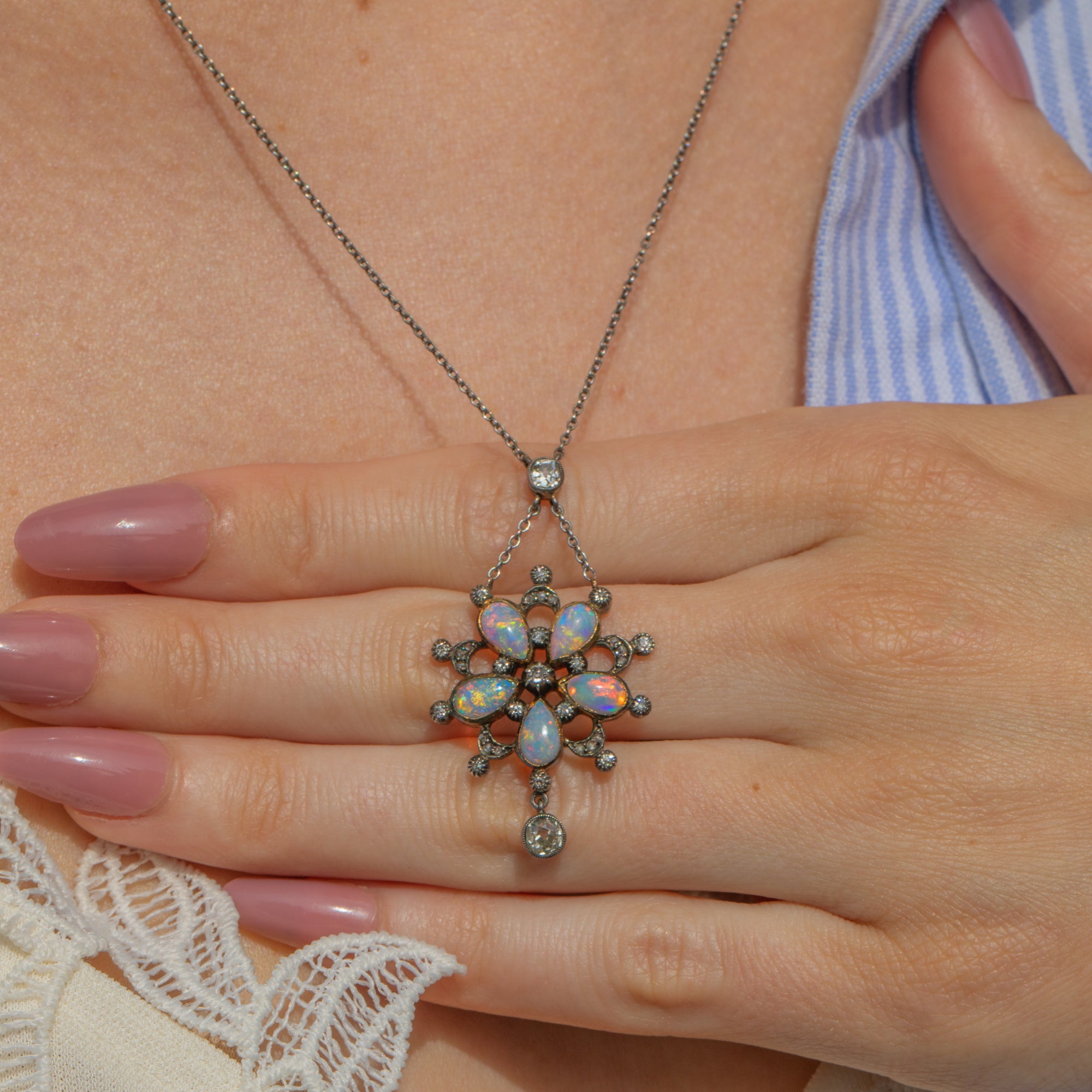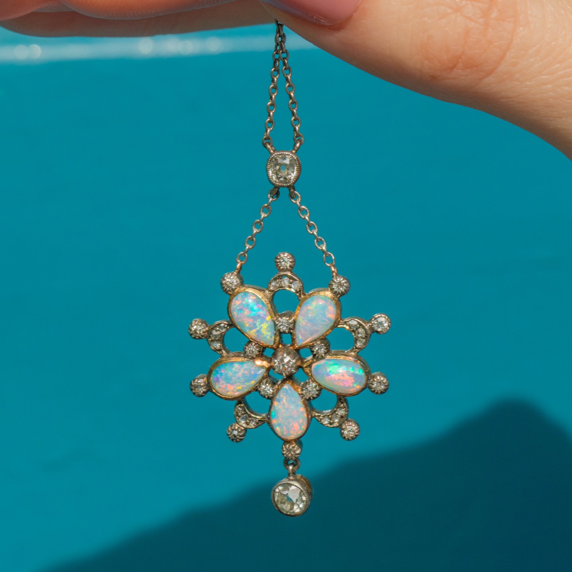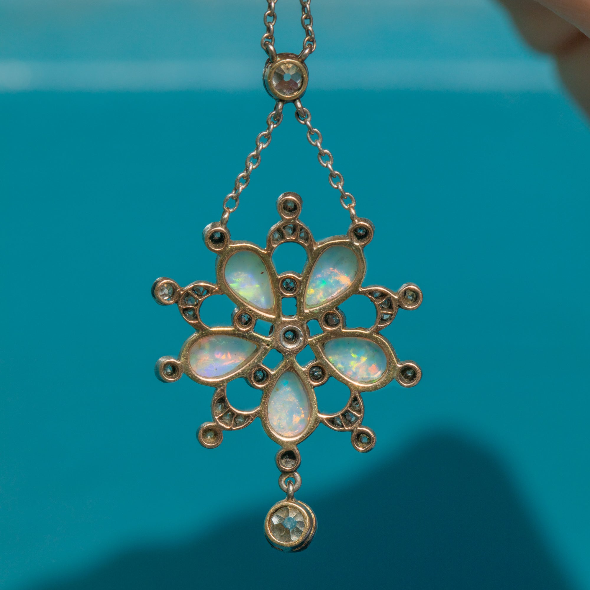 Edwardian Opal & Diamond Flower Drop Necklace