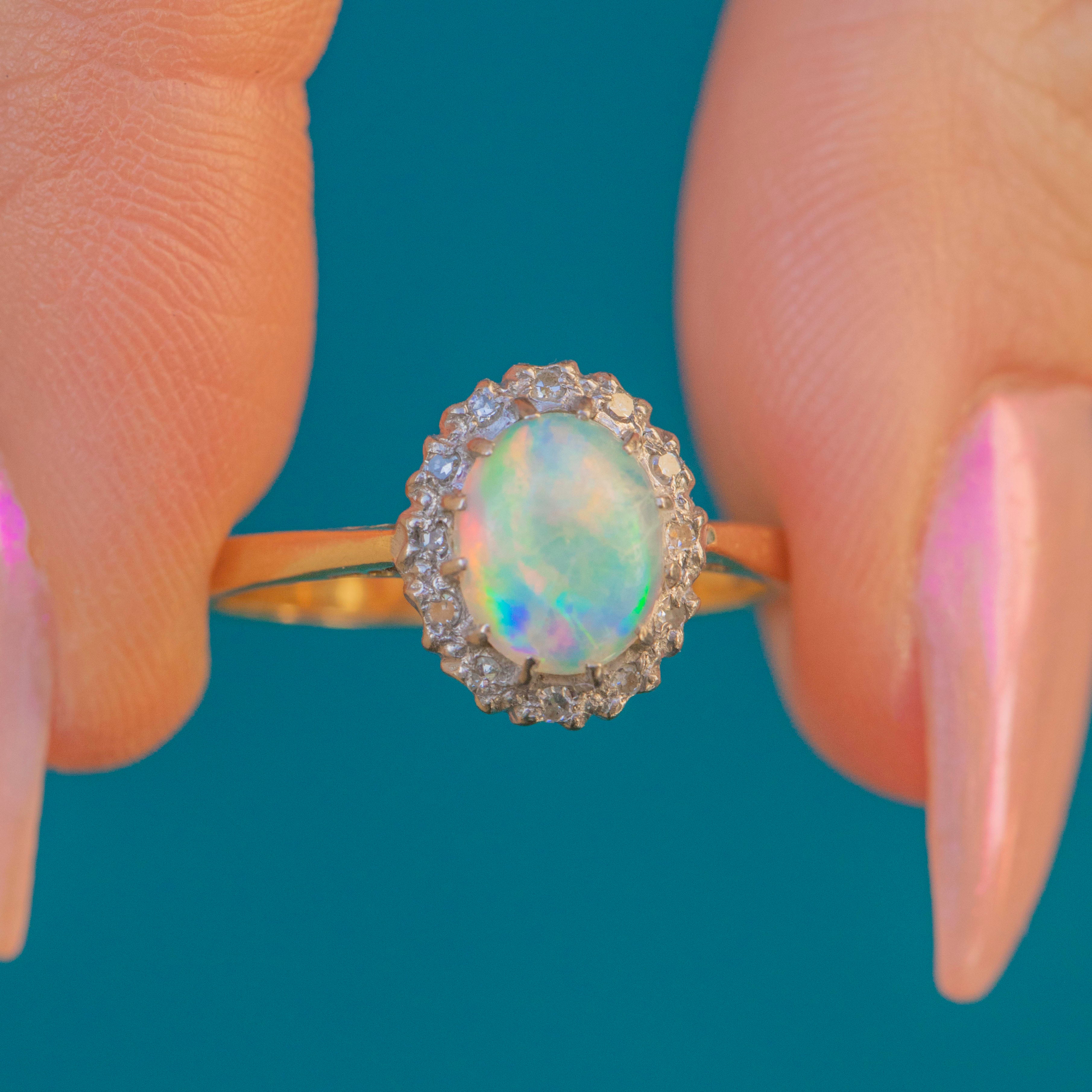 Edwardian Opal Diamond Oval Cluster Ring, 18ct Gold & Platinum