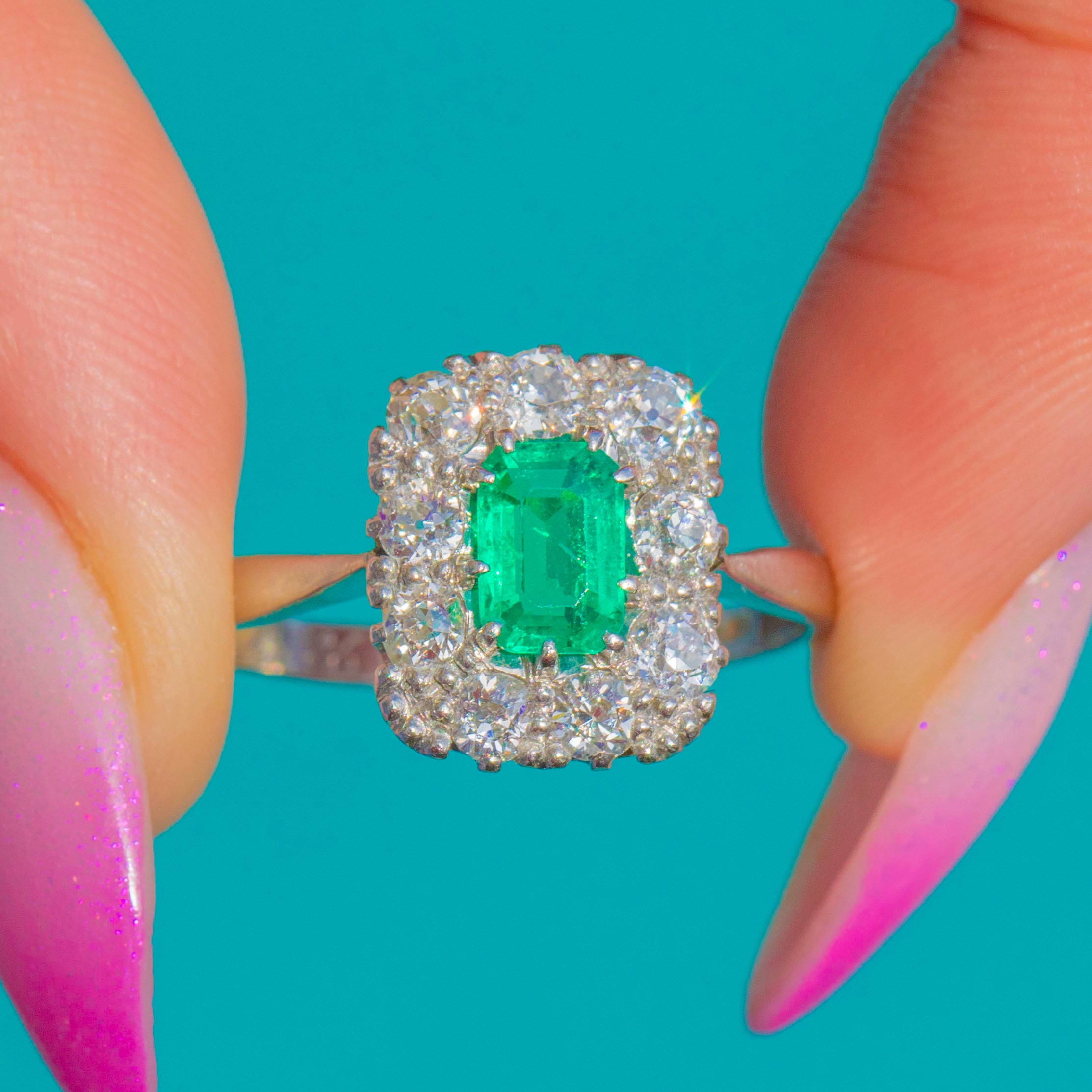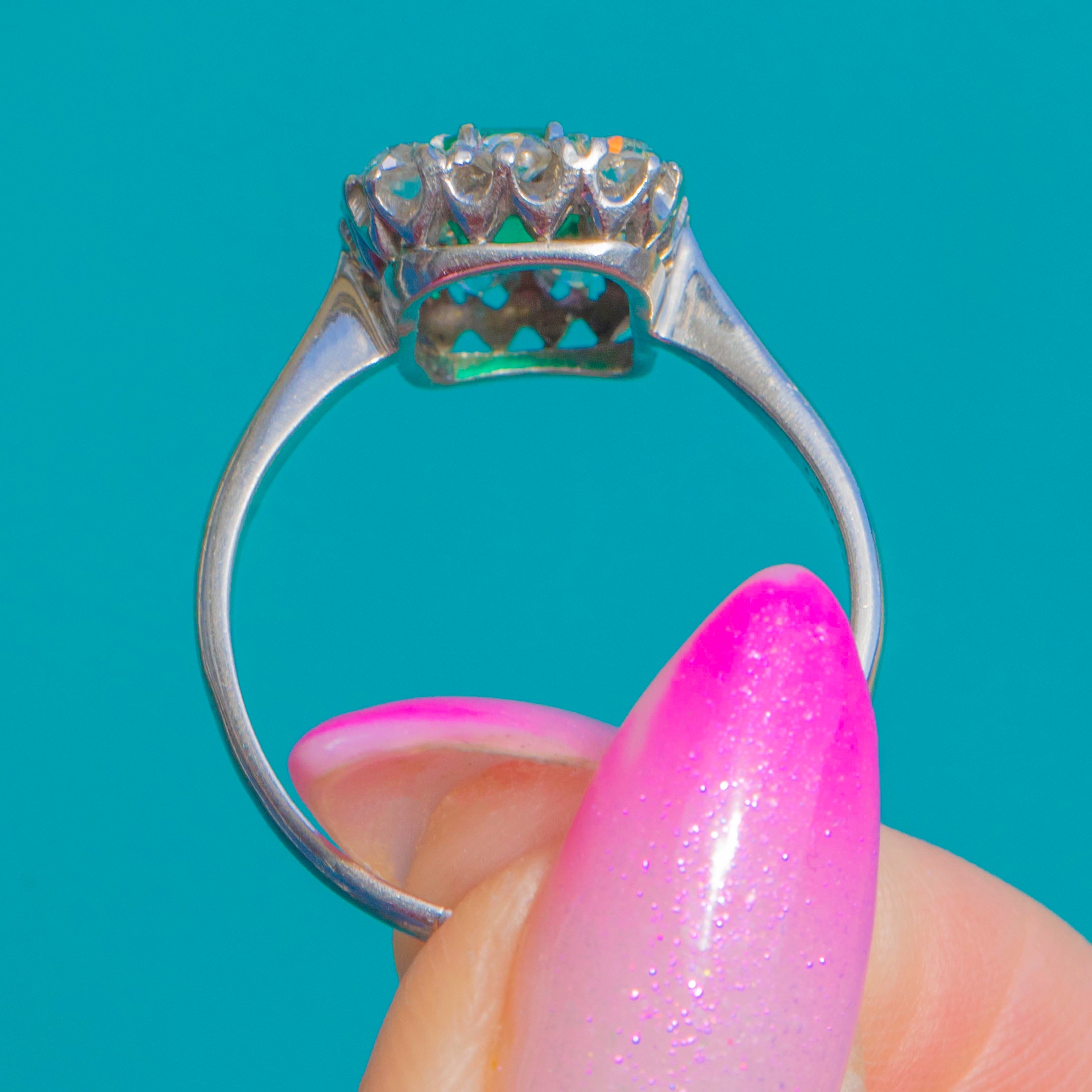 Edwardian Platinum Emerald Diamond Cluster Ring c.1905