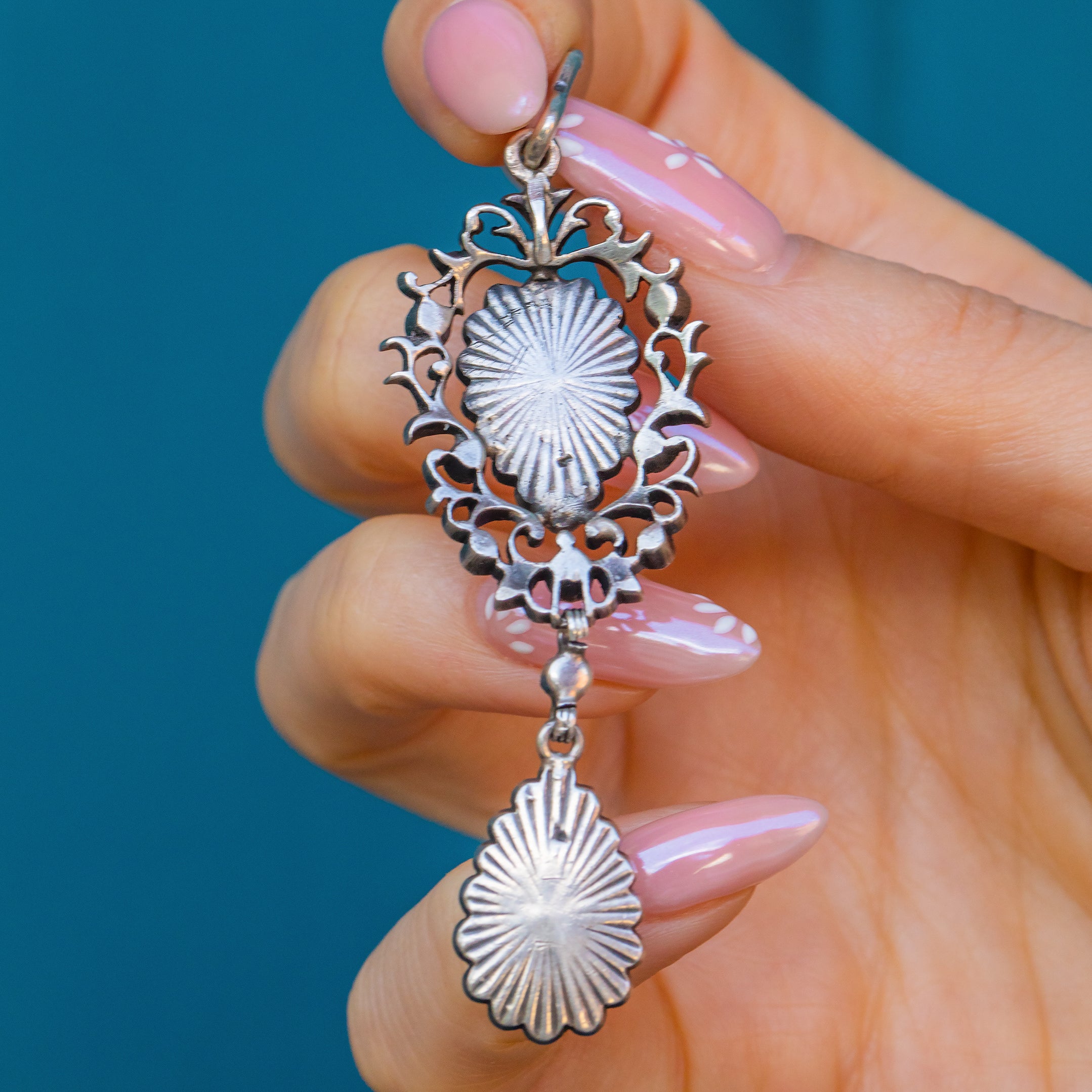 This Edwardian Silver blue & white pendant is an absolute vision! Beautifully crafted from Sterling Silver, this pendant looks like something from the Bridgerton set, although it was made a few eras later during the 1900s!