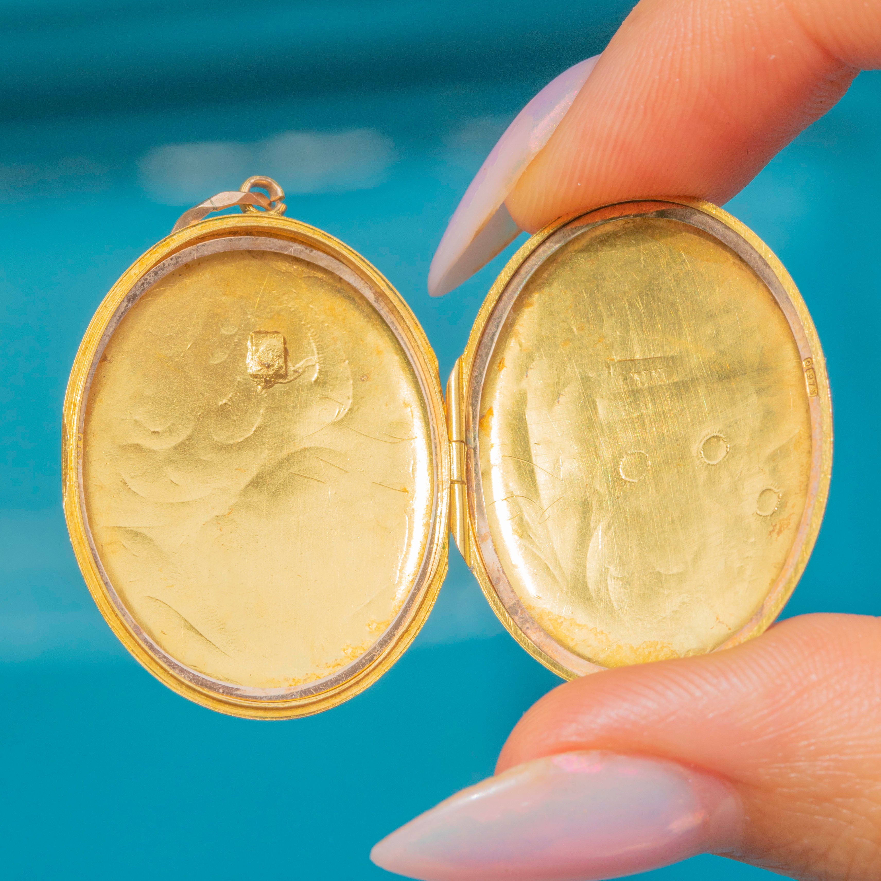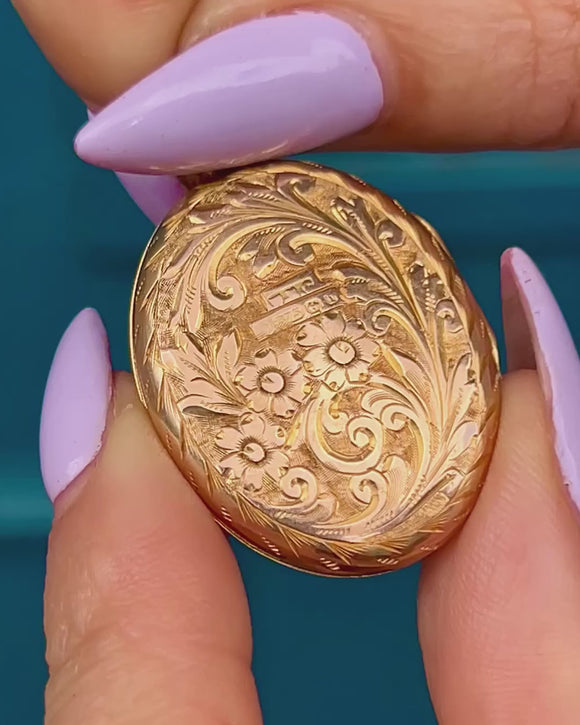 Edwardian Solid 9ct Gold Engraved Locket c.1908