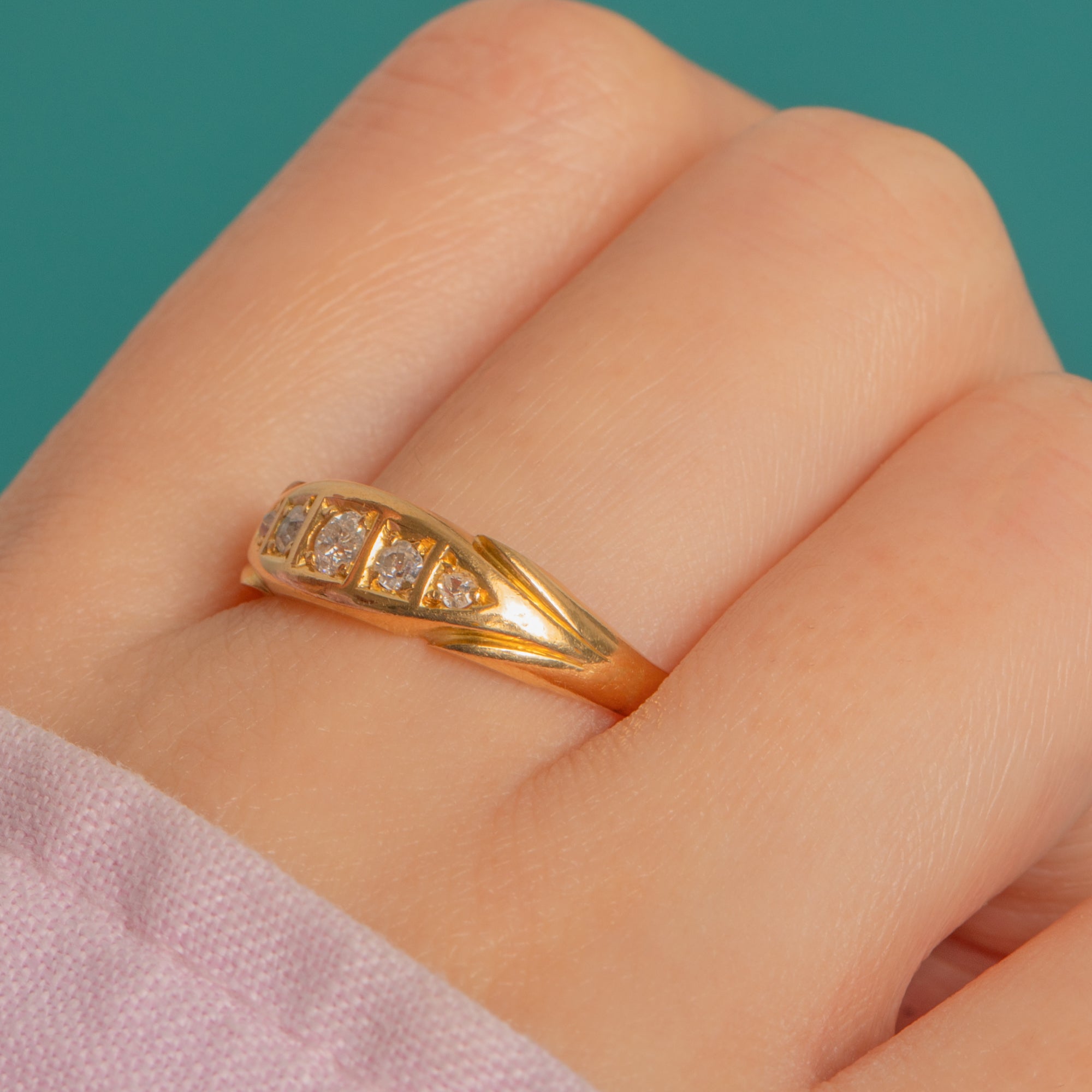 English Antique 18ct Gold Diamond Five-Stone Stacking Ring Item added