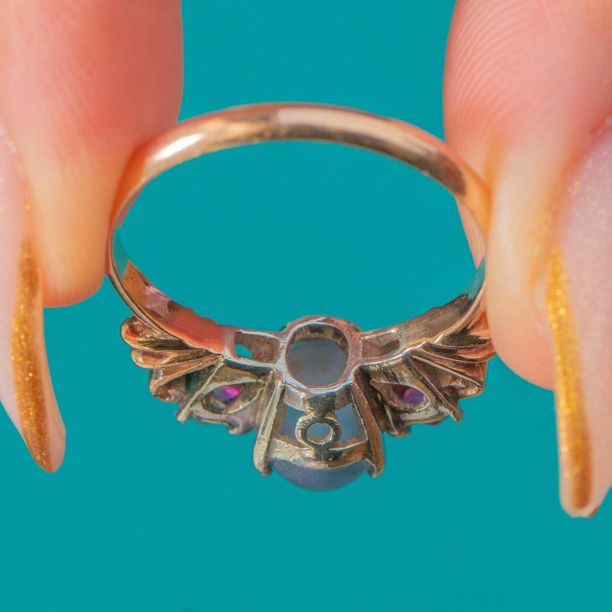 European Art Deco Star Sapphire & Ruby Ring 9ct Gold