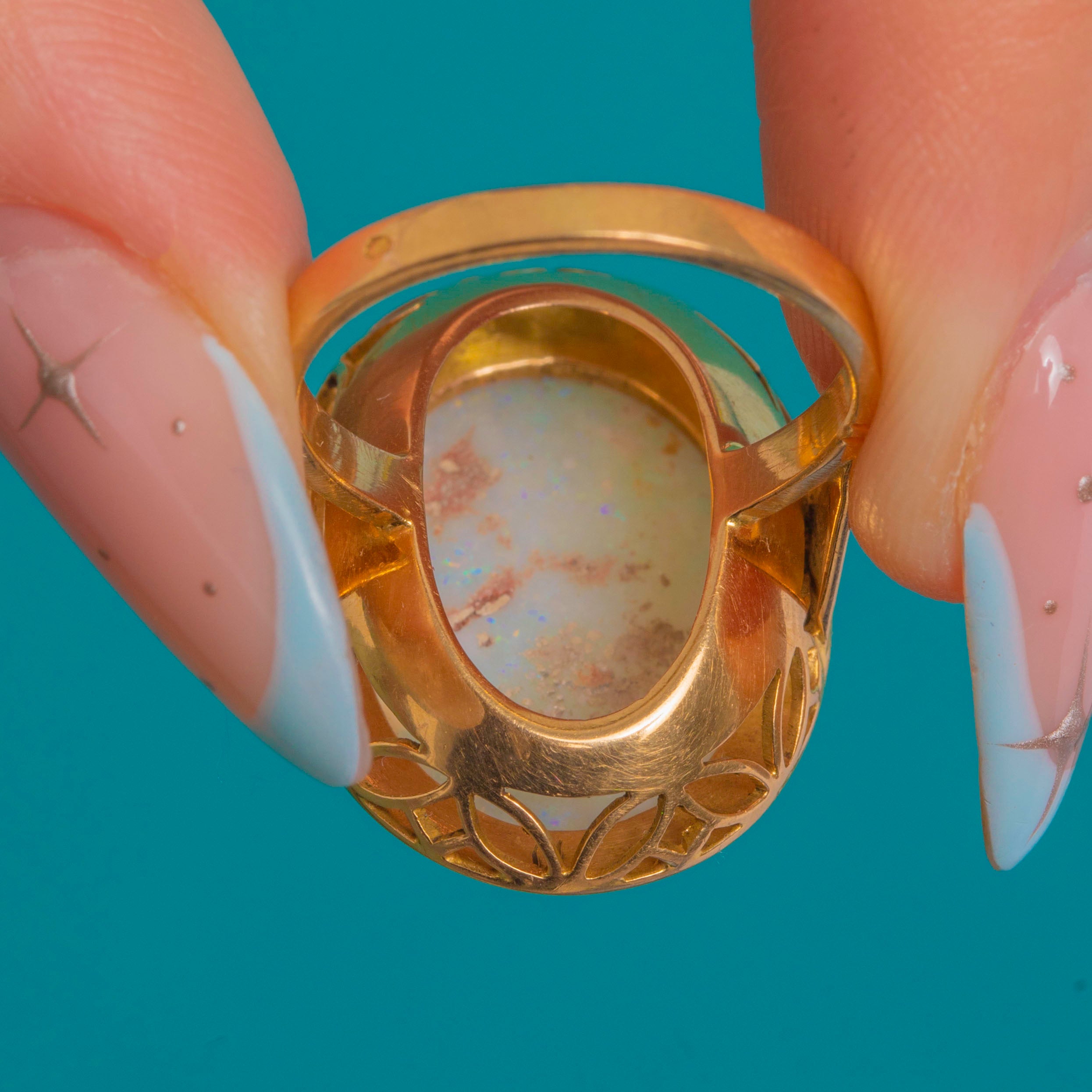 French 18ct Gold Solid Opal Cocktail Ring, 4.50ct Opal