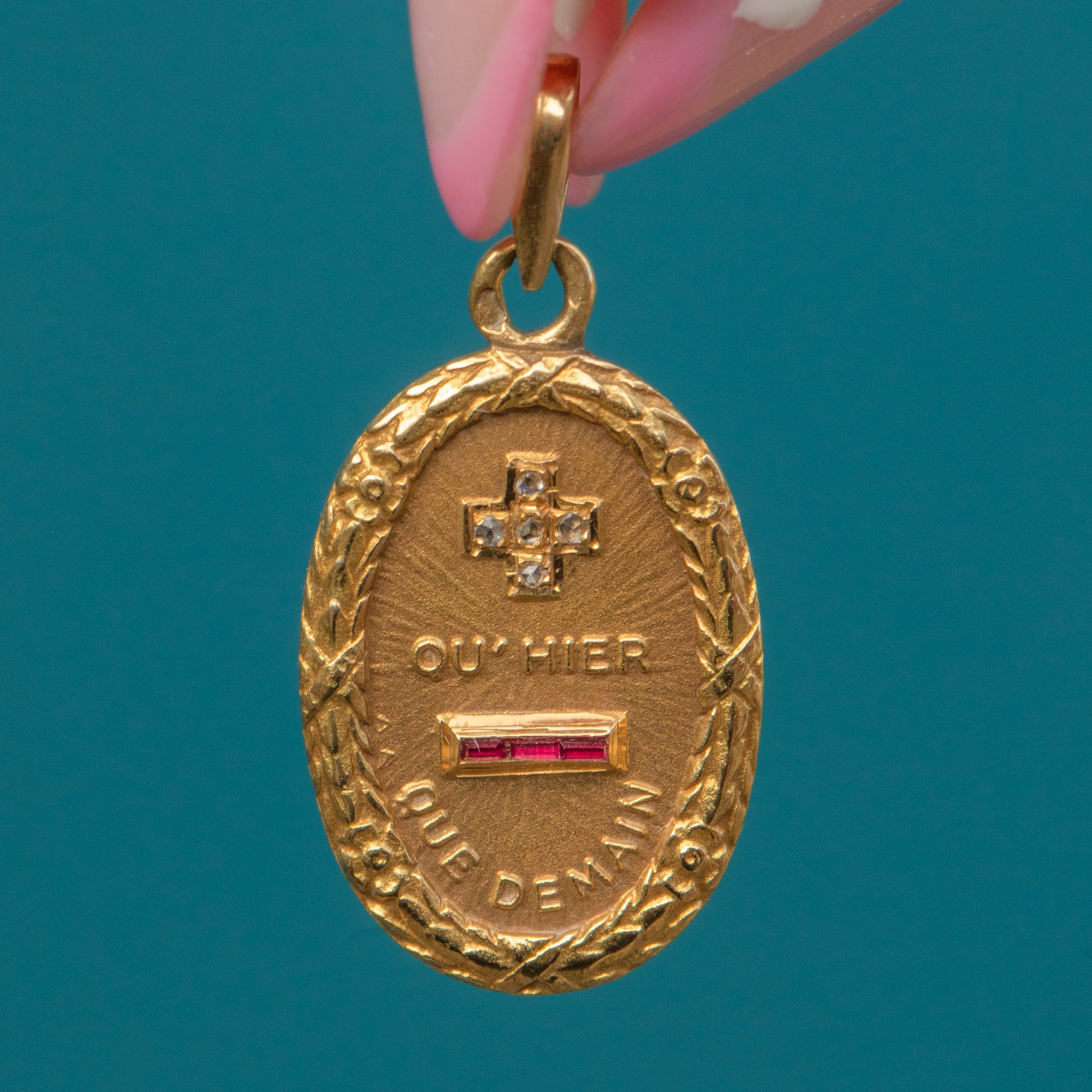 French Saint Augis Love Token 18ct Gold Ruby Diamond