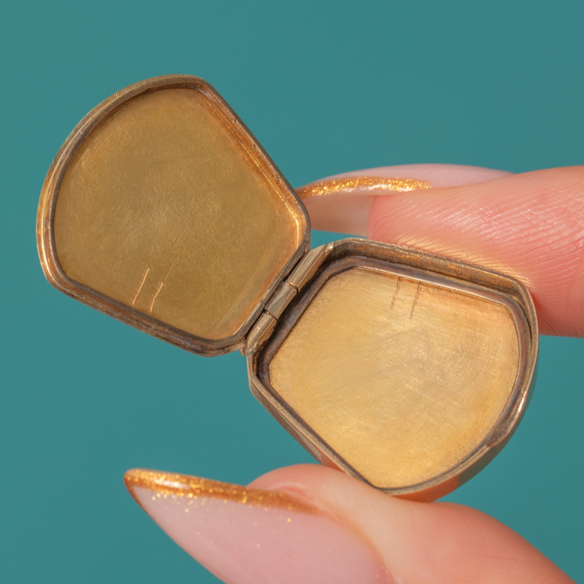 VERY GOOD: The locket is well preserved with clean Art Deco geometry and a soft, even antique sheen. Light age-wear in keeping with use but no dents or damage. Opens and closes securely, with both internal compartments intact and ready for photos.