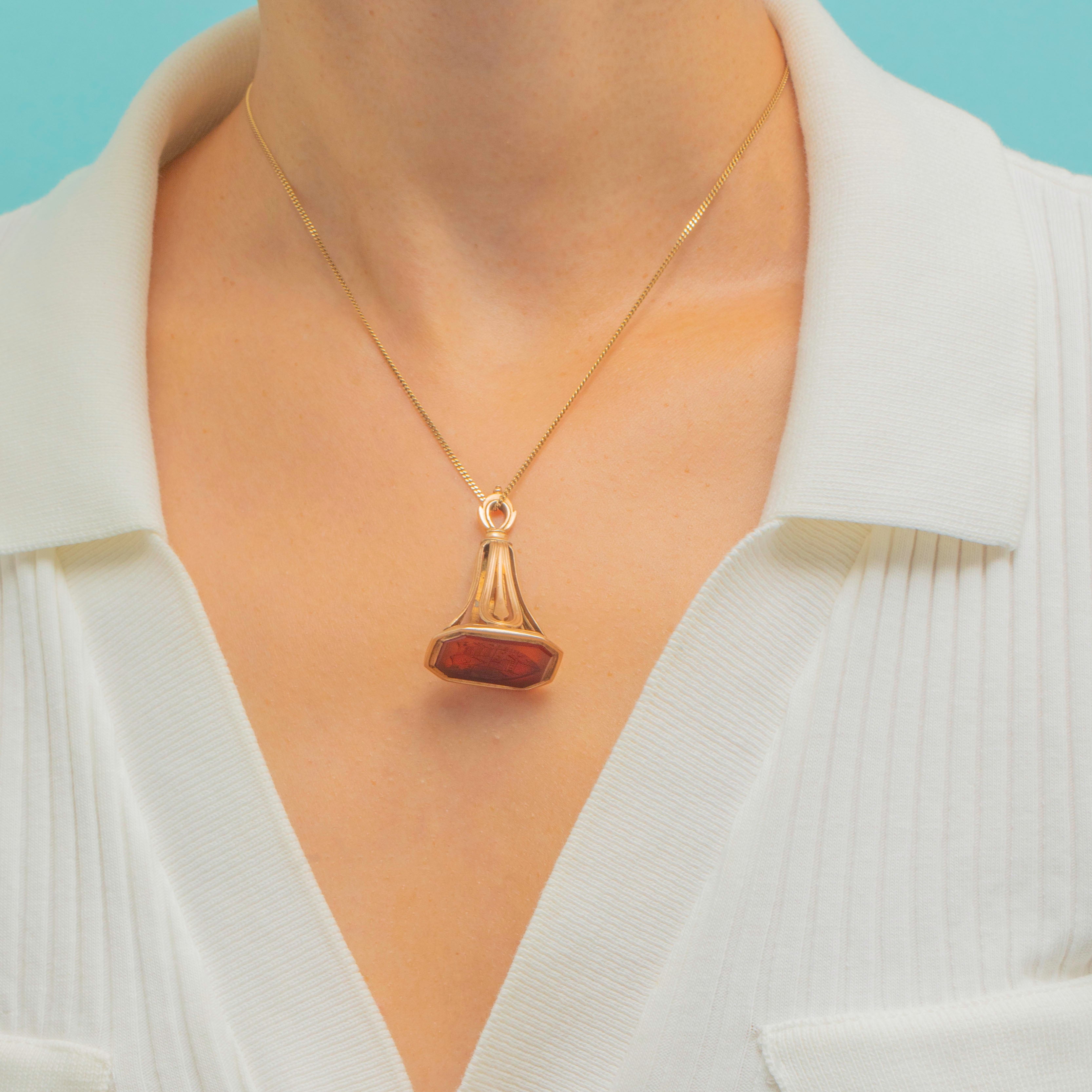 A striking Georgian Carnelian Agate intaglio fob pendant crafted in solid 15ct Gold, steeped in history and craftsmanship...