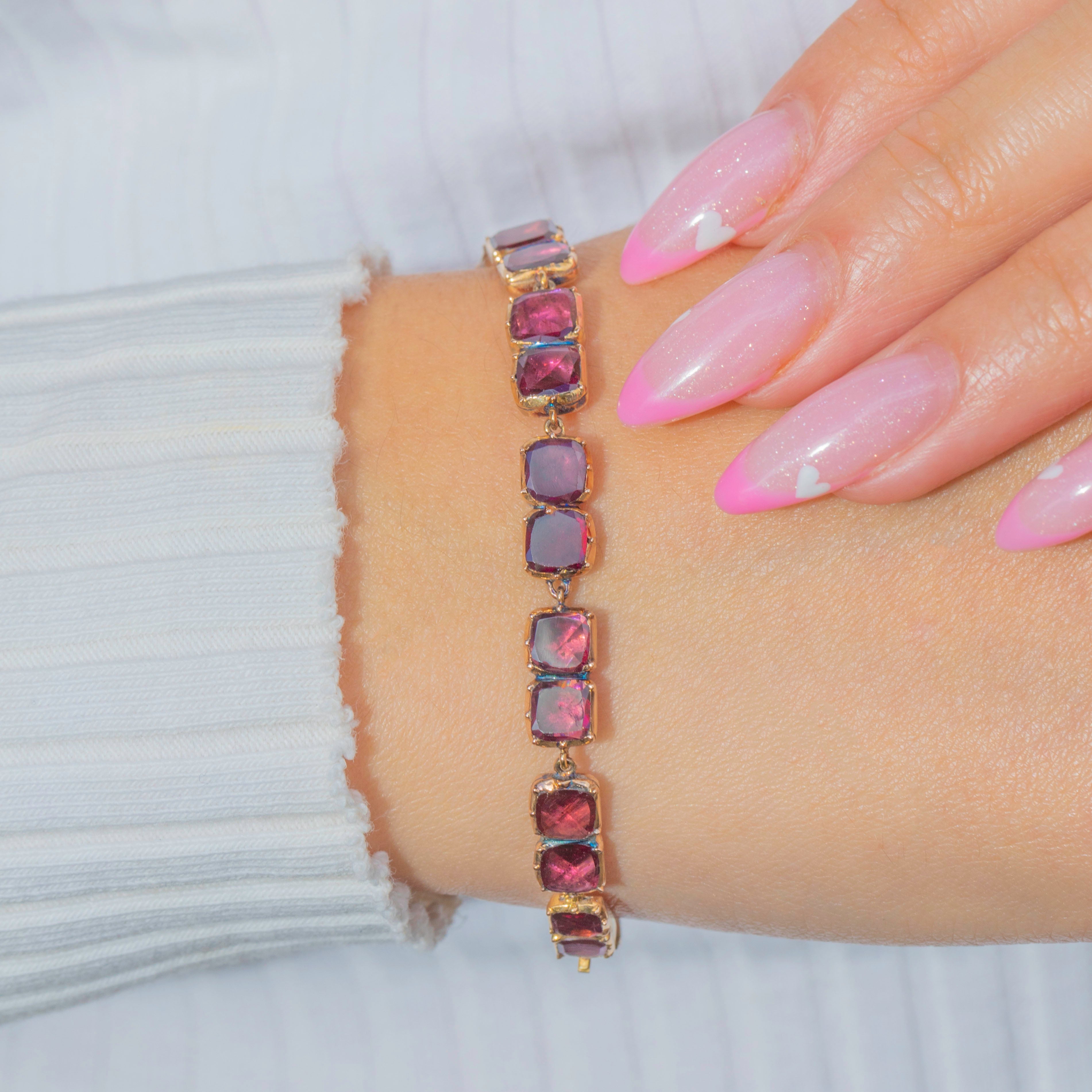 Elegant and refined, this antique Garnet bracelet embodies the romantic luxury of the Georgian era. Perfectly proportioned for stacking or worn alone for a statement of antique sophistication.