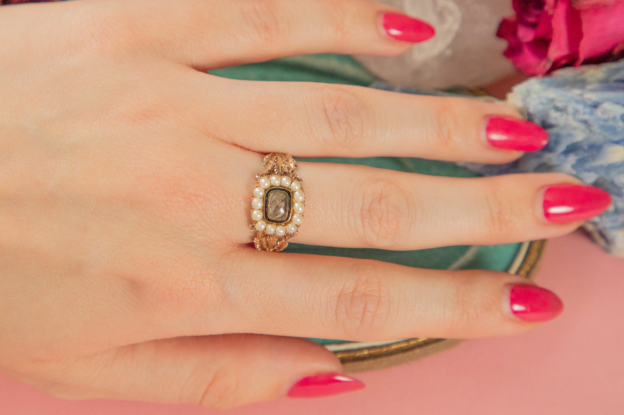 This antique ring is a true testament to Georgian sentimentality, her enclosed hair work being a classic feature of Georgian mourning jewellery. Incredibly, the inscribed memoir on her inside band dates this ring all the way back to 1831! She epitomises the unique charm which accompanies antique jewellery, and would make a wonderful addition to your collection.