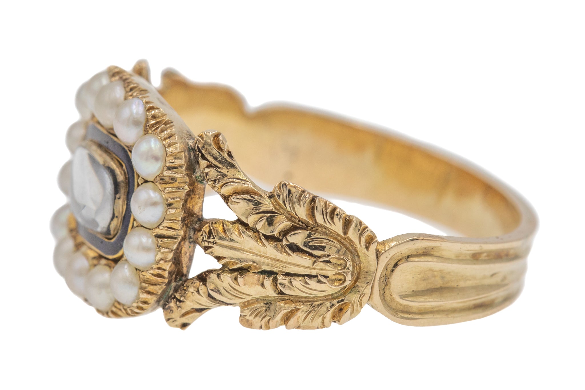 Georgian 15ct Gold Pearl Black Enamel Cluster Ring