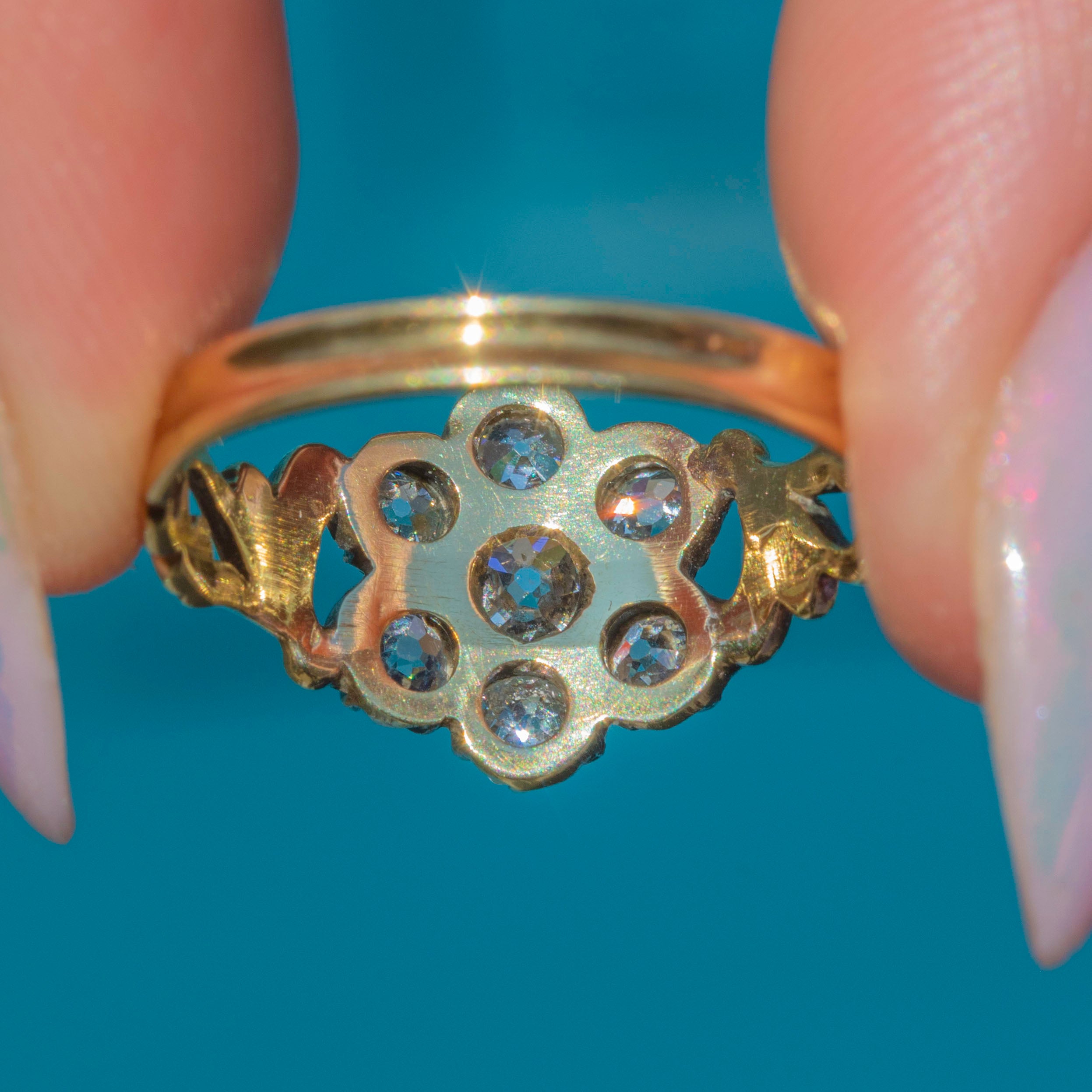Georgian 18ct Gold Diamond Flower Cluster Ring c.1820, 0.60ct