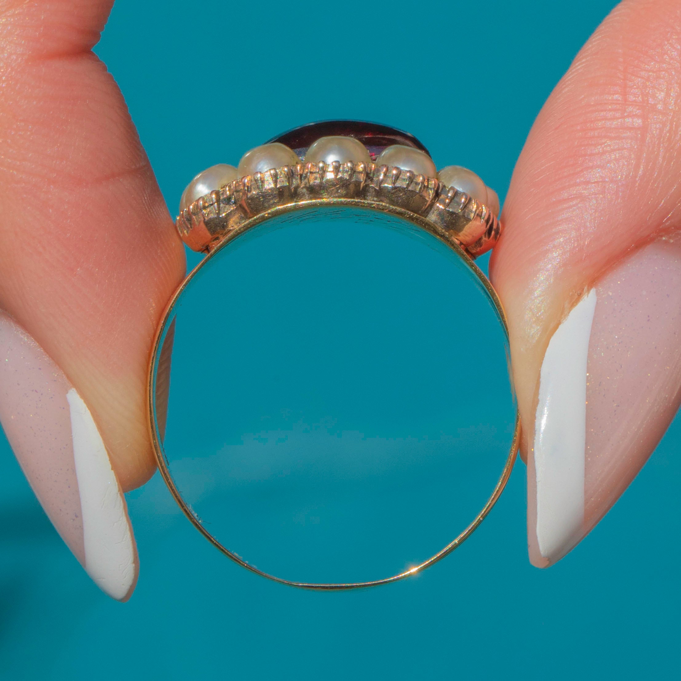 18ct Gold Georgian Garnet Cabochon Pearl Cluster Ring 1.60ct, c.1814