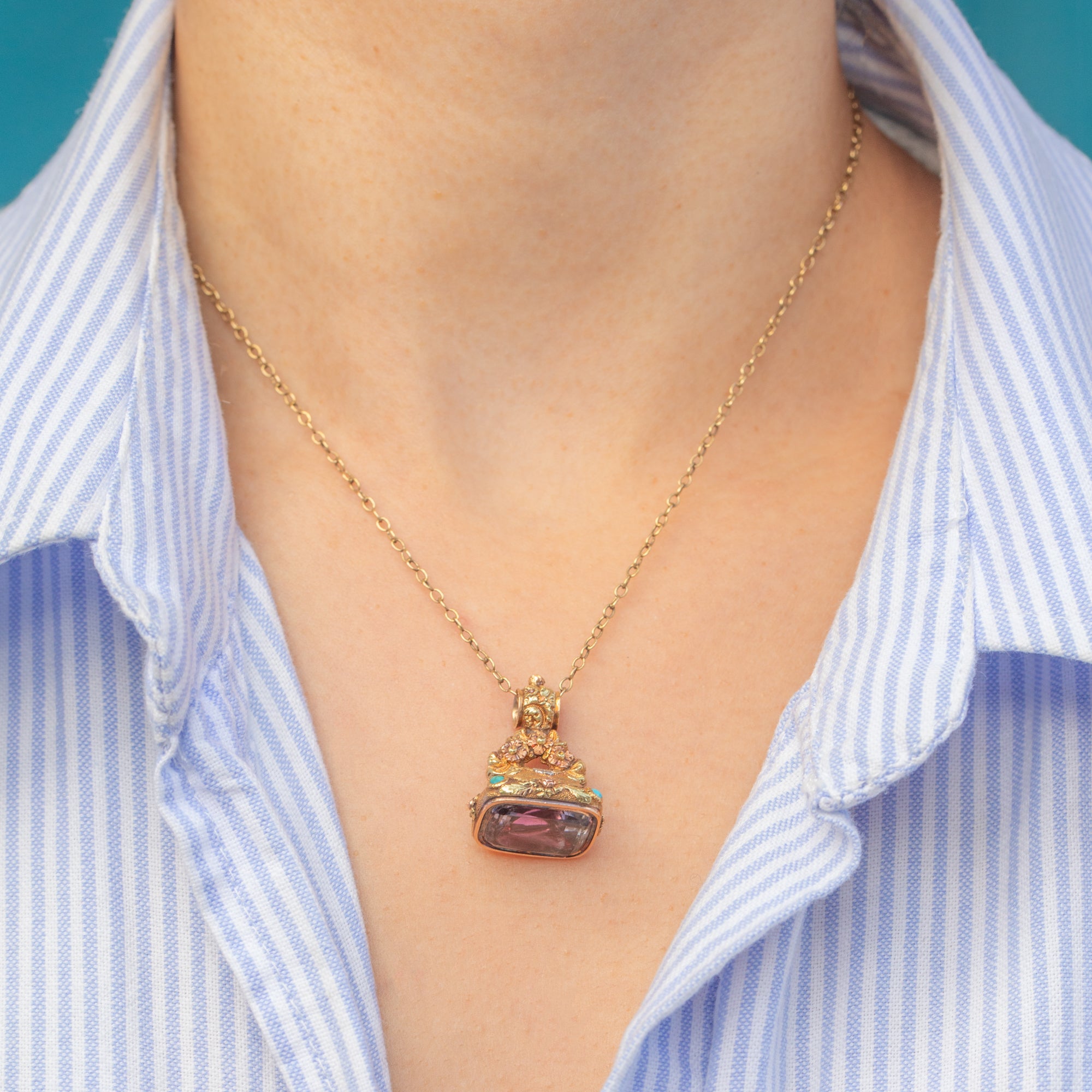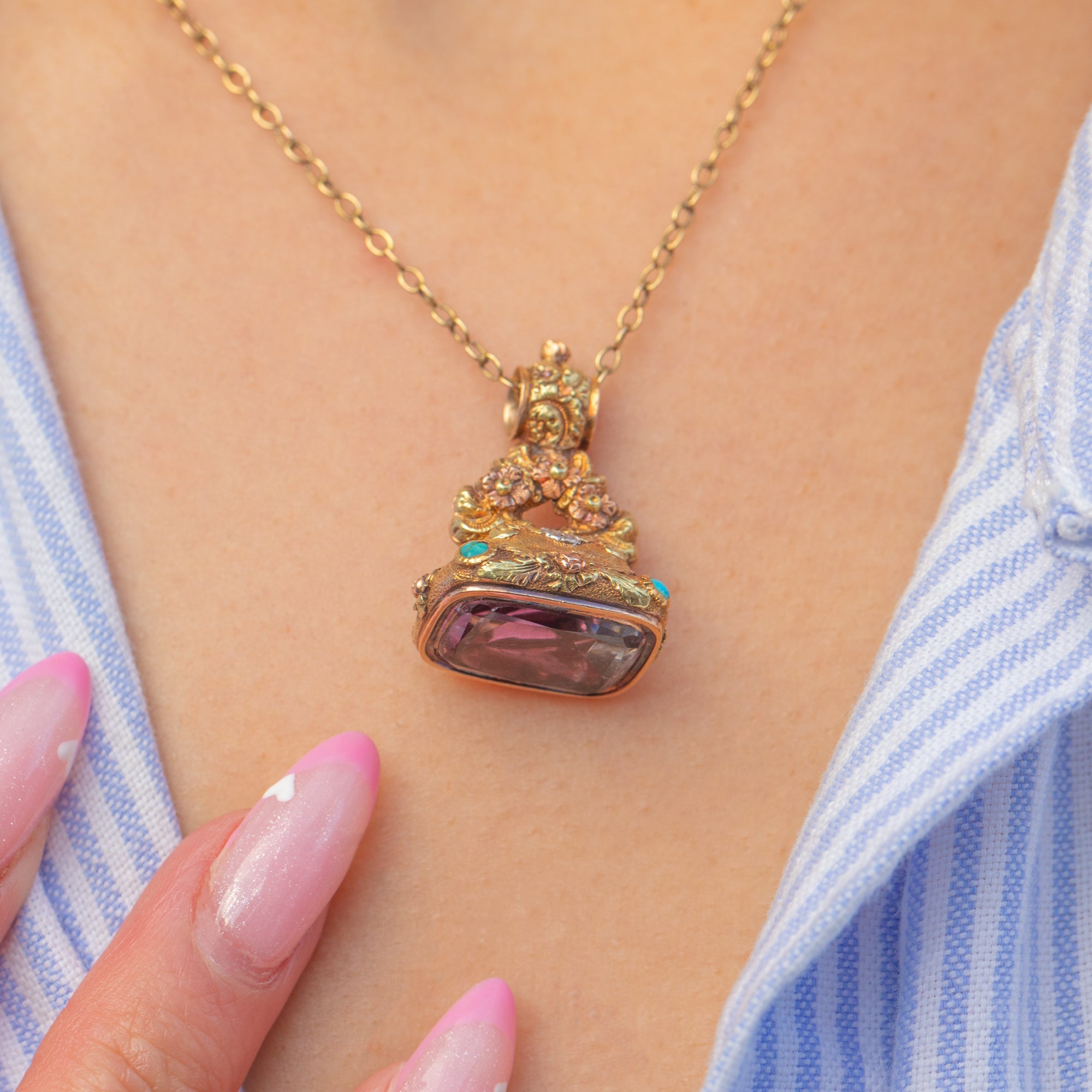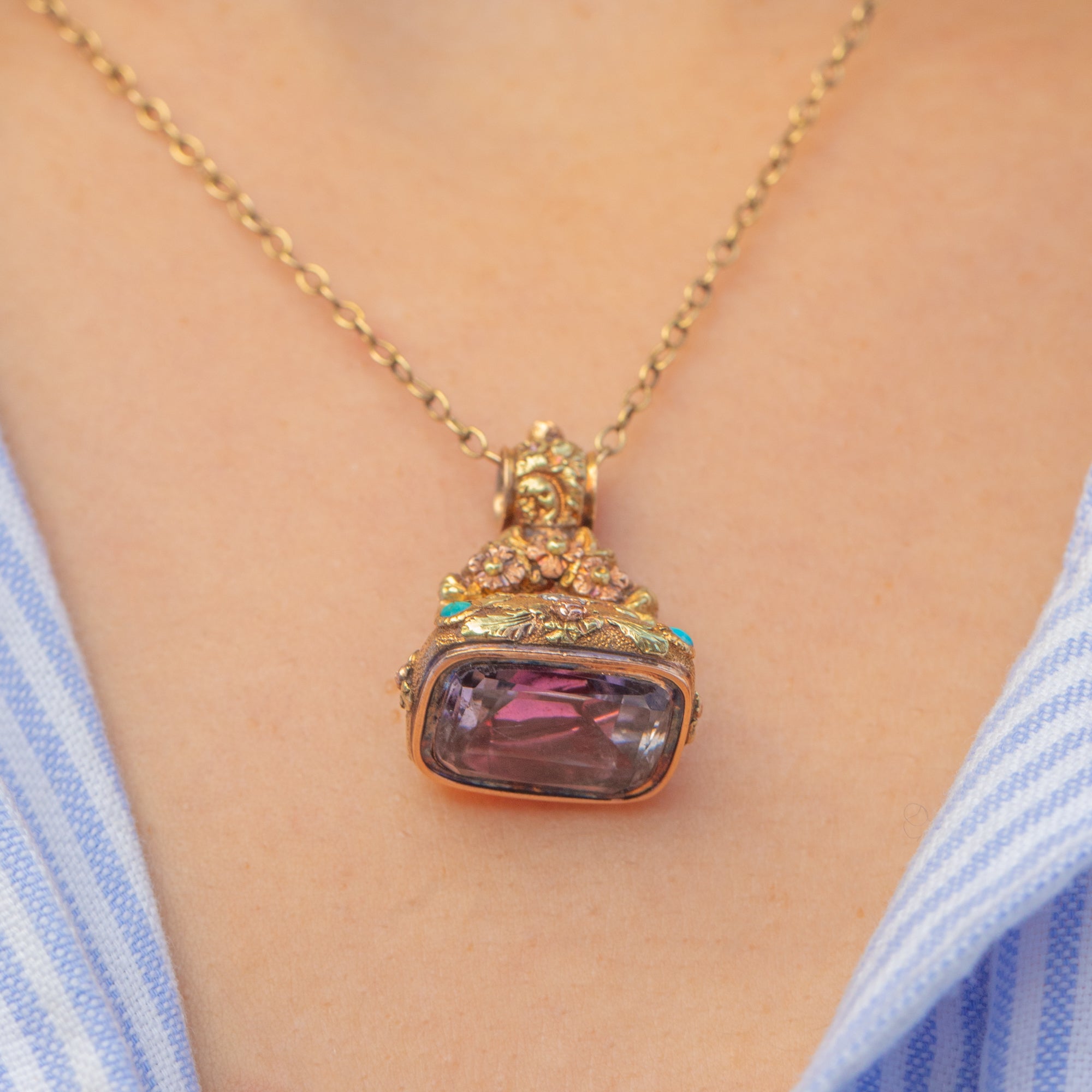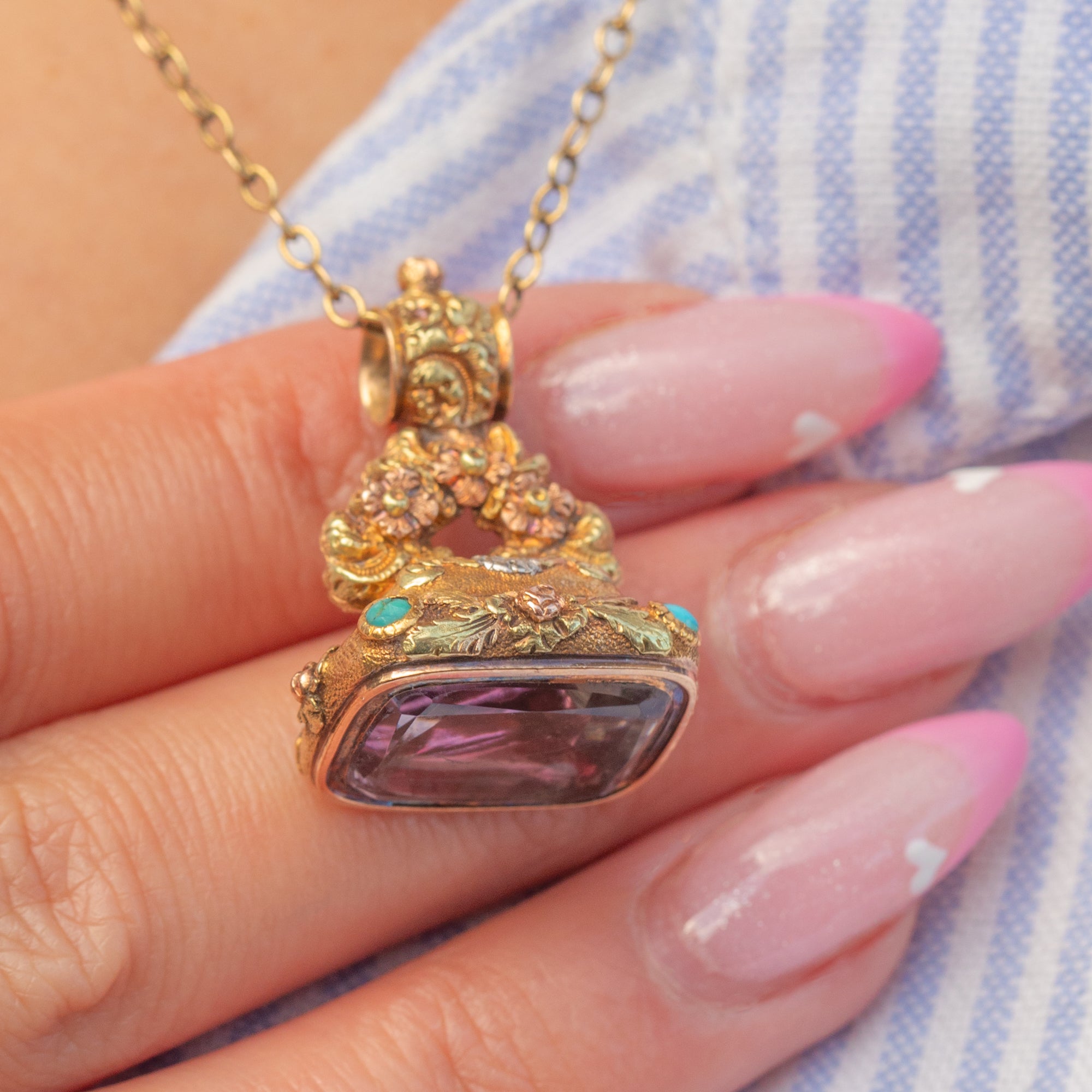 Georgian 18ct Gold Three Colour Amethyst Turquoise Fob