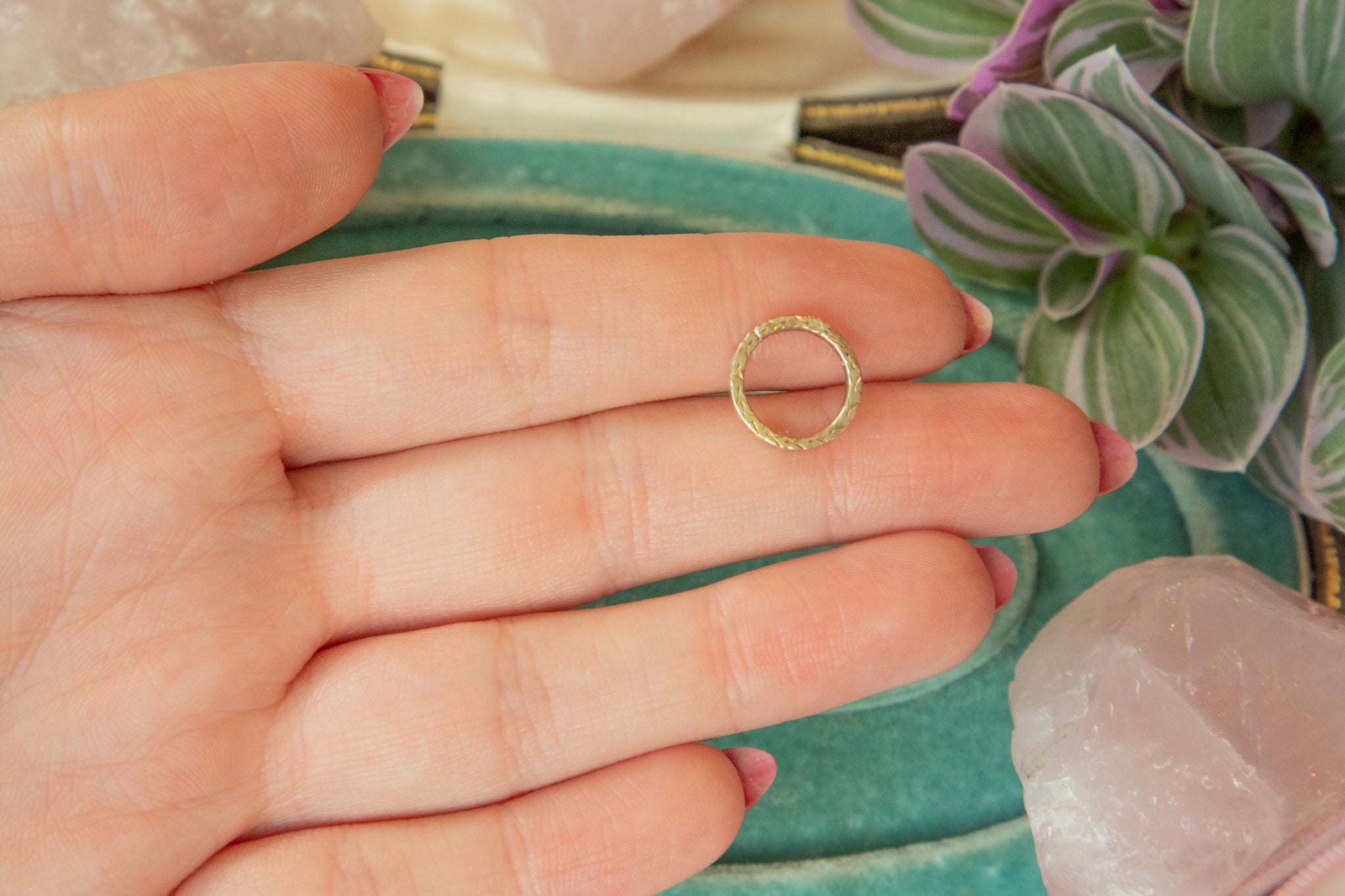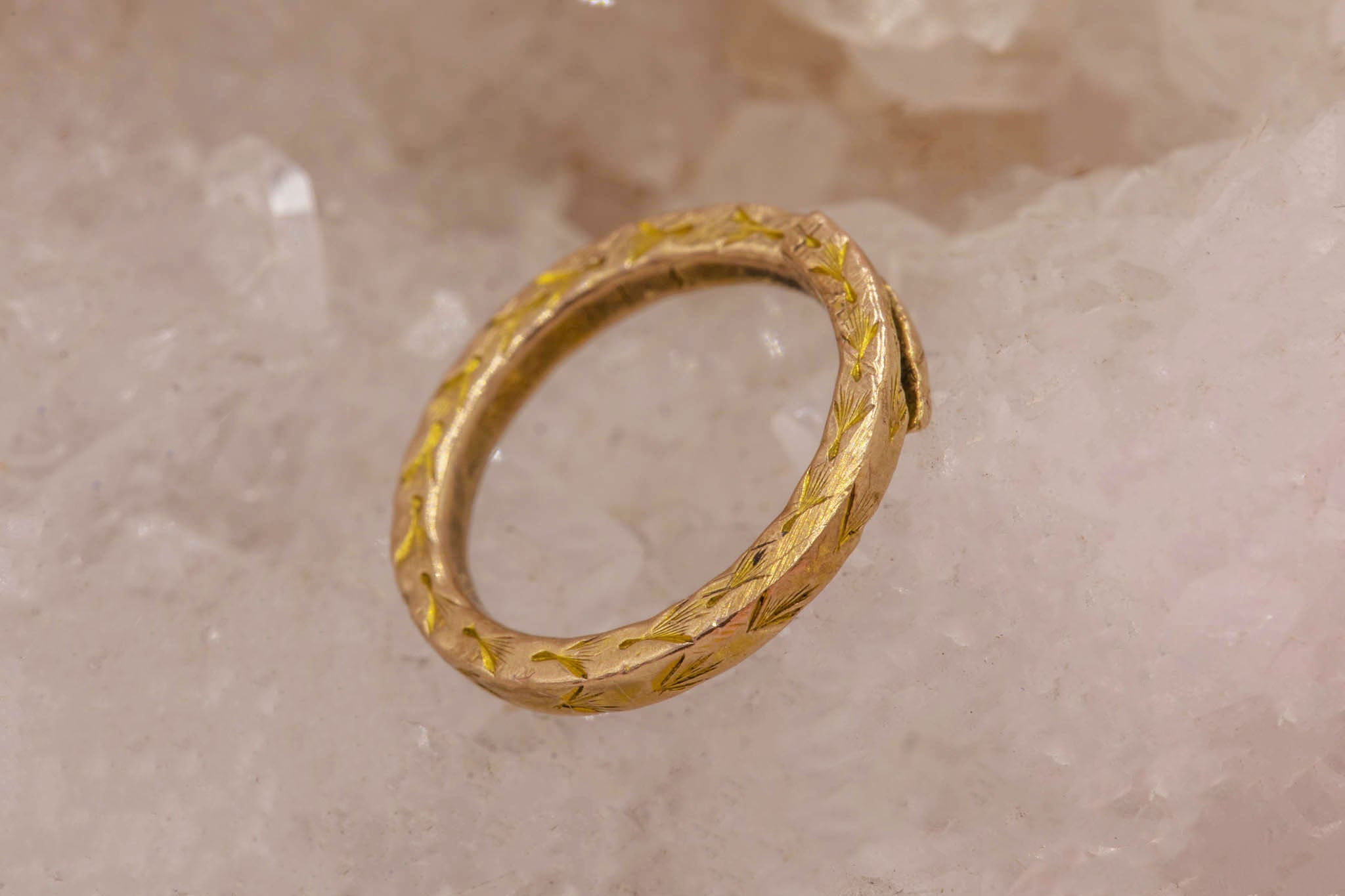 What a gorgeous little Georgian 9ct Gold engraved box edge split ring! Split rings are the most useful item to have in your jewellery collection, and this sweet one is the perfect size.