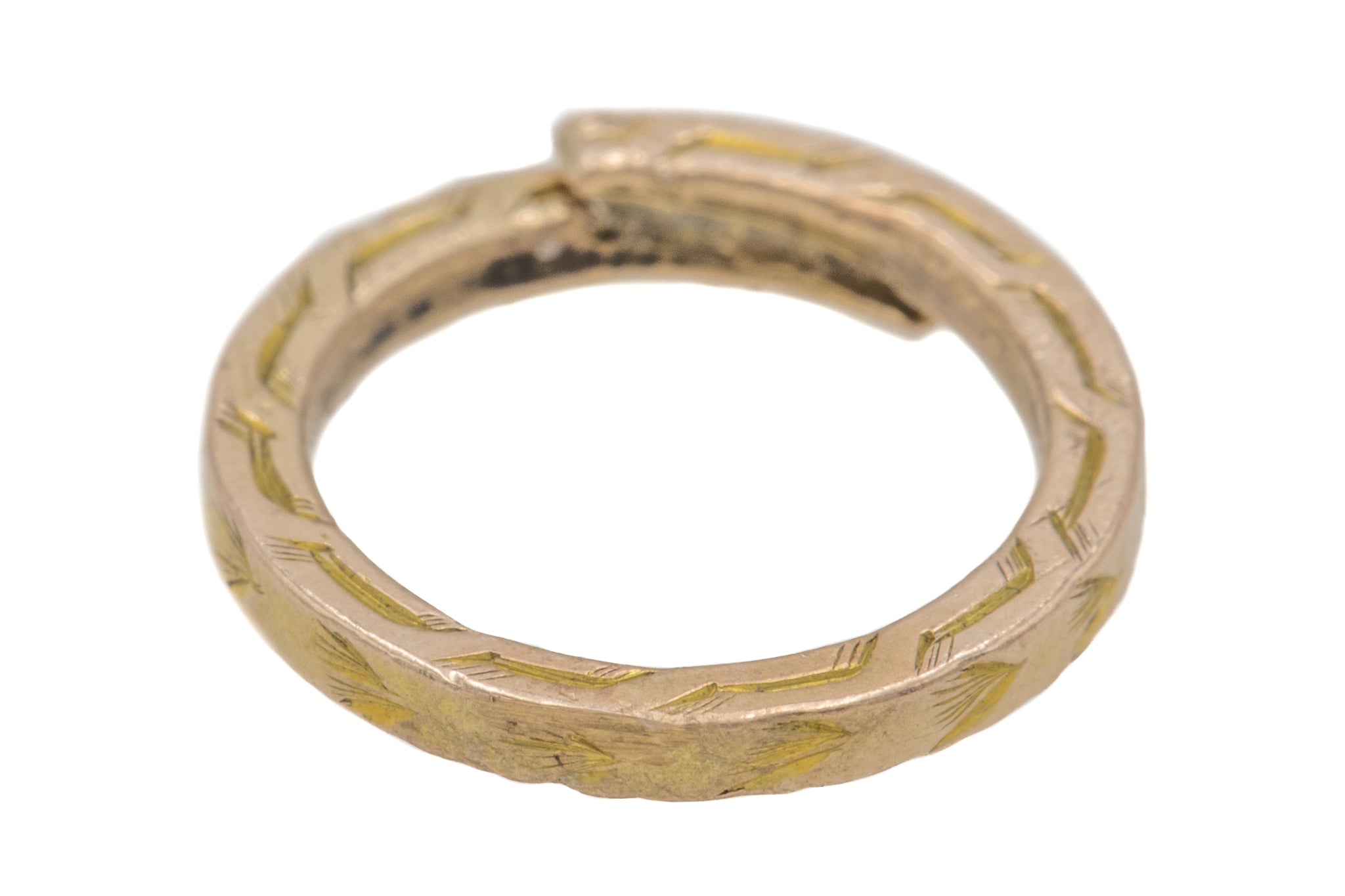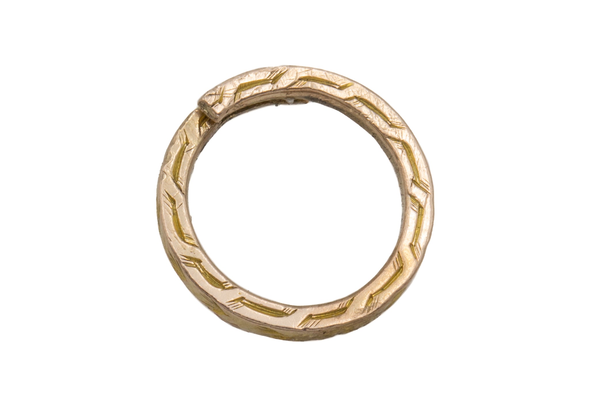 Georgian 9ct Gold Engraved Box Edge Split Ring, 12mm