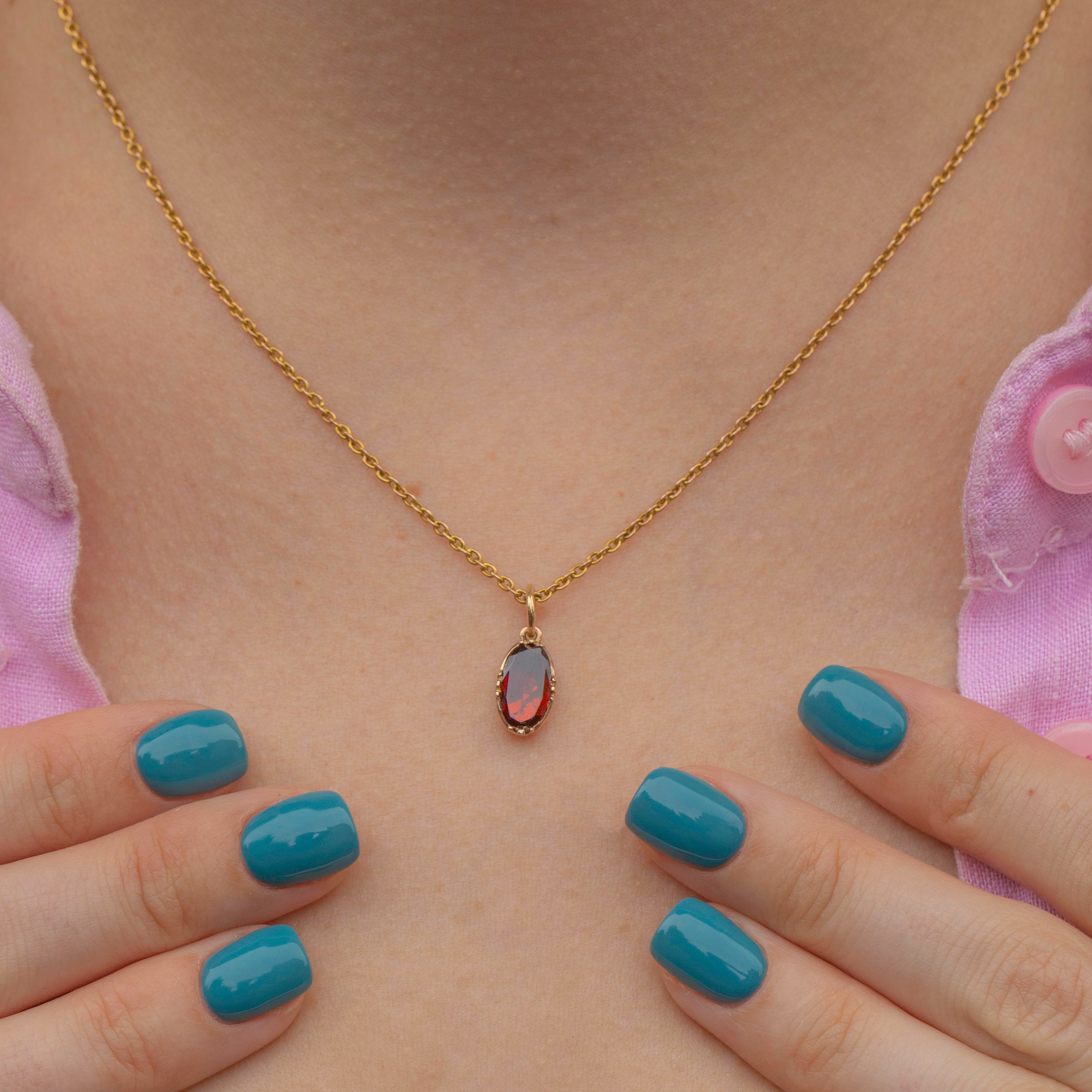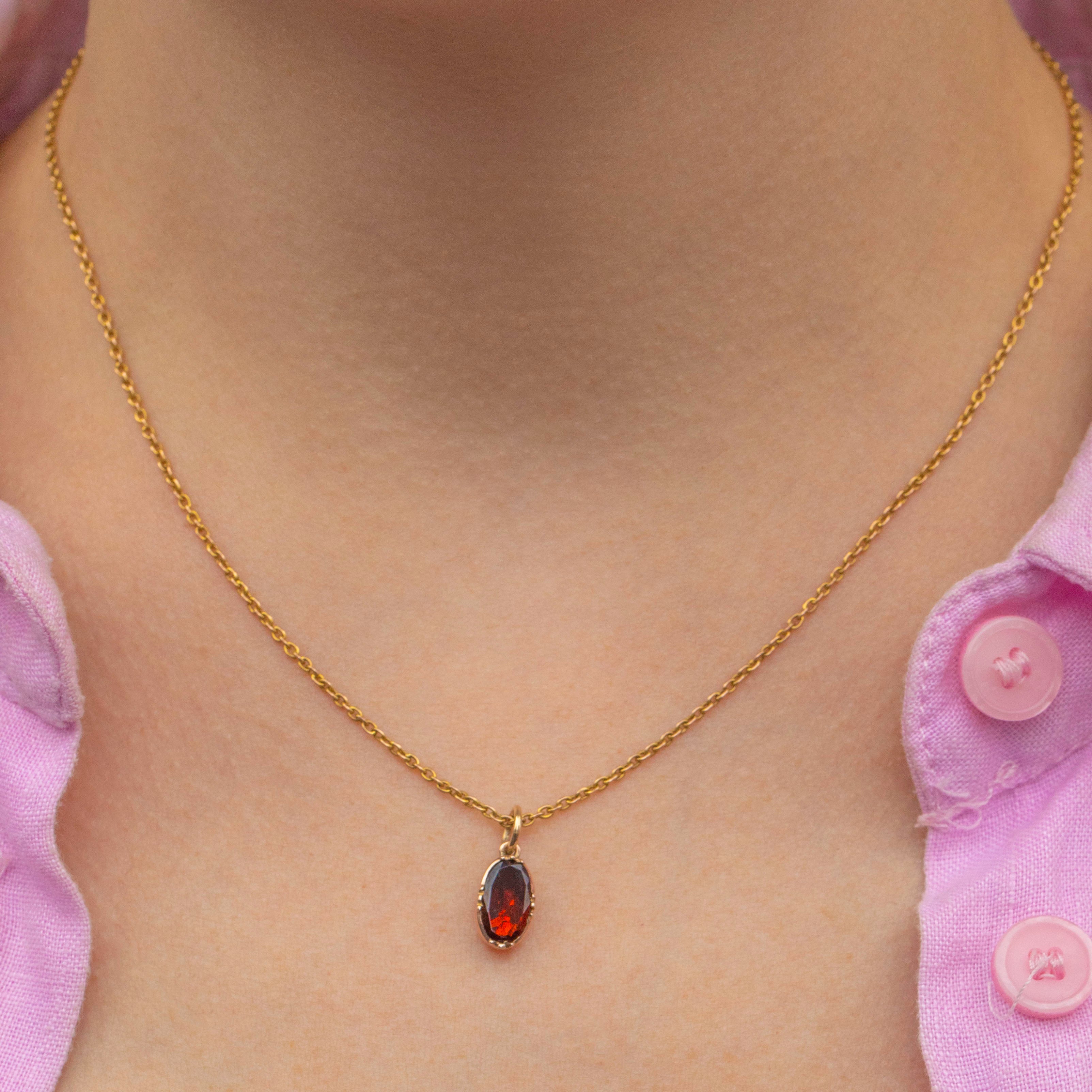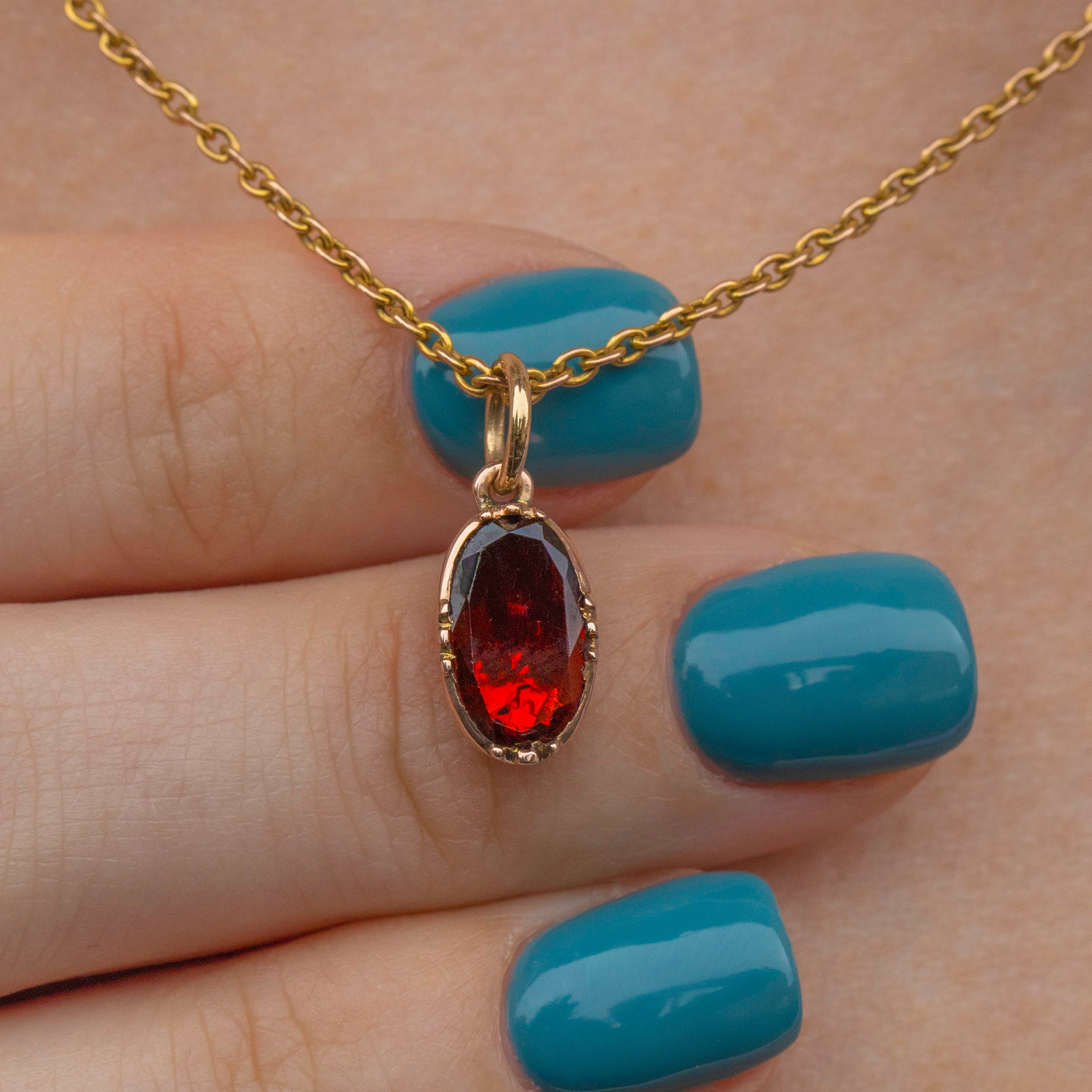 Encased in a blushed 9ct Gold setting, the 1.70ct flat-cut Garnet has been foiled, as was the custom during the Georgian period, intensifying the seductive crimson hue while catching the light magnificently. Affix her to an antique chain or charm bracelet to add a little Georgian romance to your wardrobe!