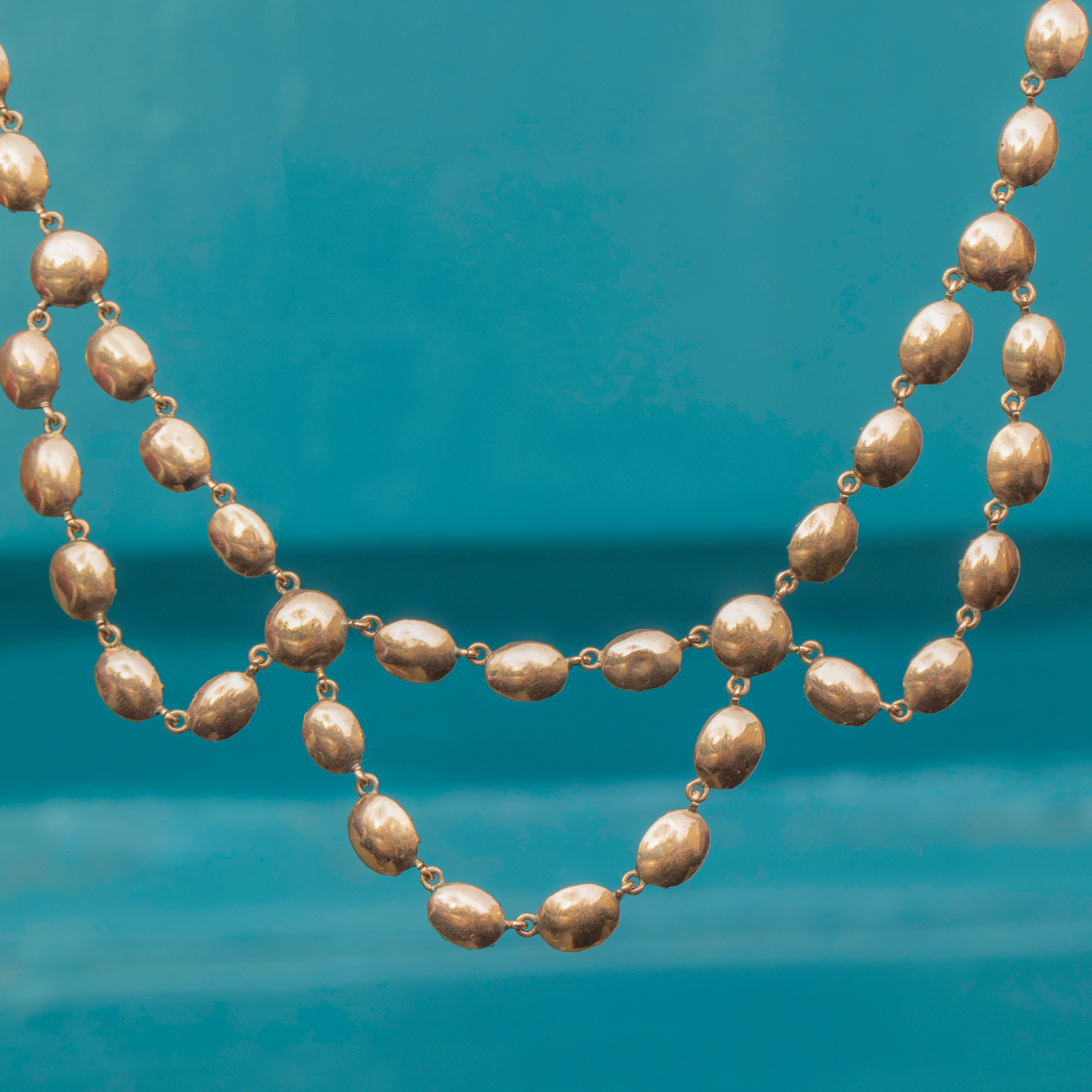 We adore this Georgian 9ct Gold flat-cut Garnet swag necklace! The embodiment of luxury, anyone would feel honoured to have this stunning Gold necklace in their collection, with a total of 50 scarlet flat-cut Garnets boasting 13.00 carats.