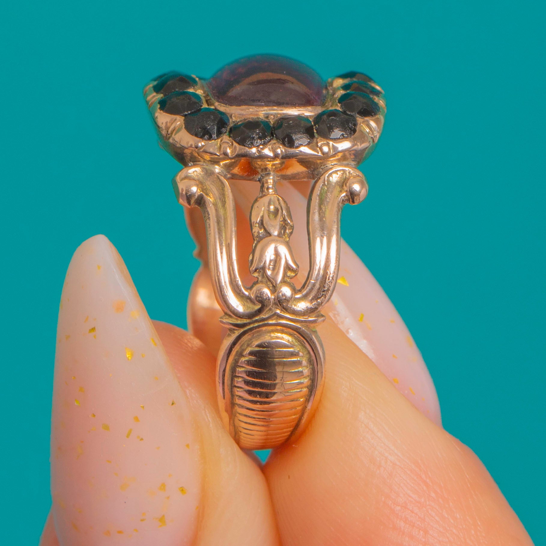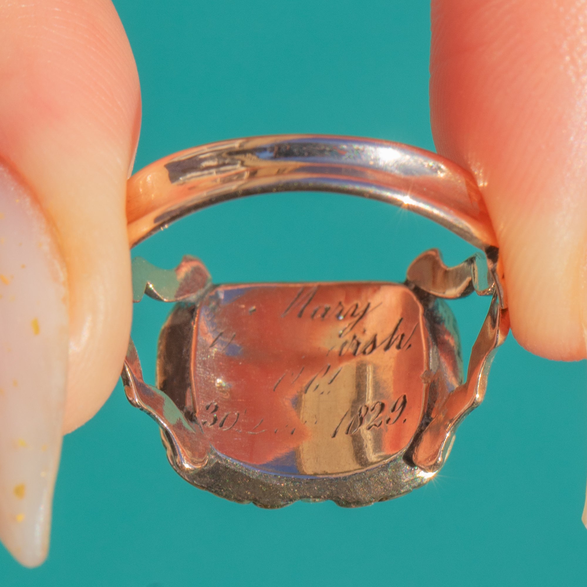 Georgian 9ct Gold Garnet Jet Mourning Ring c.1815