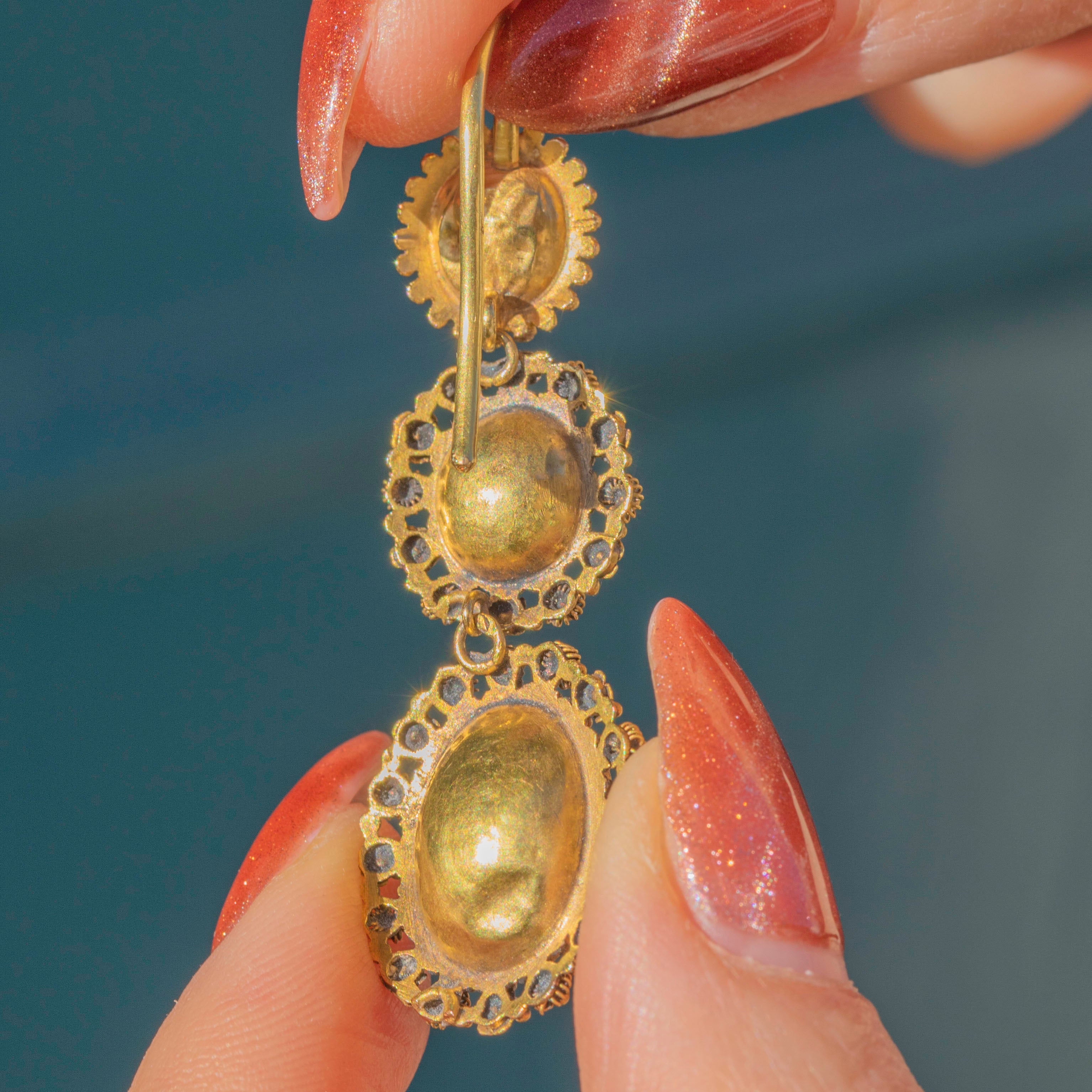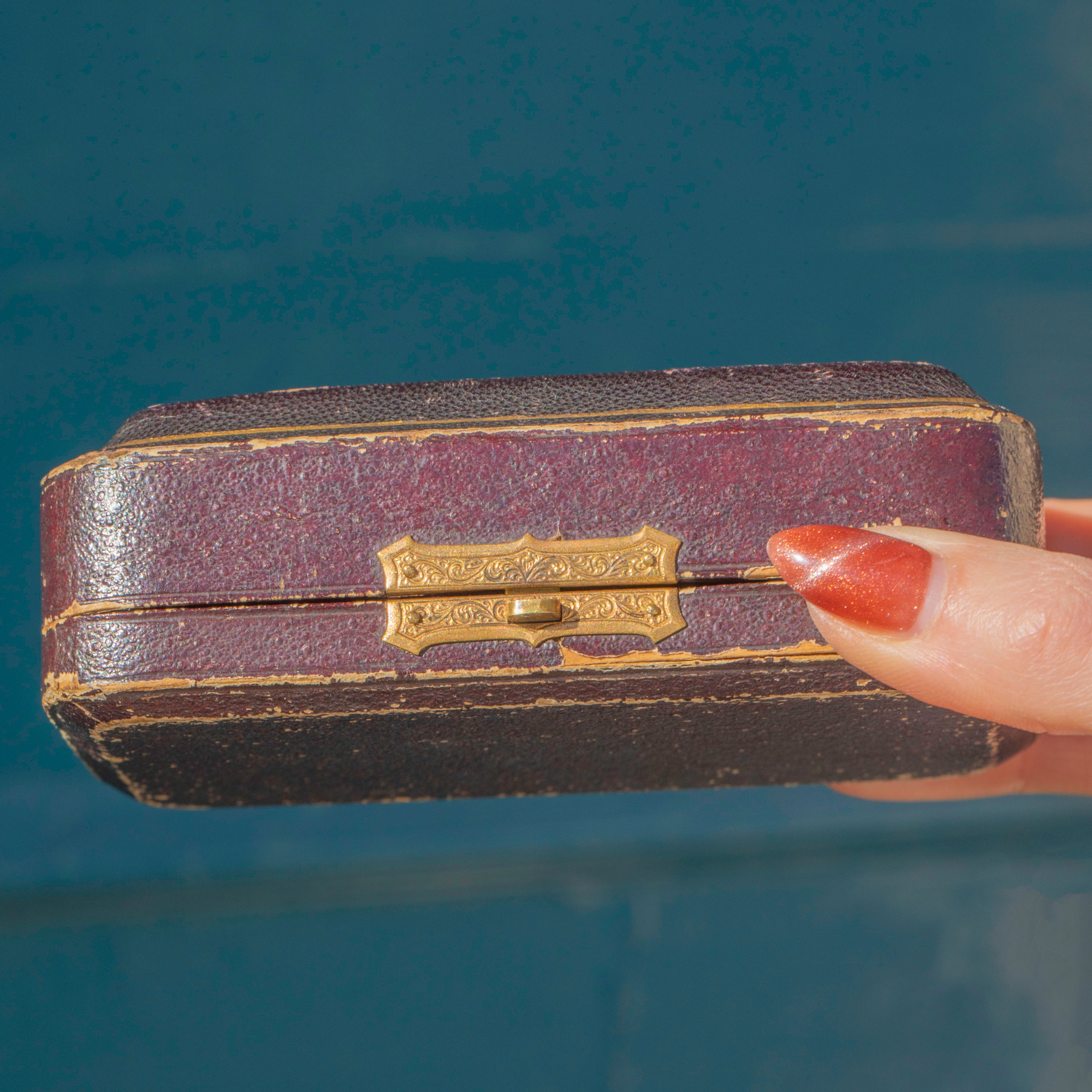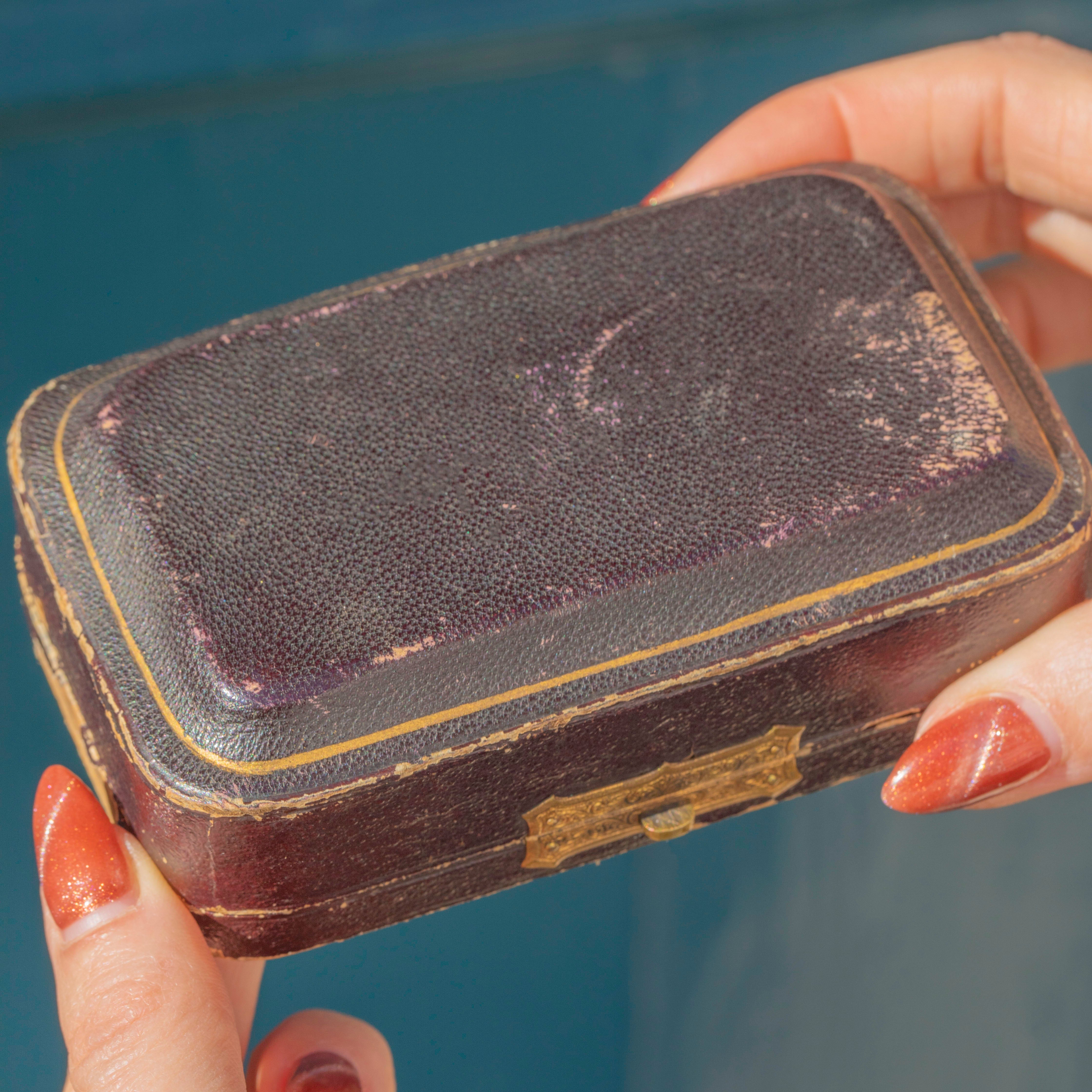 The earrings hang beautifully in the ear with 18ct Gold hooks. There are some dings notable to the back of the domed settings, but you can't see this when they're in the ear. The fitted box allows each of these pieces to be kept safe. The box has some minor wear and tear visible, but given it has been responsible for safeguarding the demi-parure, it's lasted very well.