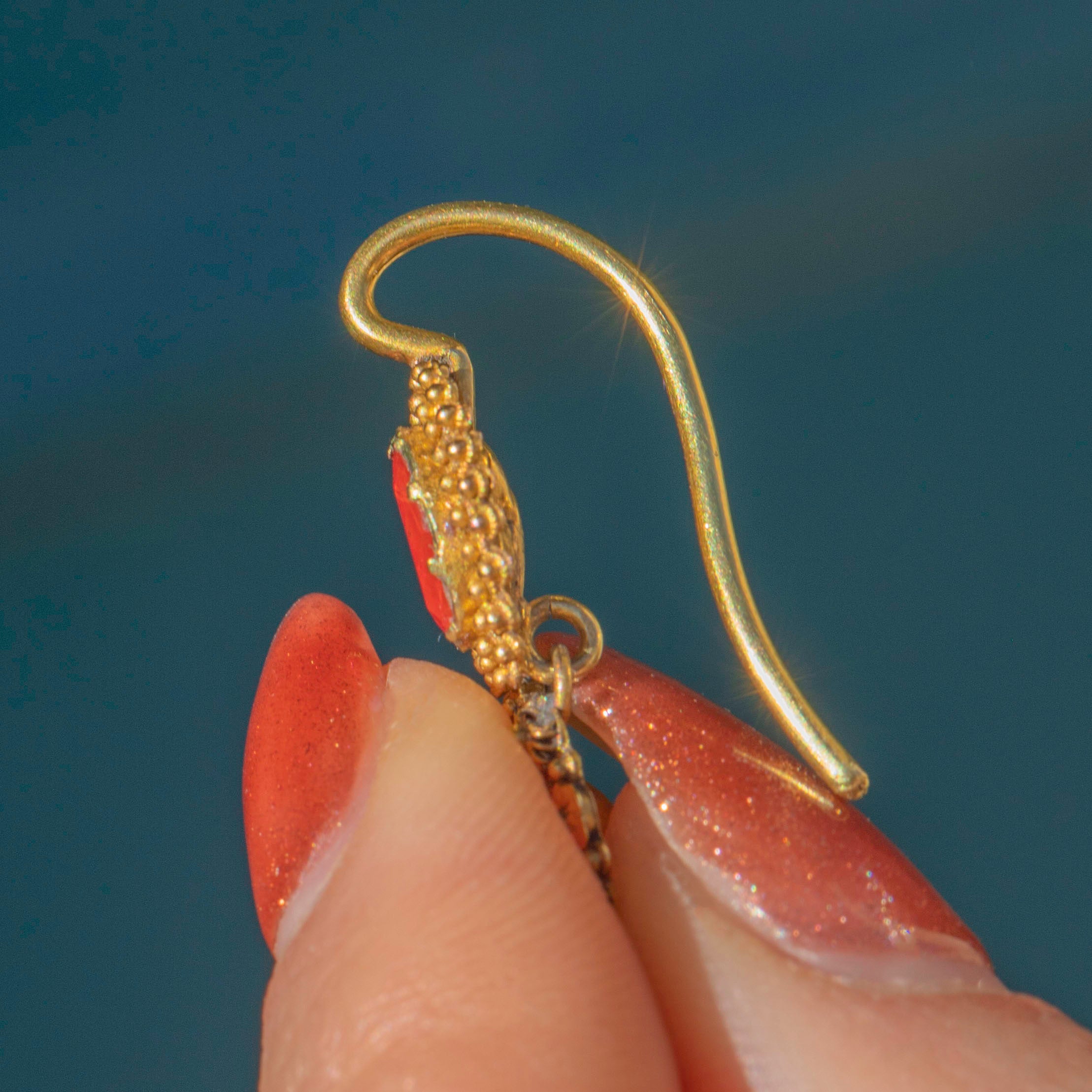 Pinchbeck earrings, solid 18ct Gold hooks.