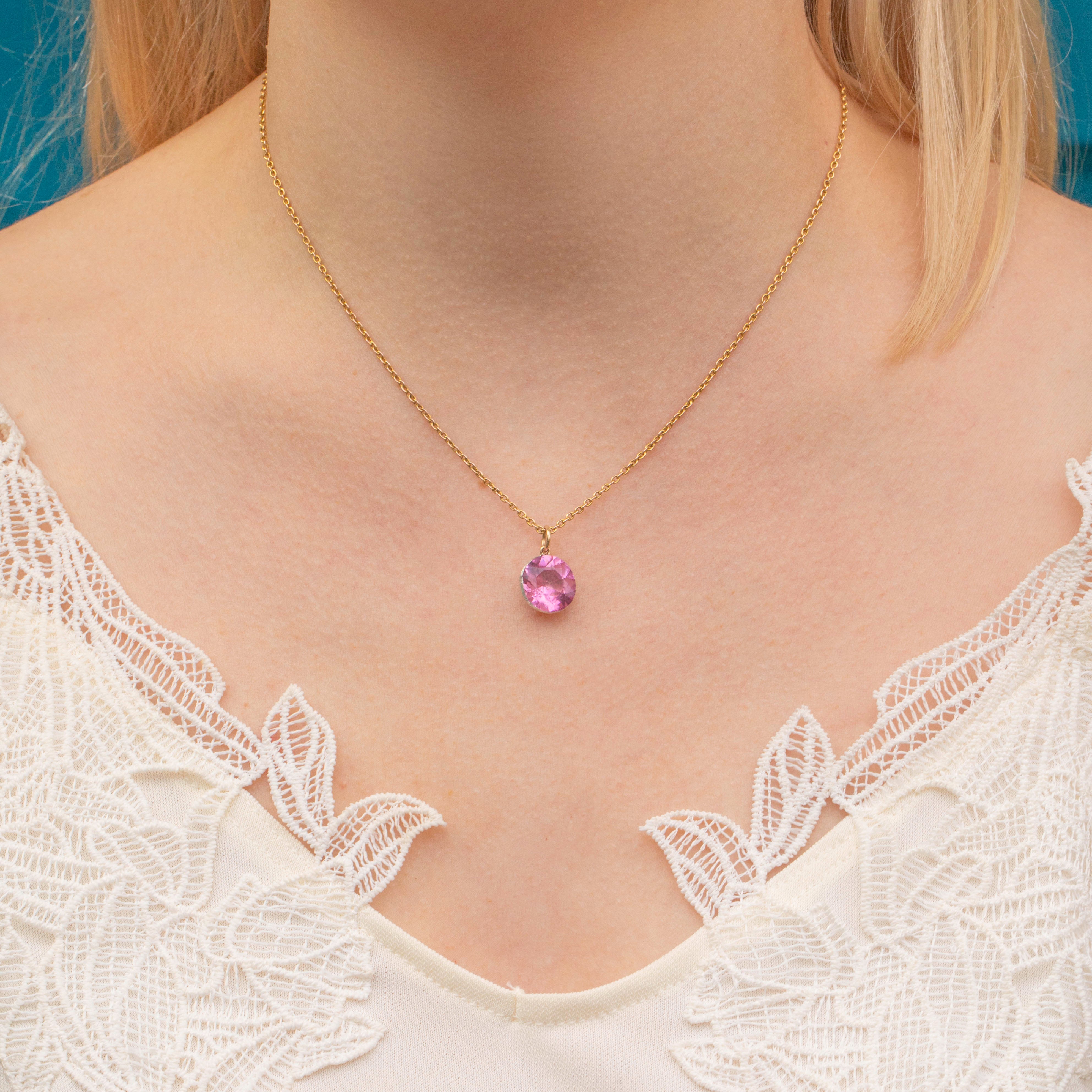 Her gorgeous fuchsia tones exude a playful quality and she is full of personality and charm. This Georgian button charm sits securely in her Silver setting and would look gorgeous suspended from a dainty chain, adding vibrancy to your everyday outfit!